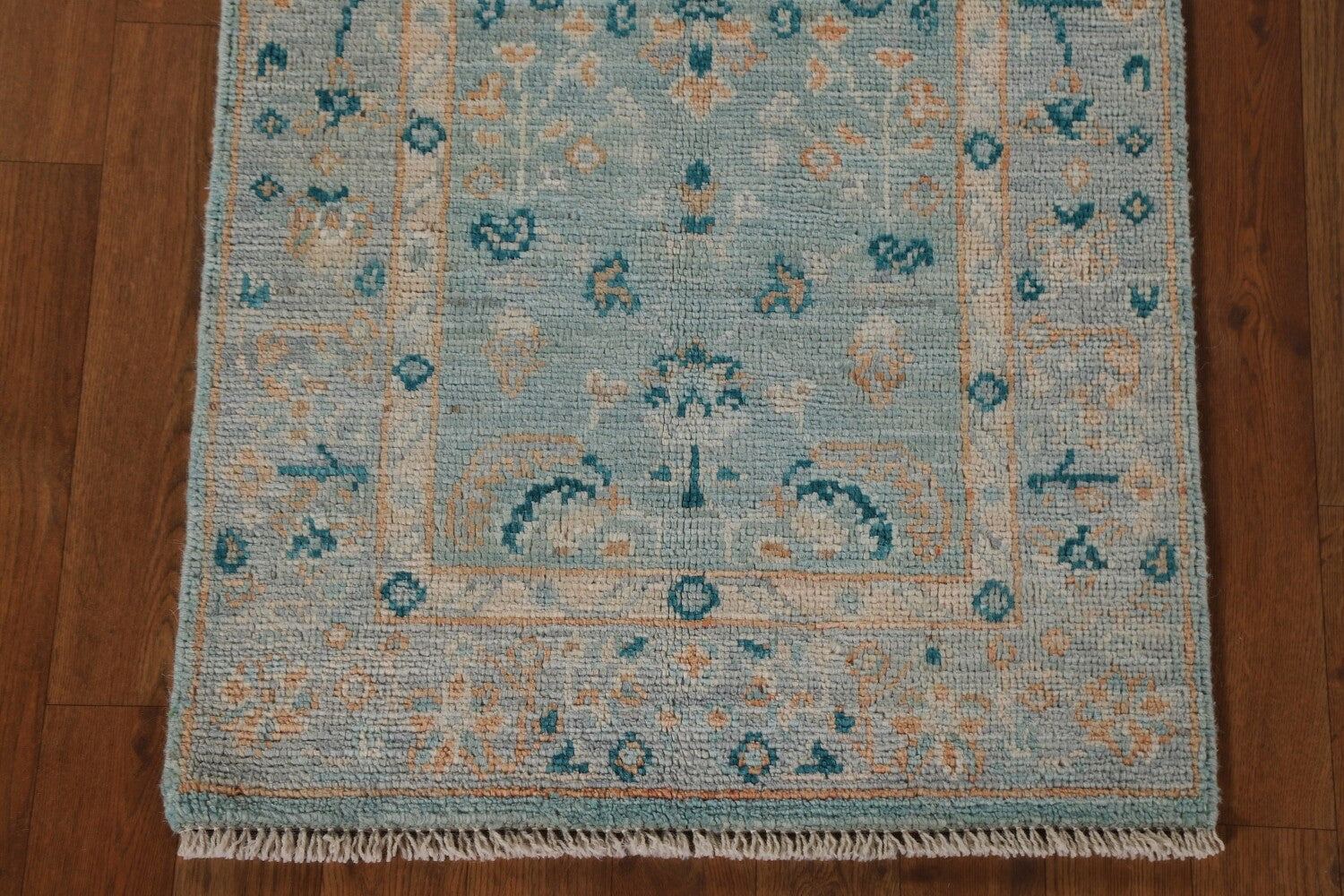 A Beautiful Genuine Turkey Oushak rug is Hand Knotted by skillful weavers in Turkey with 100% Wool Material. This rug is in New, First Quality condition. dimensions are 4' 0'' X 2' 0'' in foot and 122 X 61 in centimeter. the primary color is Navy Blue & Blues.