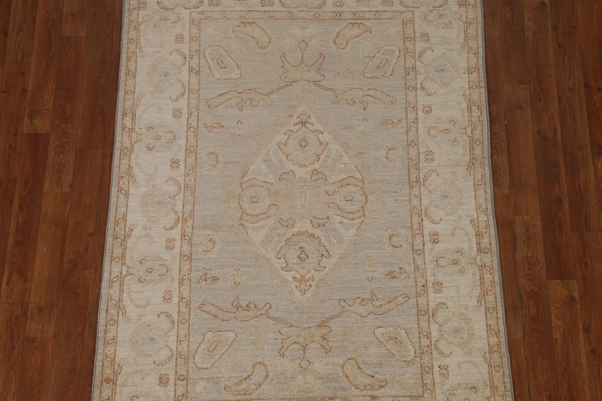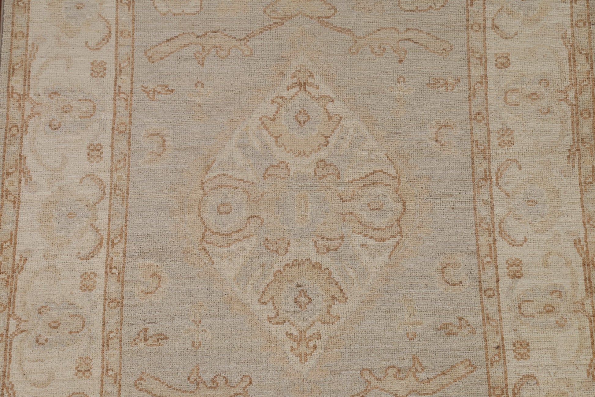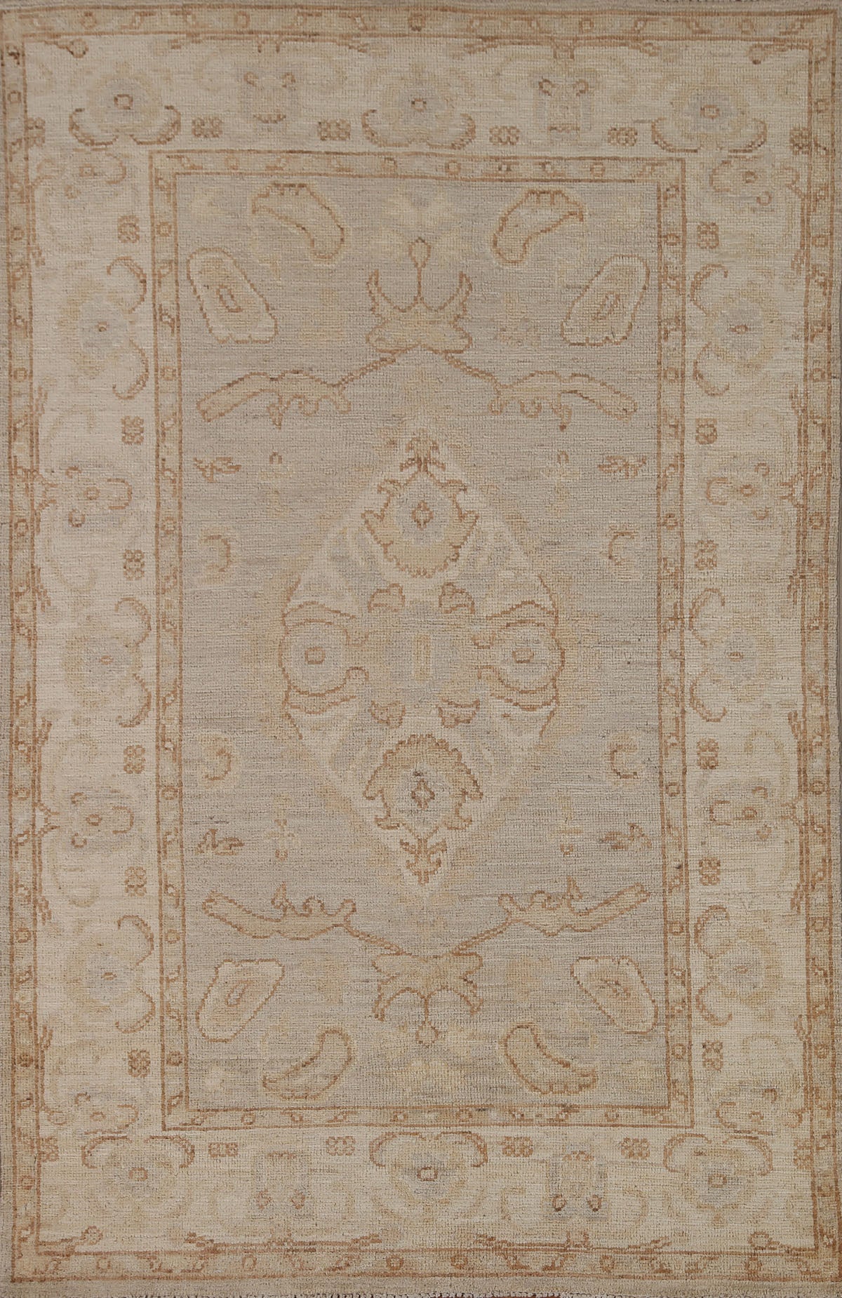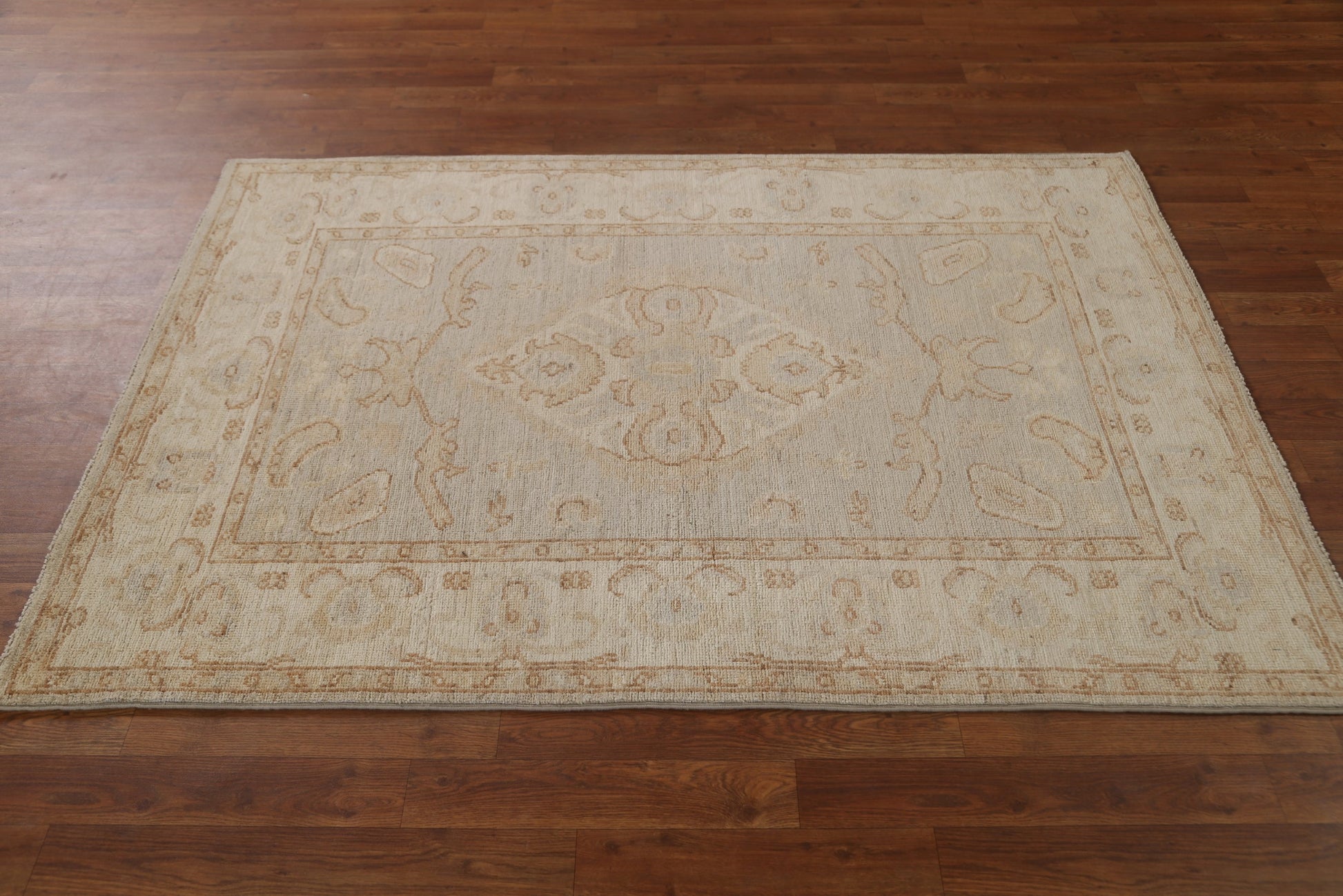A Beautiful Genuine Turkey Oushak rug is Hand Knotted by skillful weavers in Turkey with 100% Wool Material. This rug is in condition. dimensions are 5' 8'' X 3' 10'' in foot and 173 X 117 in centimeter. the primary color is Beige & Ivories.