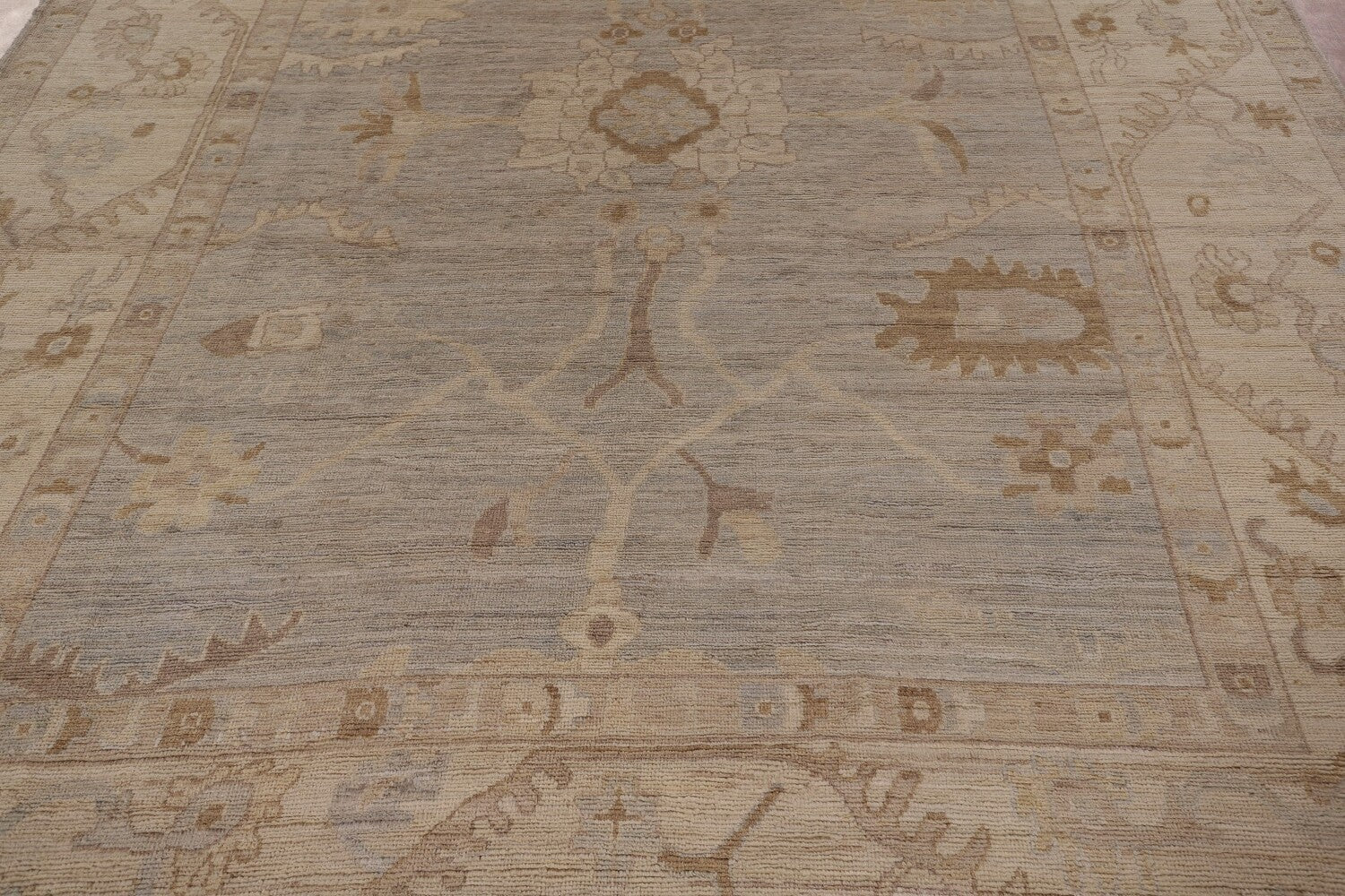 A Beautiful Genuine Turkey Oushak rug is Hand Knotted by skillful weavers in Turkey with 100% Wool Material. This rug is in New, First Quality condition. dimensions are 9' 9'' X 8' 3'' in foot and 297 X 251 in centimeter. the primary color is Greys & Charcoal.