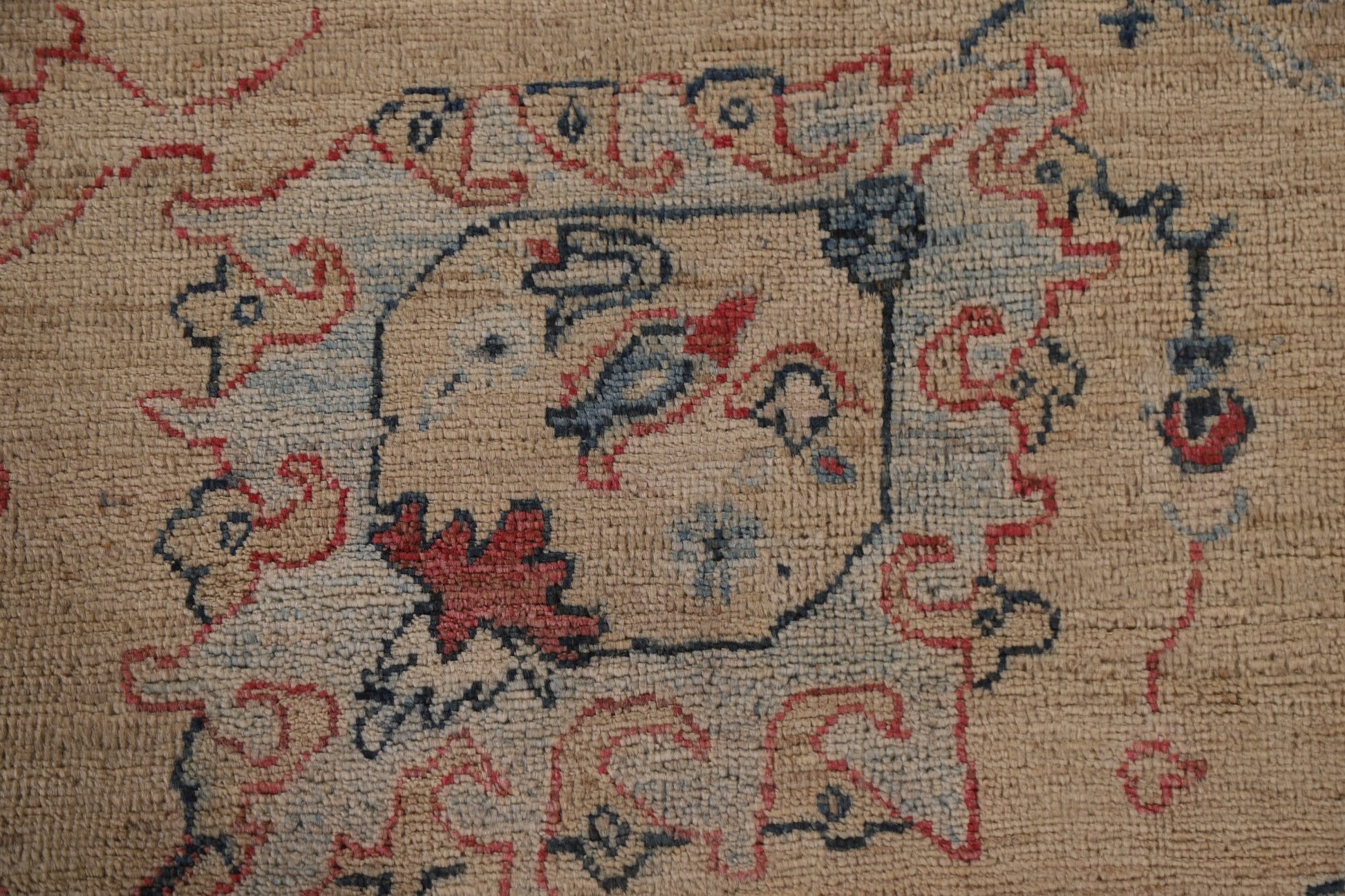 A Beautiful Genuine Turkey Oushak rug is Hand Knotted by skillful weavers in Turkey with 100% Wool Material. This rug is in New, First Quality condition. dimensions are 11' 9'' X 9' 4'' in foot and 358 X 284 in centimeter. the primary color is Beige & Ivories.