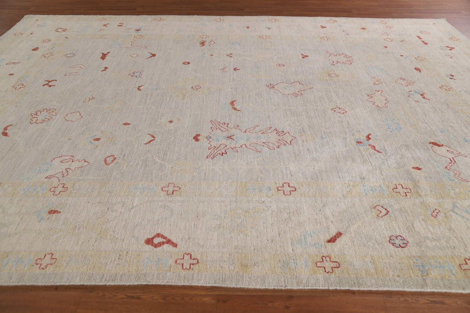 A Beautiful Genuine Turkey Oushak rug is Hand Knotted by skillful weavers in Turkey with 100% Wool Material. This rug is in New, First Quality condition. dimensions are 12' 0'' X 9' 1'' in foot and 366 X 277 in centimeter. the primary color is Beige & Ivories.