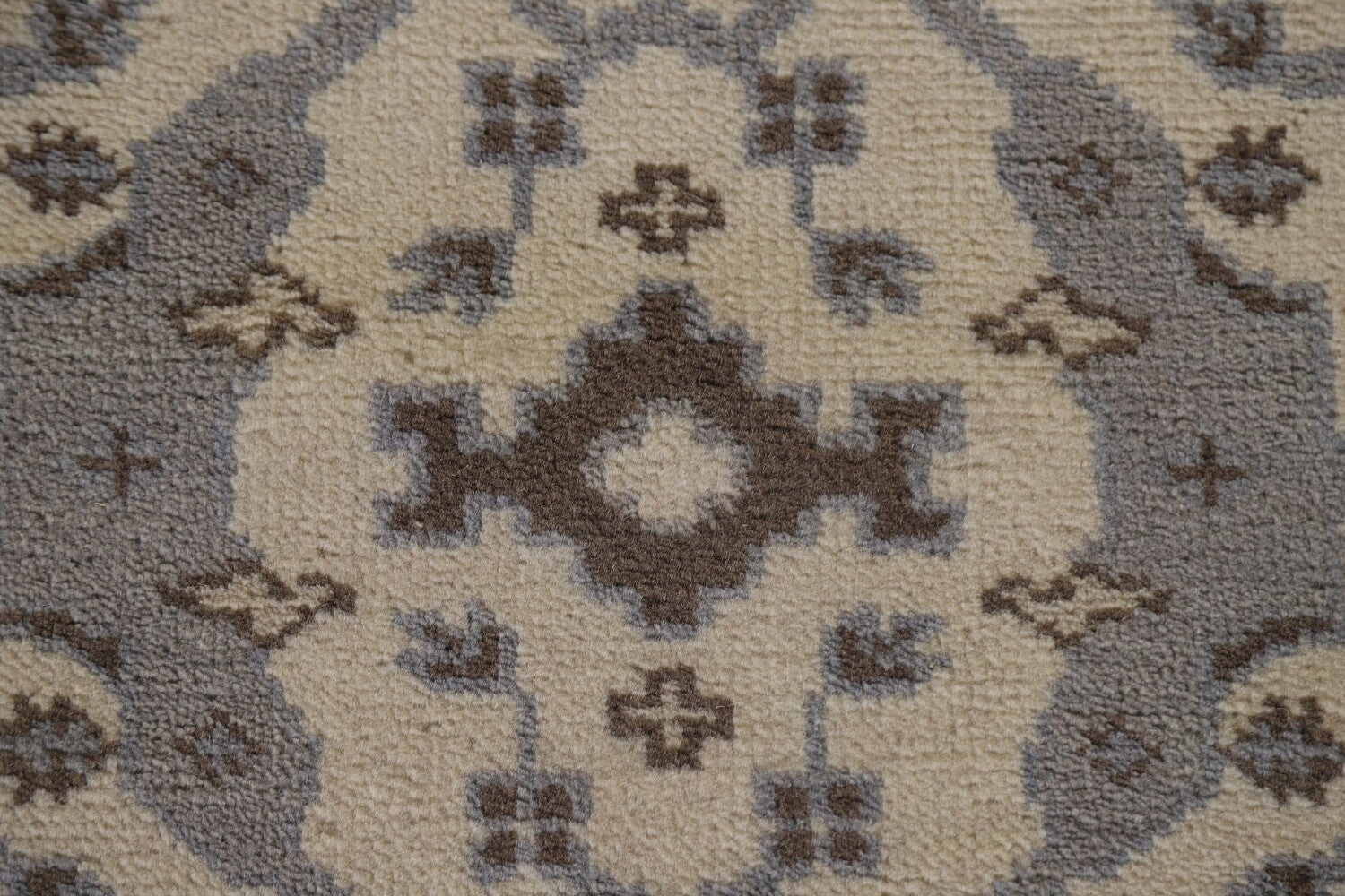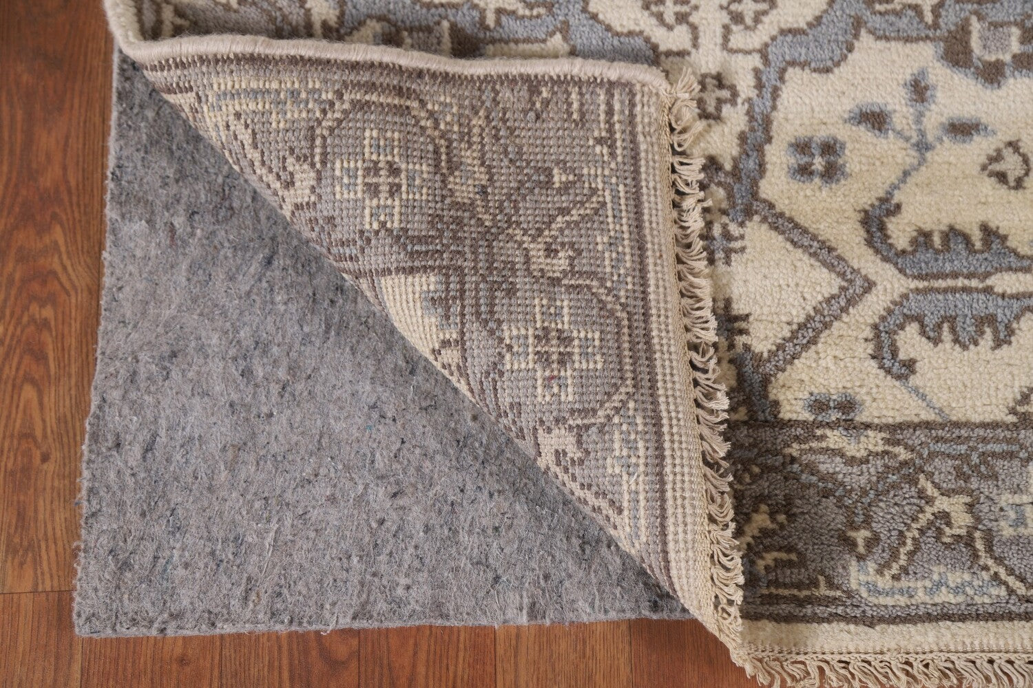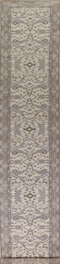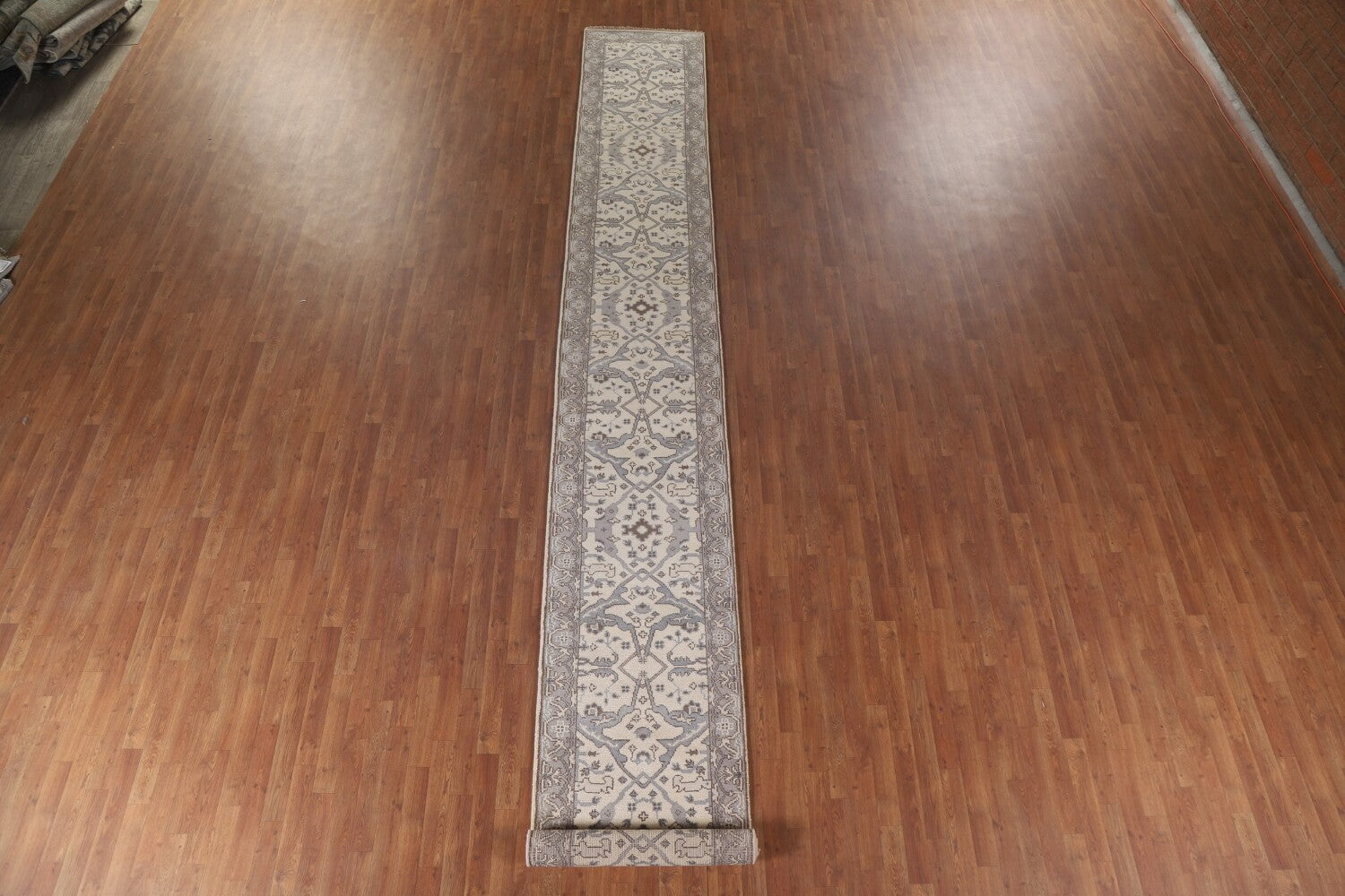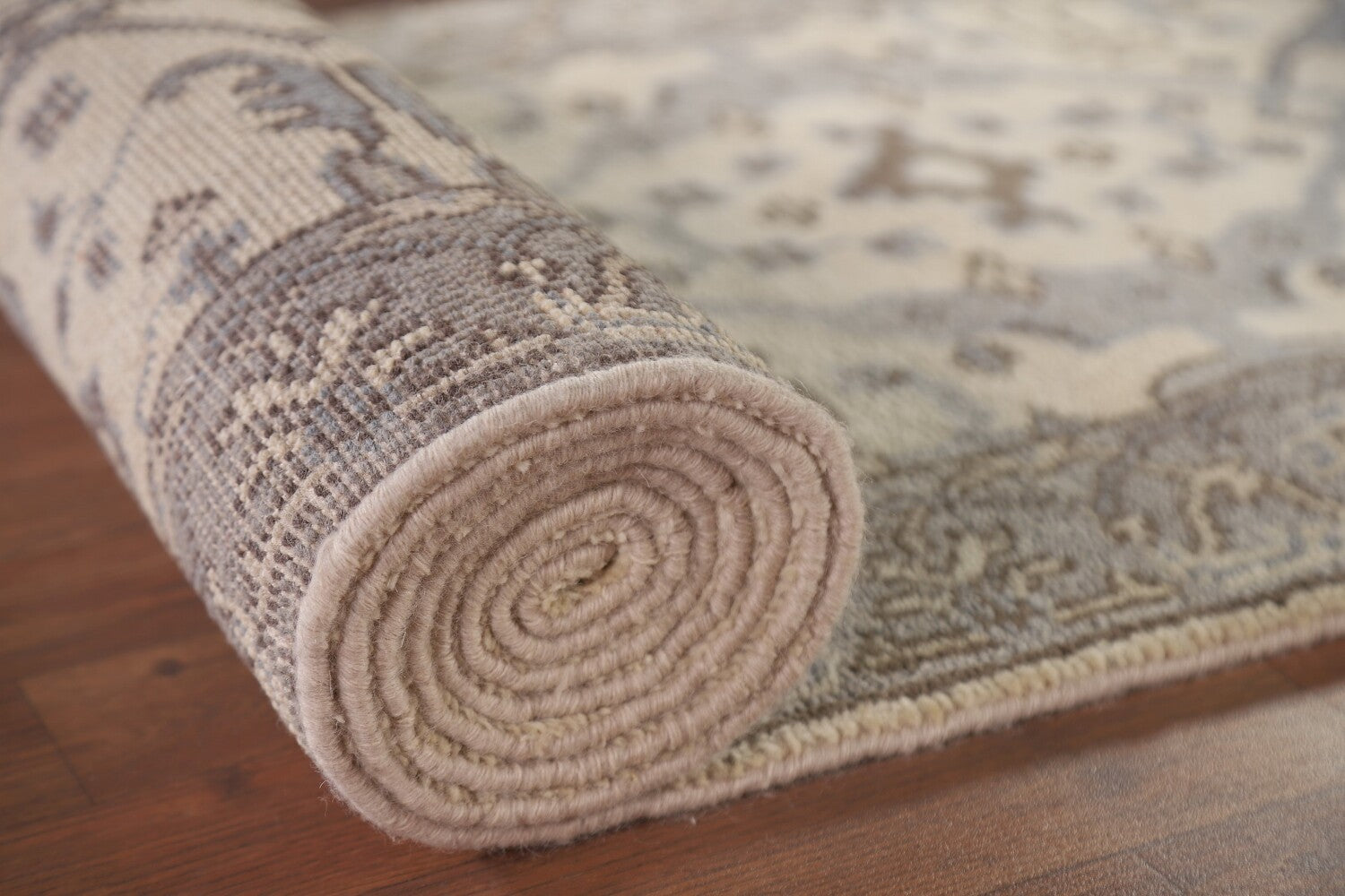 A Beautiful Genuine India Oushak rug is Hand Knotted by skillful weavers in India with 100% Wool Material. This rug is in New, First Quality condition. dimensions are 19' 6'' X 2' 7'' in foot and 594 X 79 in centimeter. the primary color is Beige & Ivories.