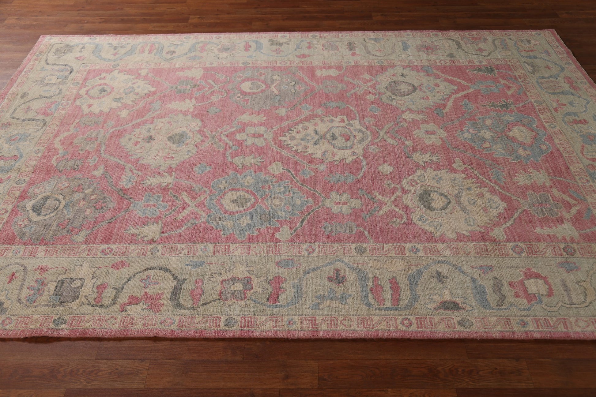 Handmade Pink Oushak Vegetable Dye Wool Area Rug 6x9