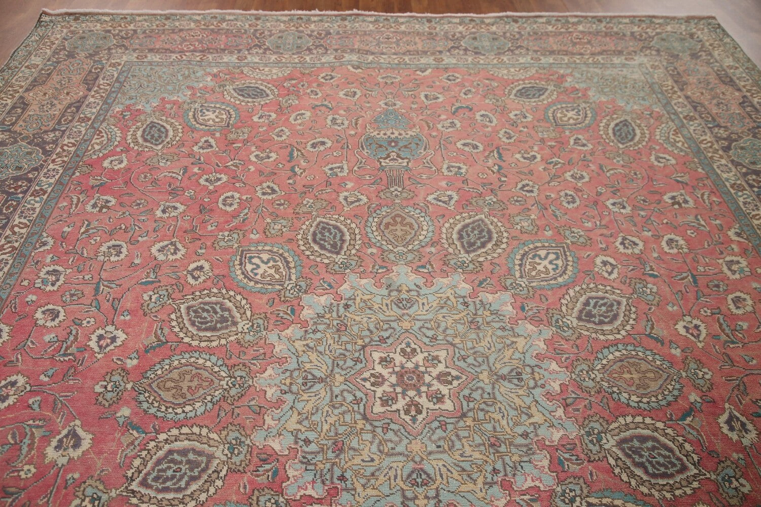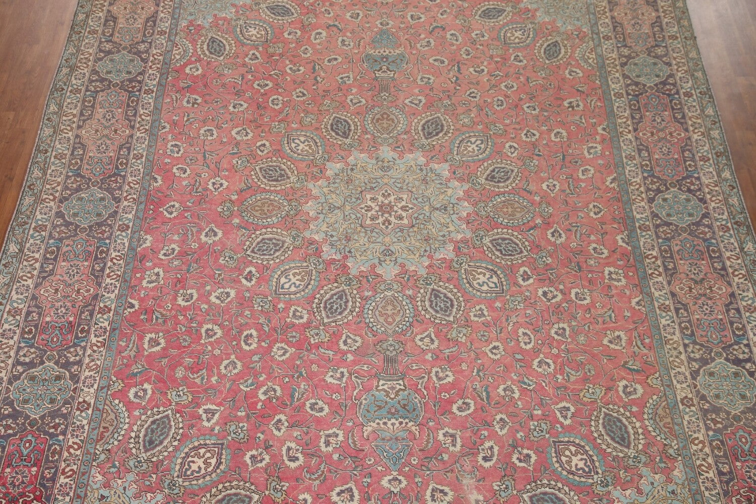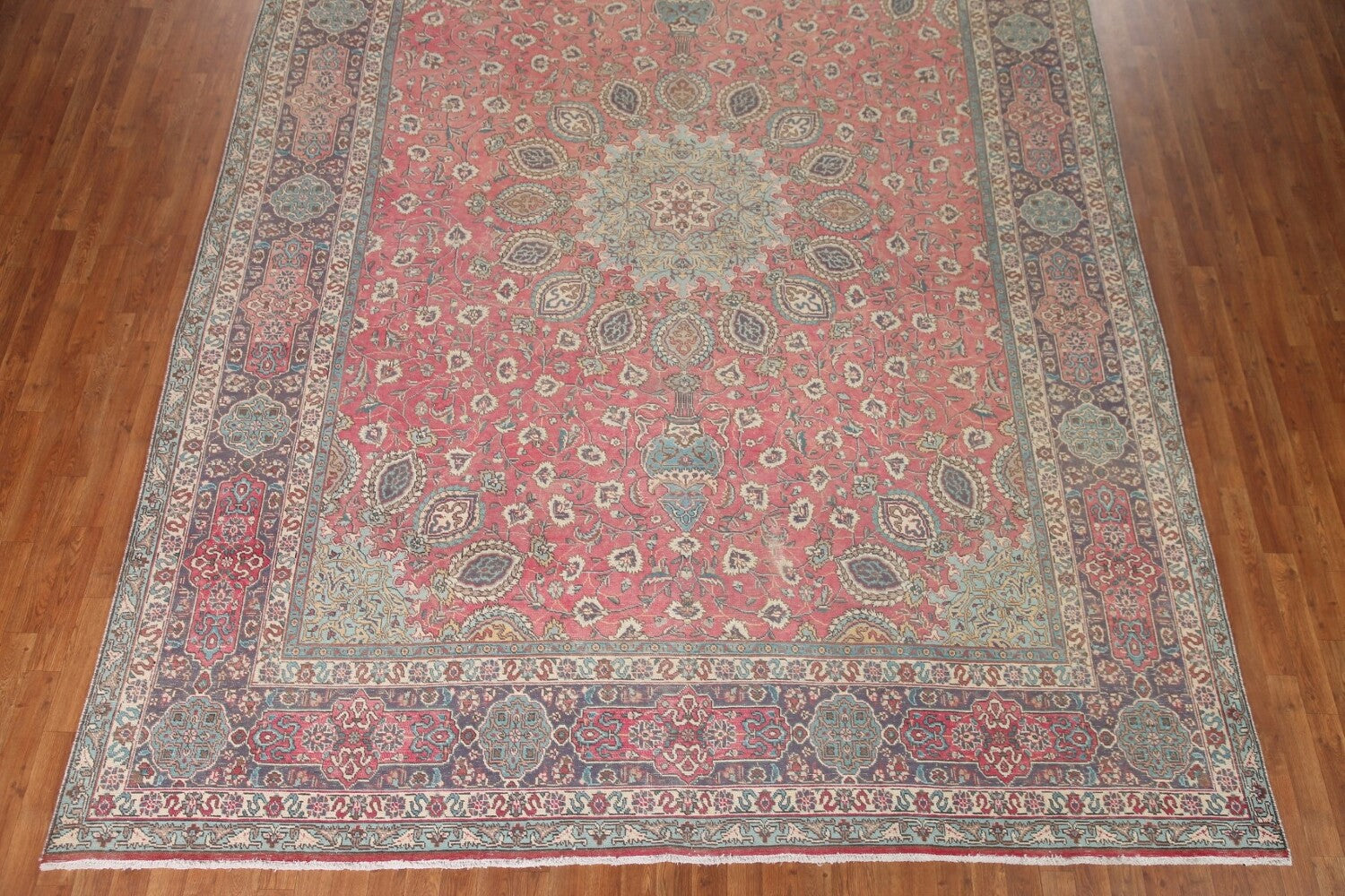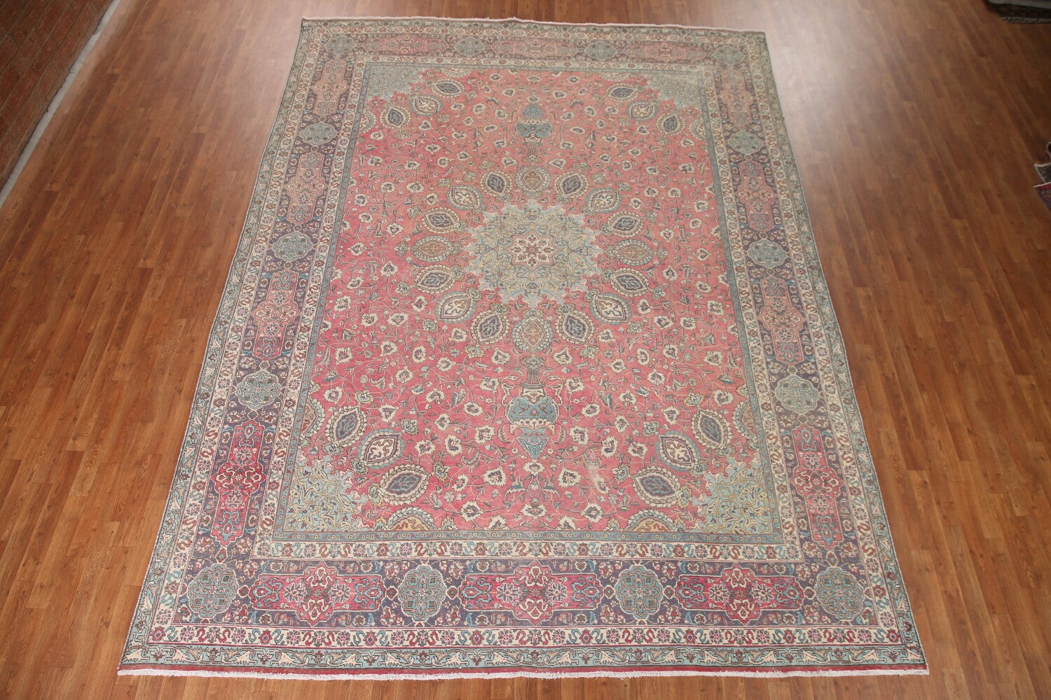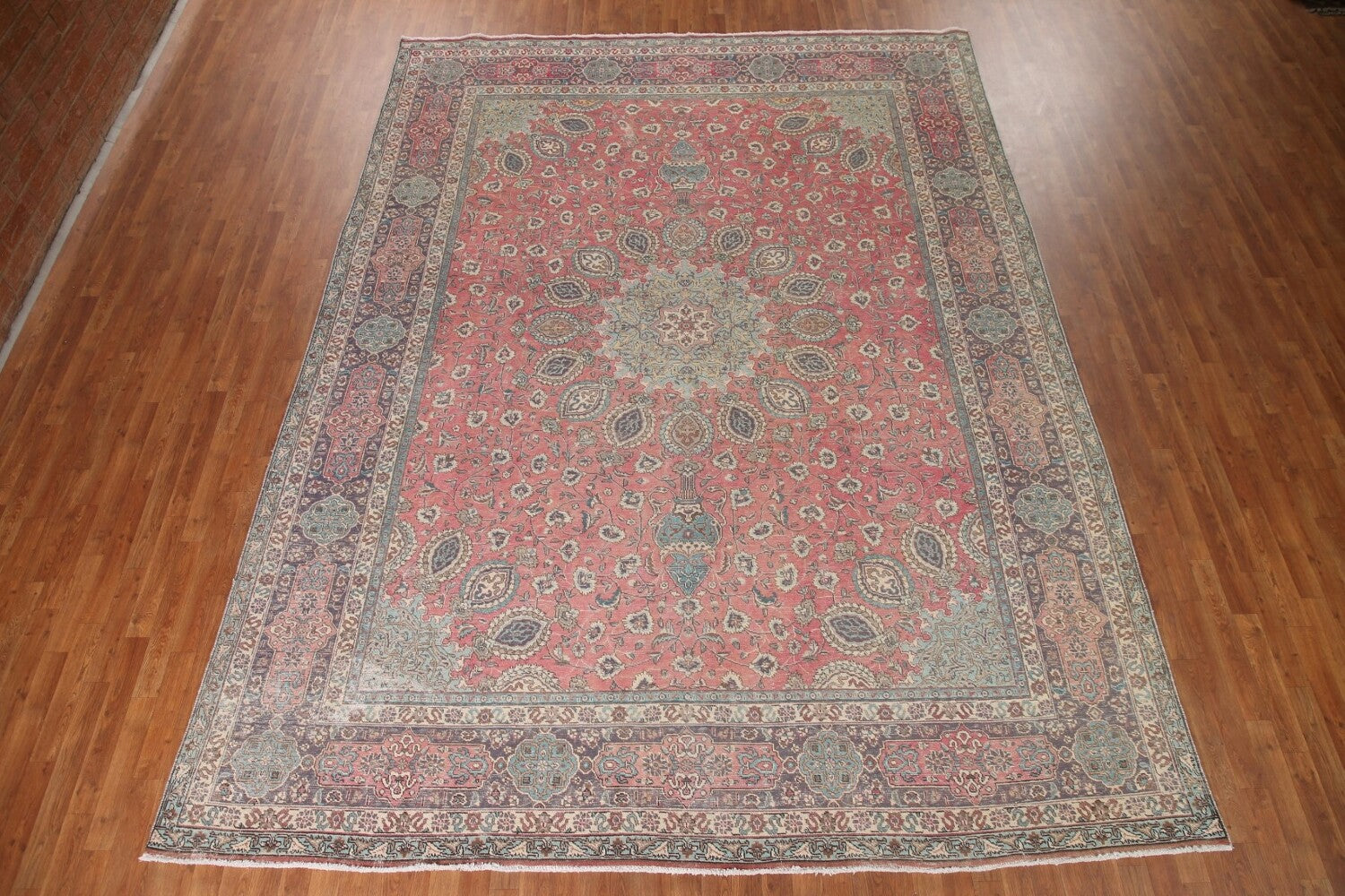 A Beautiful Genuine Persia ( Persia ) Tabriz rug is Hand Knotted by skillful weavers in Persia ( Persia ) with 100% Wool Material. This rug is in Very Good condition. dimensions are 13' 2'' X 9' 9'' in foot and 401 X 297 in centimeter. the primary color is Pink.