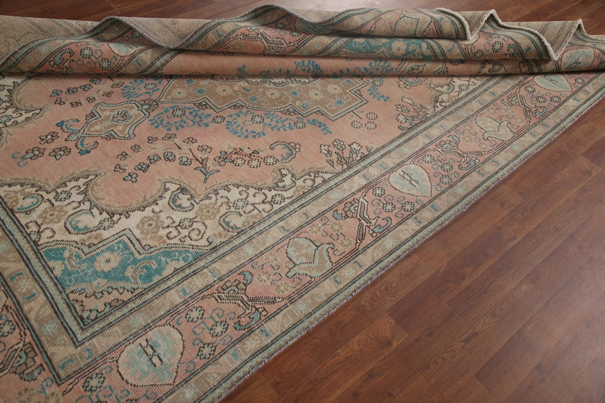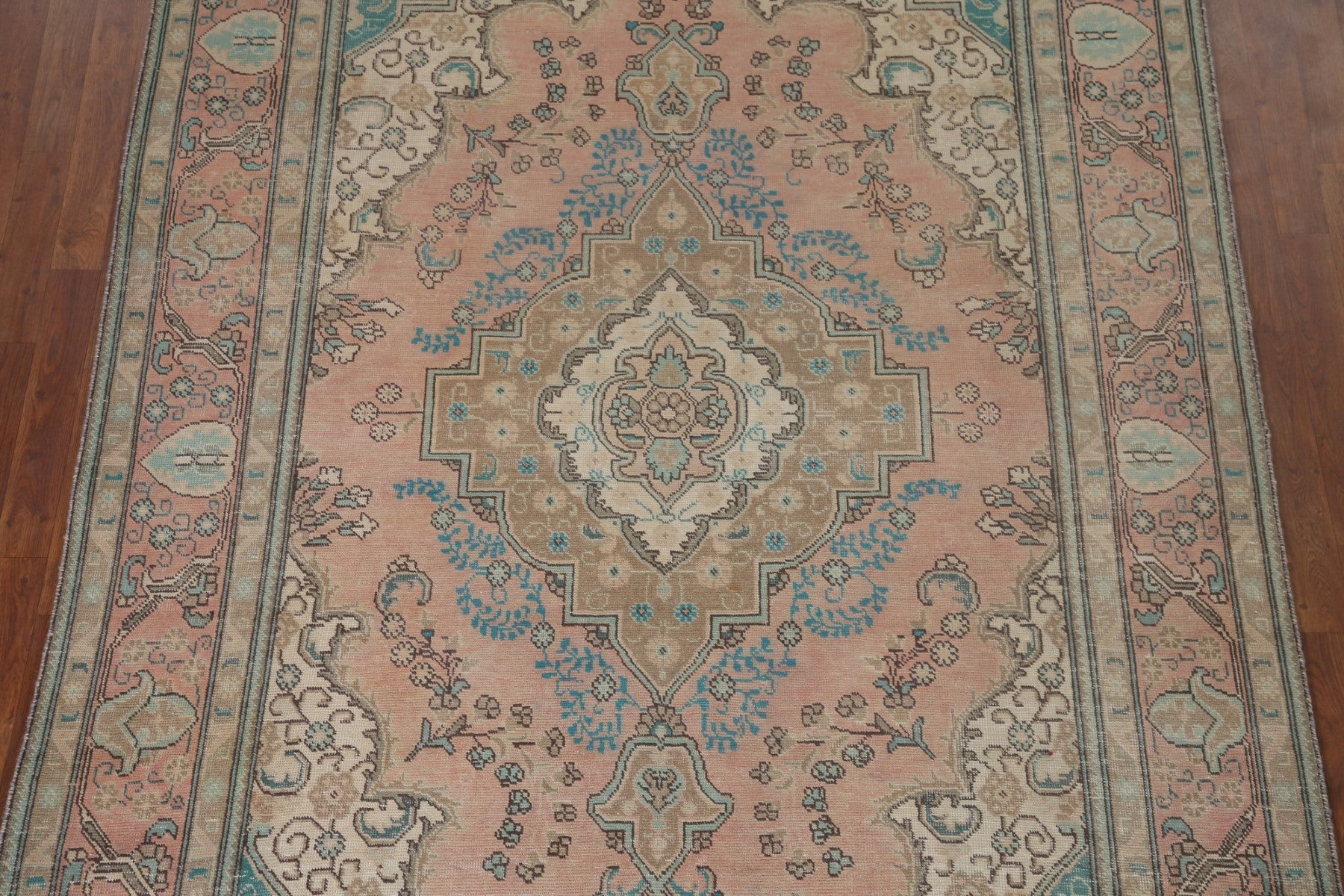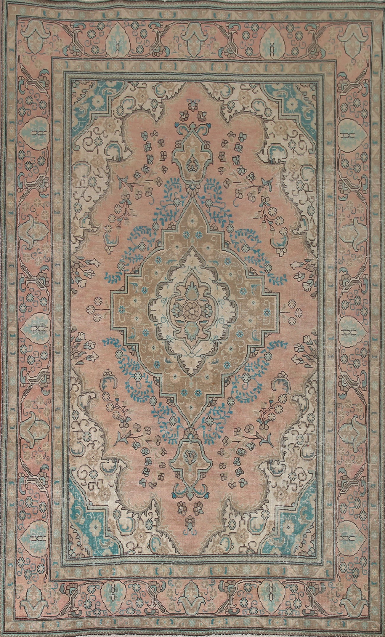 A Beautiful Genuine Persia ( Persia ) Tabriz rug is Hand Knotted by skillful weavers in Persia ( Persia ) with 100% Wool Material. This rug is in Very Good (Evenly Low Pile) condition. dimensions are 9' 5'' X 6' 2'' in foot and 287 X 188 in centimeter. the primary color is Pink.
