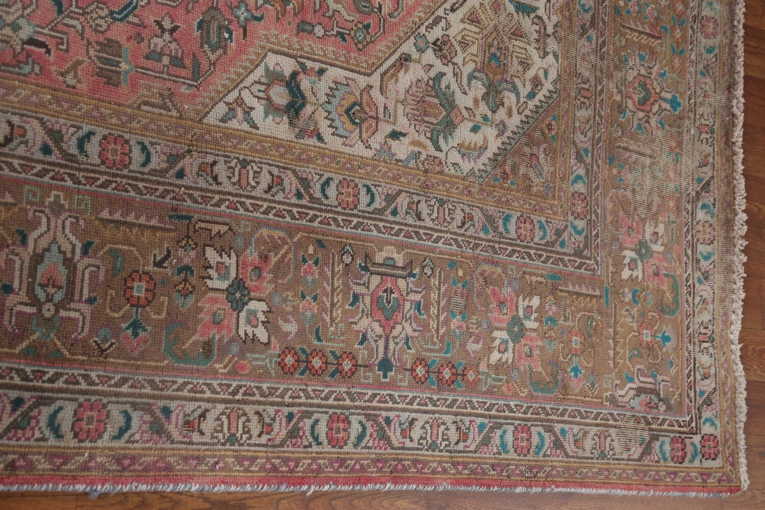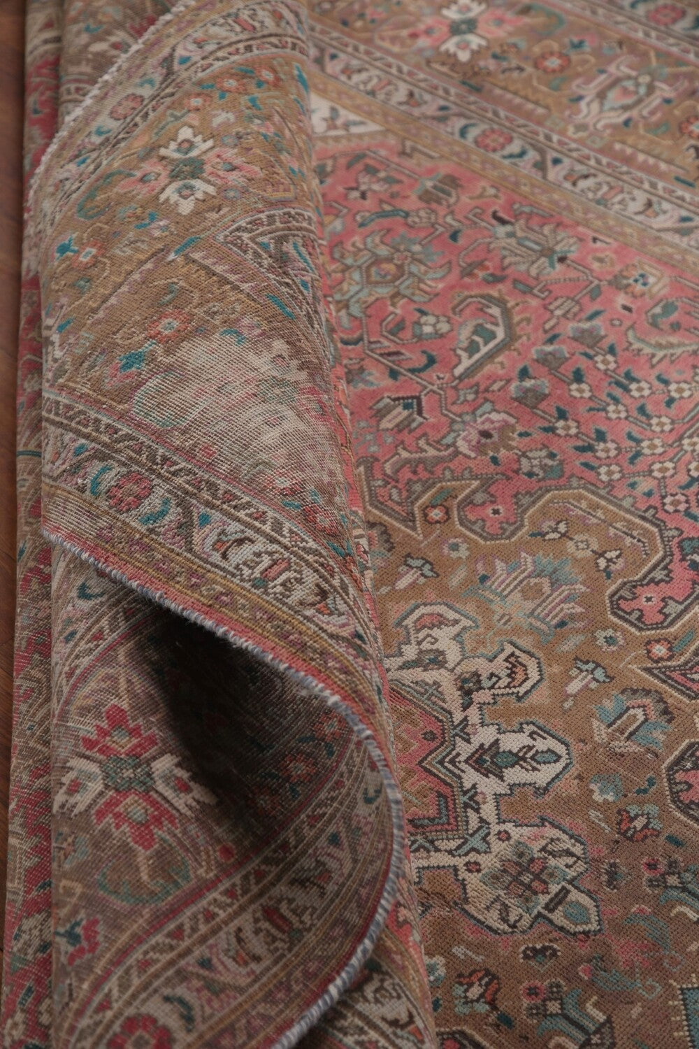 A Beautiful Genuine Persia ( Persia ) Tabriz rug is Hand Knotted by skillful weavers in Persia ( Persia ) with 100% Wool Material. This rug is in Very Good (Evenly Low Pile) condition. dimensions are 9' 7'' X 6' 9'' in foot and 292 X 206 in centimeter. the primary color is Pink.
