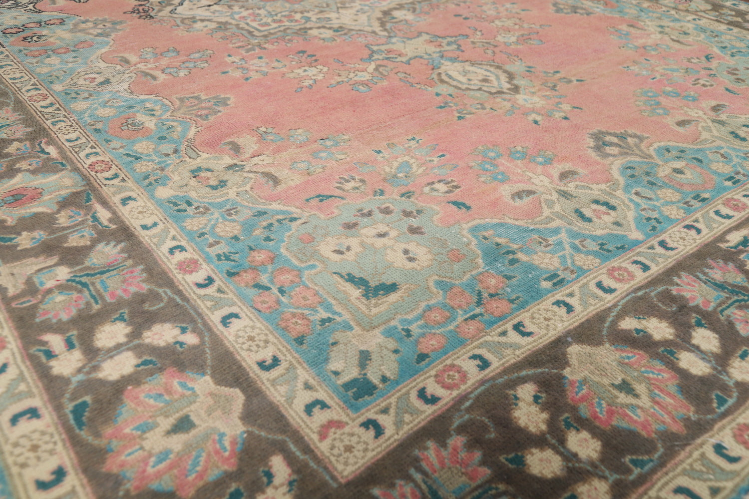 A Beautiful Genuine Persia ( Persia ) Tabriz rug is Hand Knotted by skillful weavers in Persia ( Persia ) with 100% Wool Material. This rug is in Very Good (Repair) condition. dimensions are 10' 4'' X 6' 6'' in foot and 315 X 198 in centimeter. the primary color is Pink.