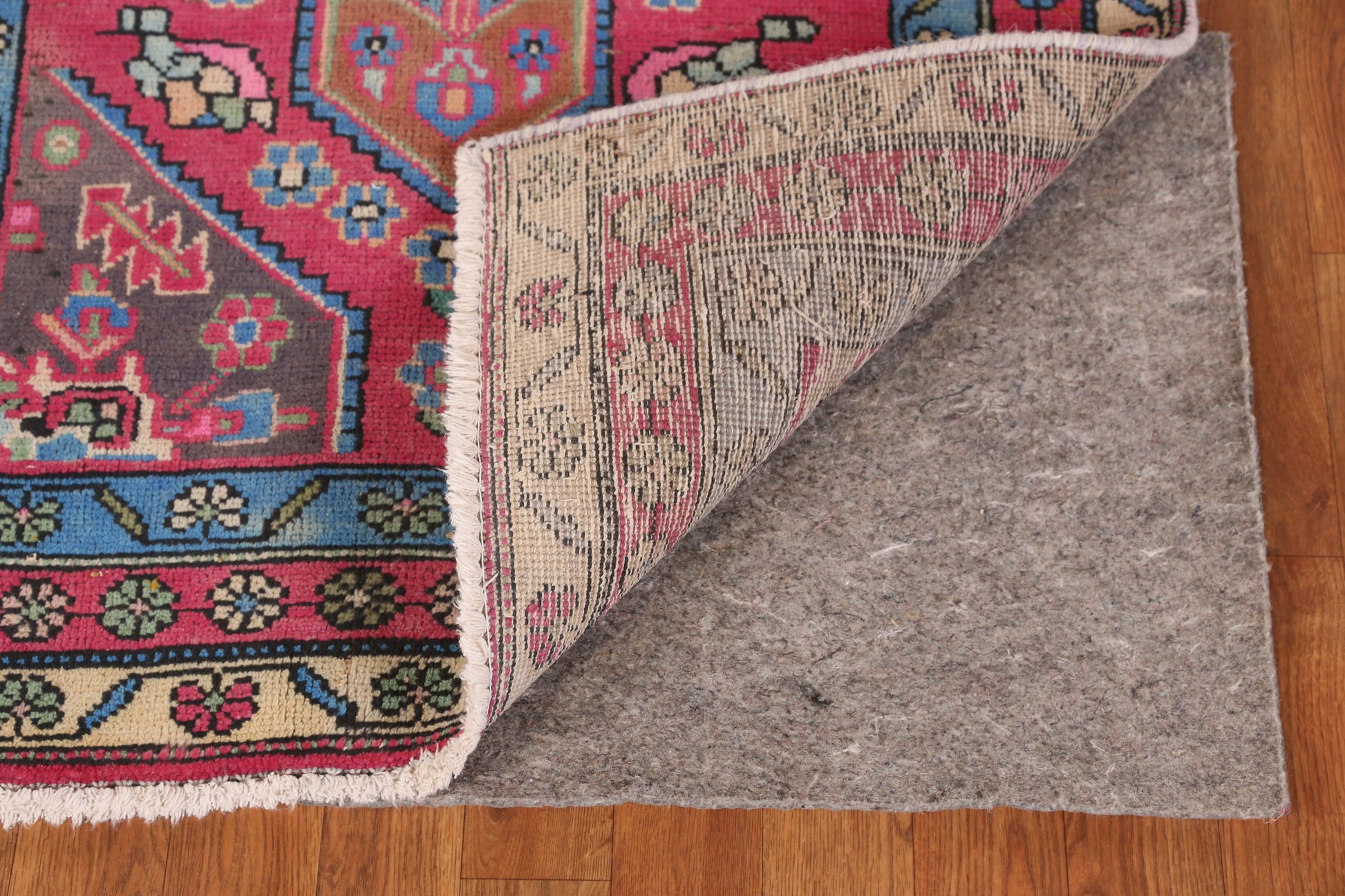 A Beautiful Genuine Persia ( Persia ) Tabriz rug is Hand Knotted by skillful weavers in Persia ( Persia ) with 100% Wool Material. This rug is in Very Good (Evenly-low-pile - Small Bleeding) condition. dimensions are 12' 8'' X 3' 2'' in foot and 386 X 97 in centimeter. the primary color is Pink.