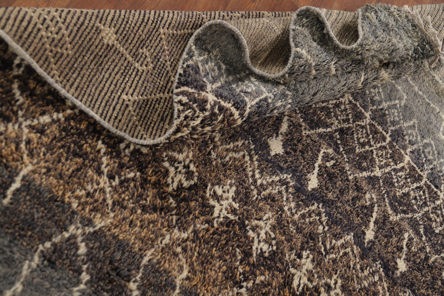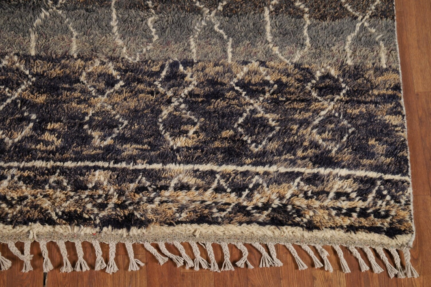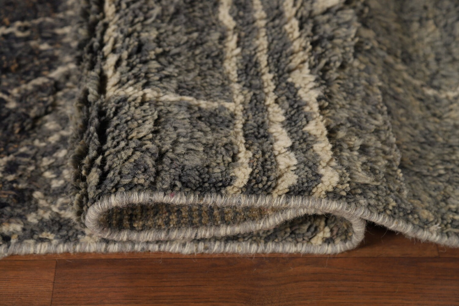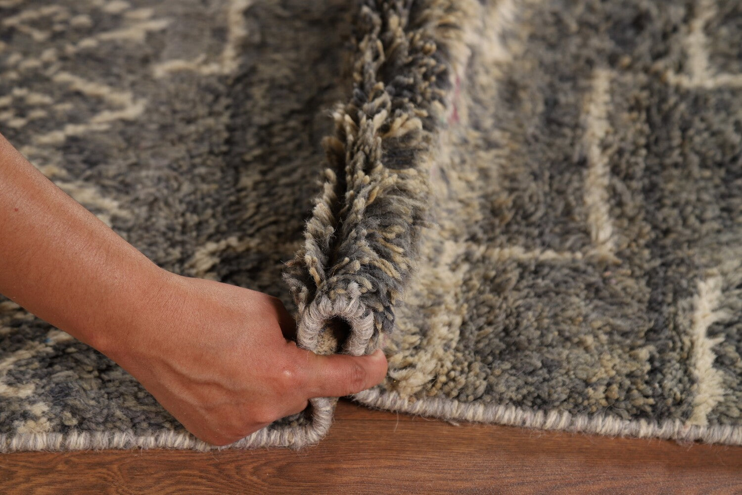 A Beautiful Genuine Pakistan Moroccan rug is Hand Knotted by skillful weavers in Pakistan with 100% Wool Material. This rug is in condition. dimensions are 9' 10'' X 6' 10'' in foot and 300 X 208 in centimeter. the primary color is Greys & Charcoal.