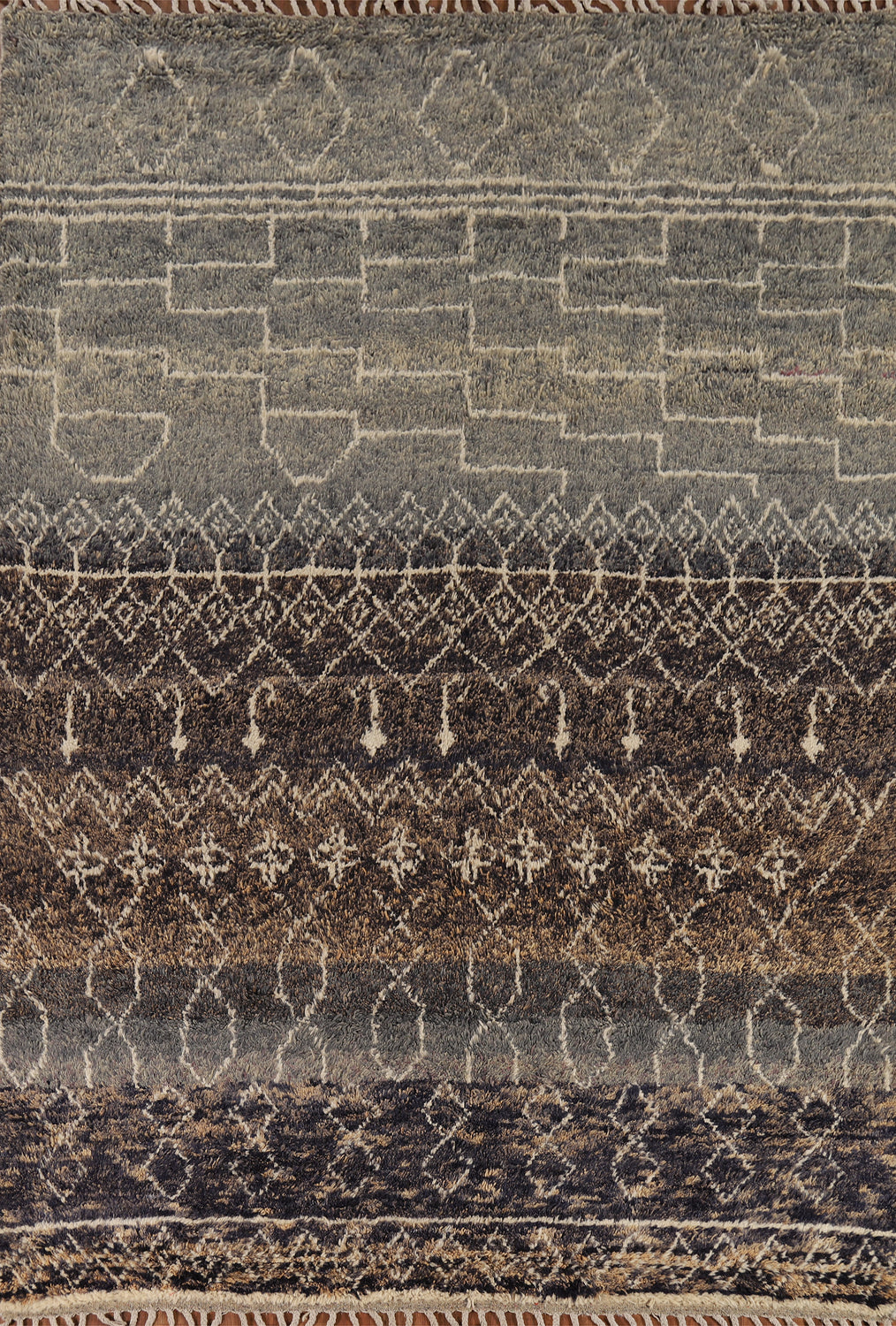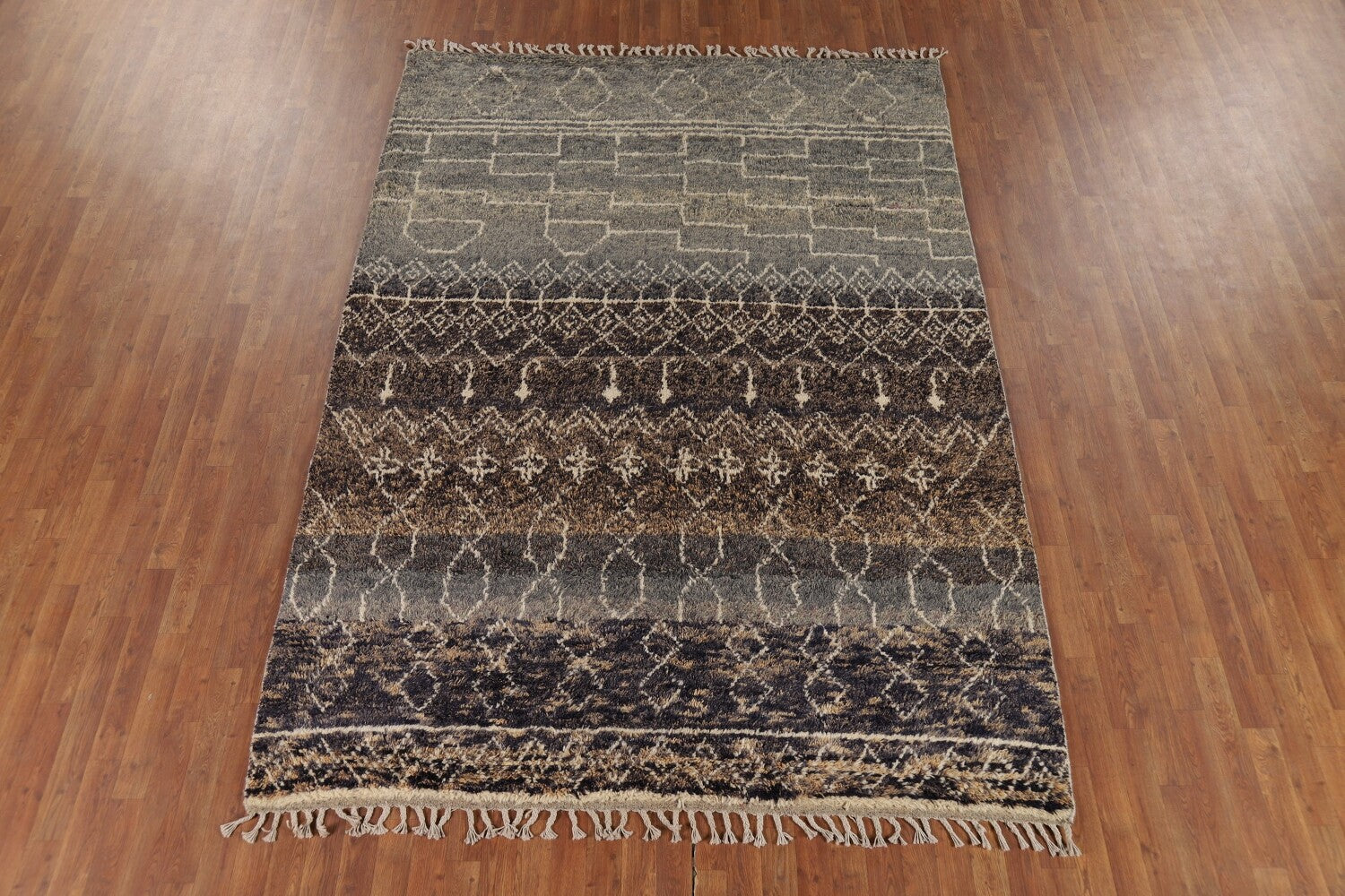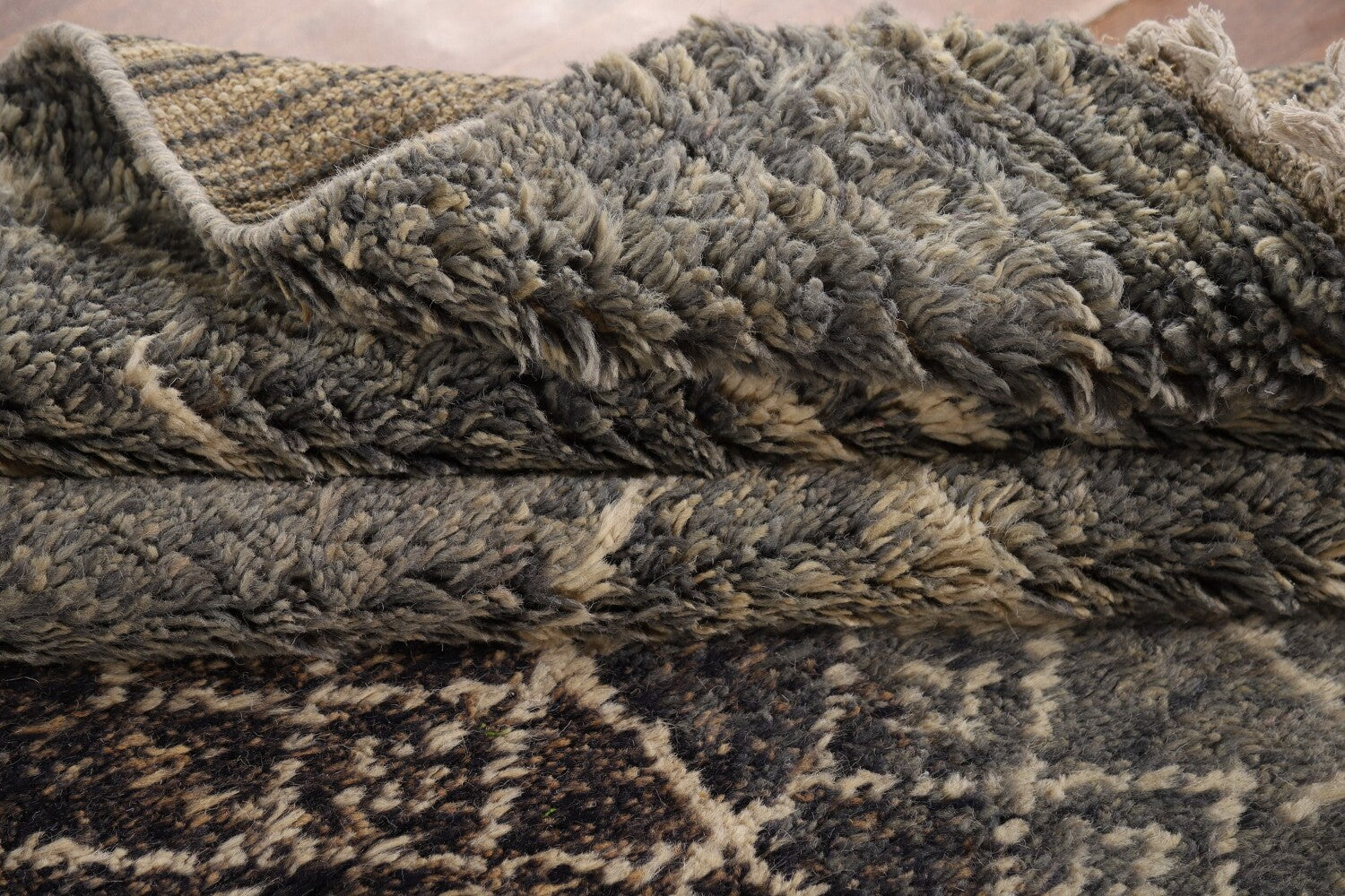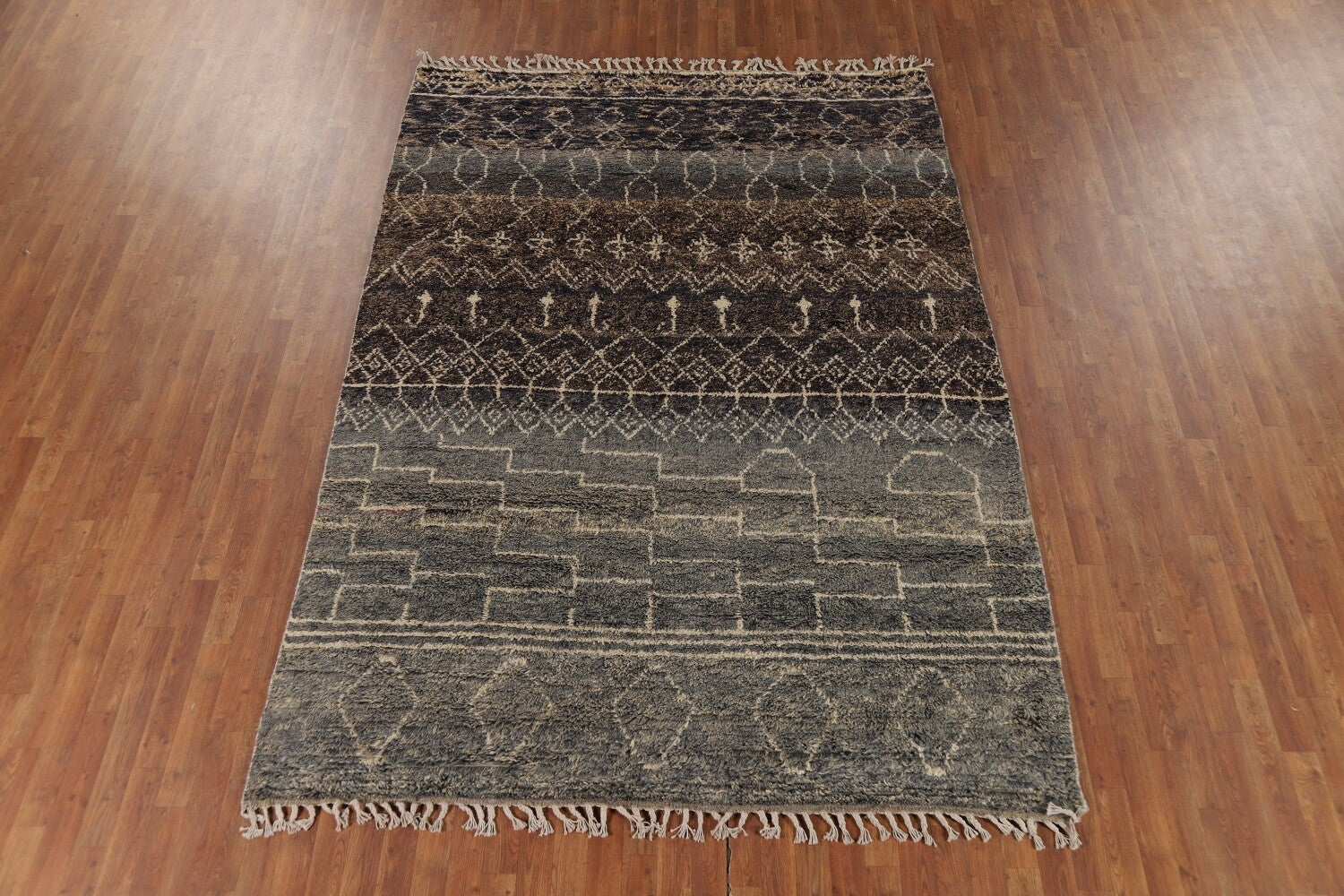 A Beautiful Genuine Pakistan Moroccan rug is Hand Knotted by skillful weavers in Pakistan with 100% Wool Material. This rug is in condition. dimensions are 9' 10'' X 6' 10'' in foot and 300 X 208 in centimeter. the primary color is Greys & Charcoal.