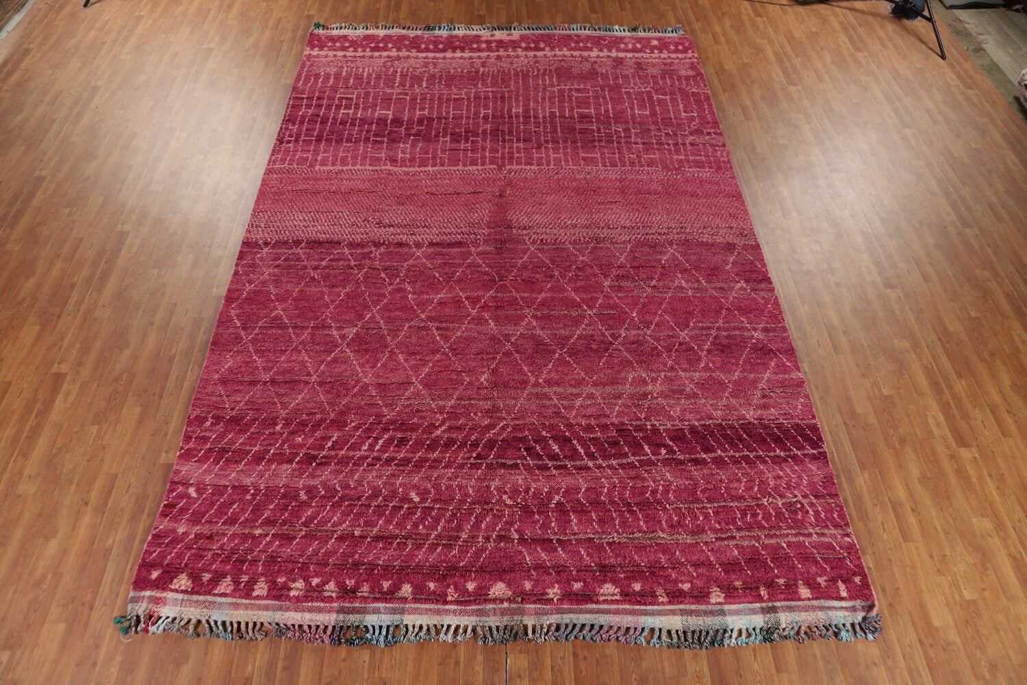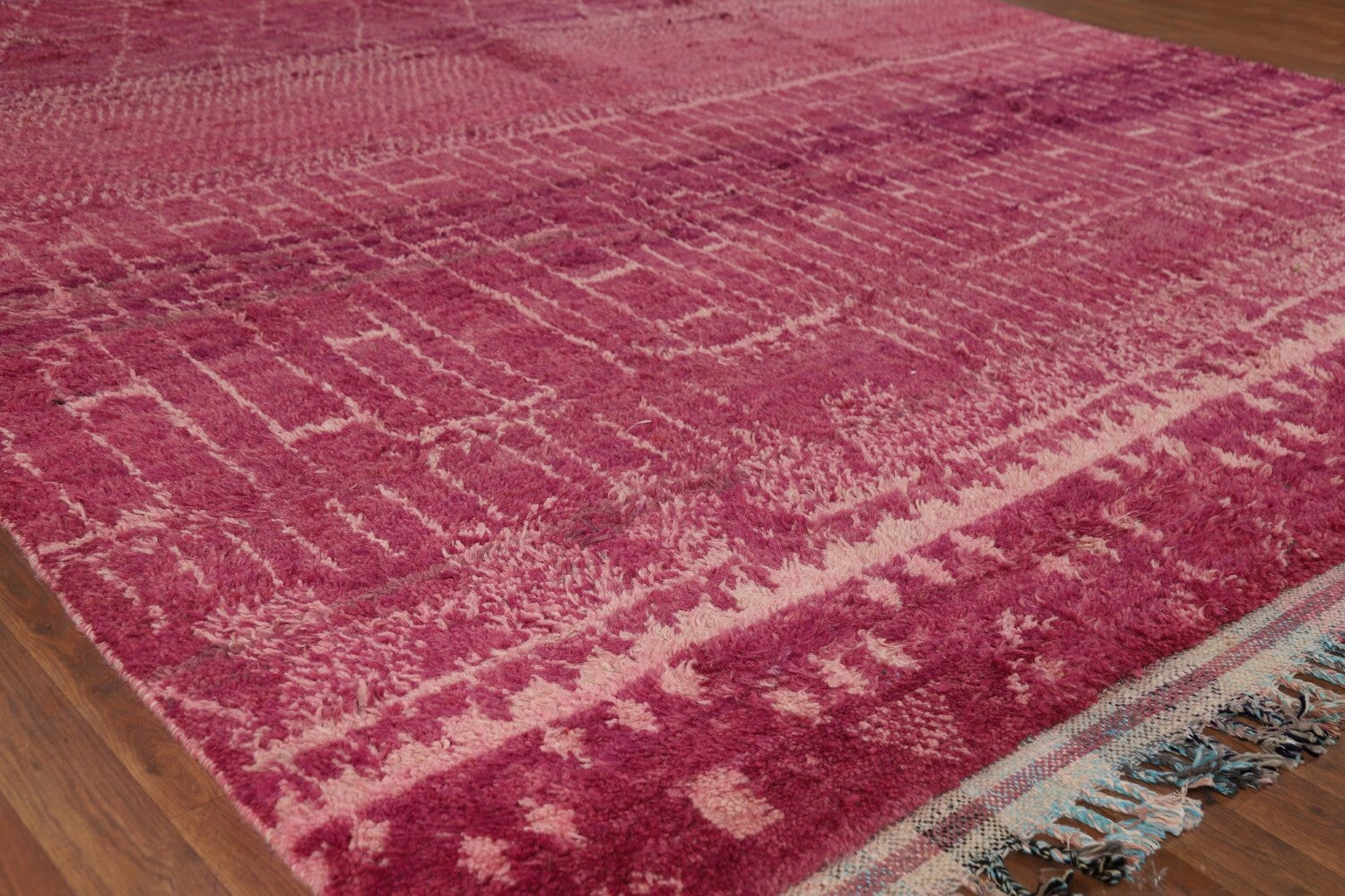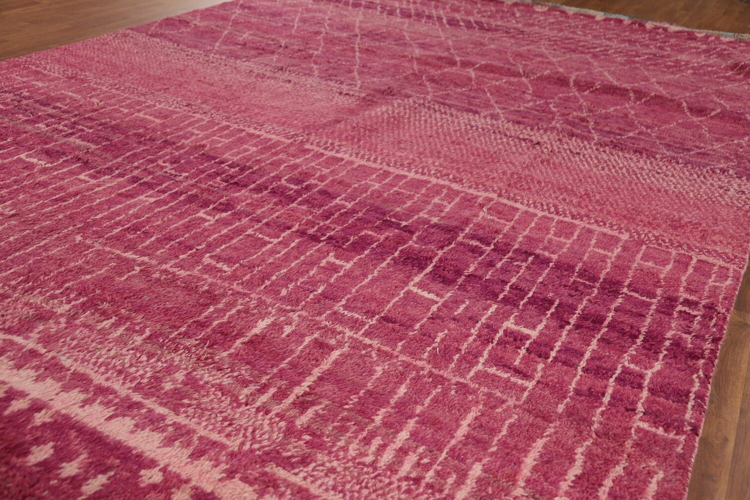 A Beautiful Genuine Pakistan Moroccan rug is Hand Knotted by skillful weavers in Pakistan with 100% Wool Material. This rug is in New, First Quality condition. dimensions are 14' 7'' X 9' 6'' in foot and 445 X 290 in centimeter. the primary color is Pink.