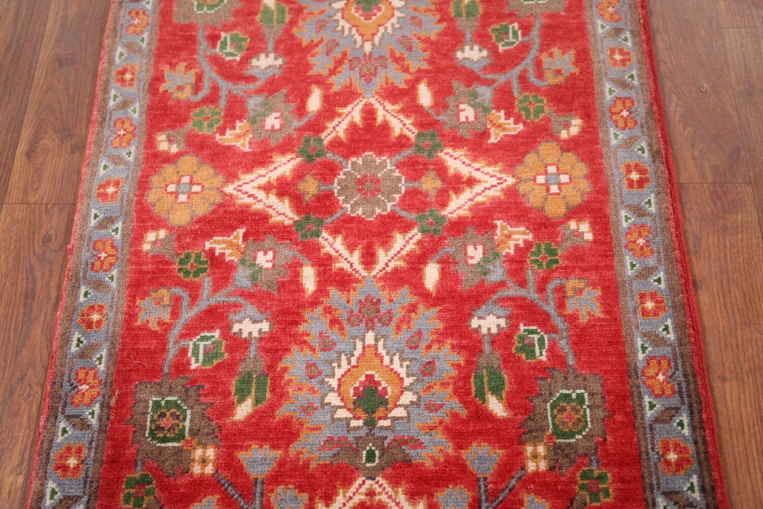 A Beautiful Genuine Pakistan Kazak rug is Hand Knotted by skillful weavers in Pakistan with 100% Wool Material. This rug is in New, First Quality condition. dimensions are 3' 1'' X 2' 1'' in foot and 94 X 64 in centimeter. the primary color is Red.