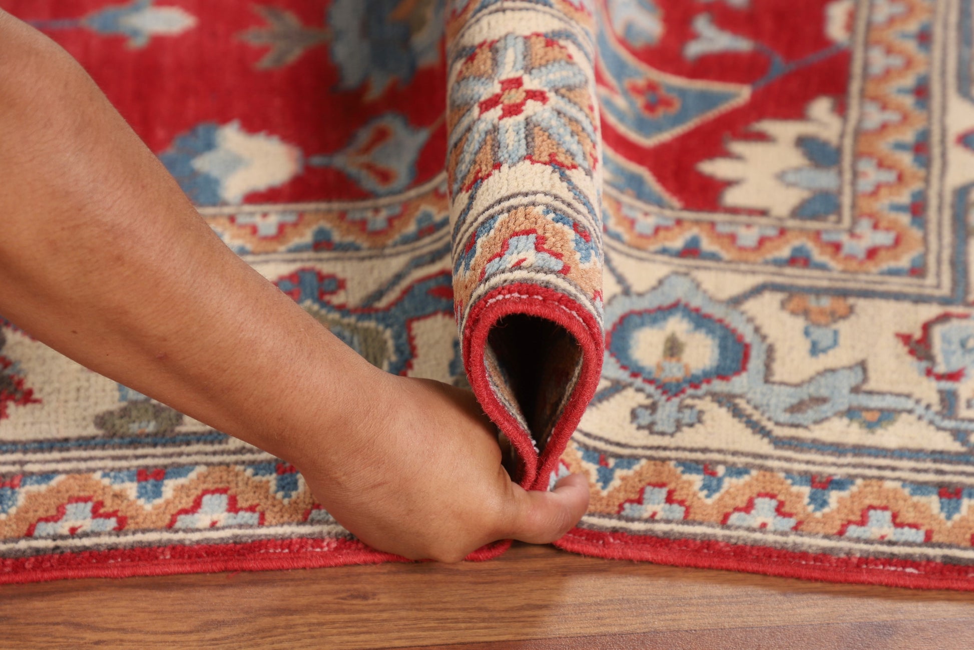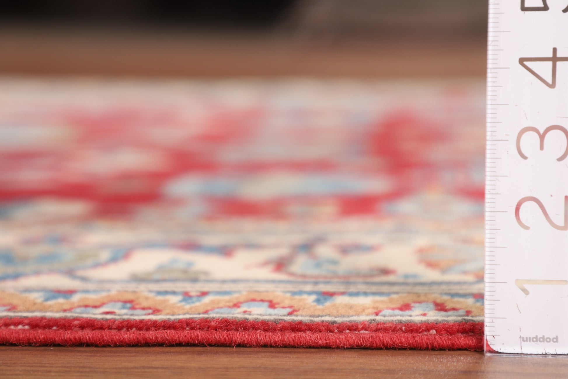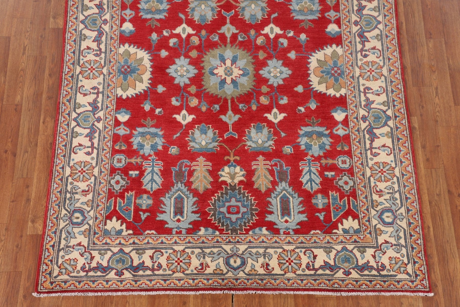 A Beautiful Genuine Pakistan Kazak rug is Hand Knotted by skillful weavers in Pakistan with 100% Wool Material. This rug is in New, First Quality condition. dimensions are 6' 7'' X 5' 1'' in foot and 201 X 155 in centimeter. the primary color is Red.