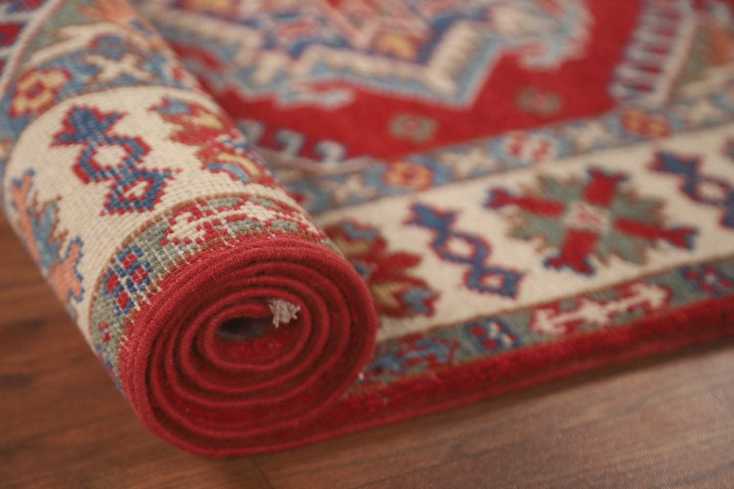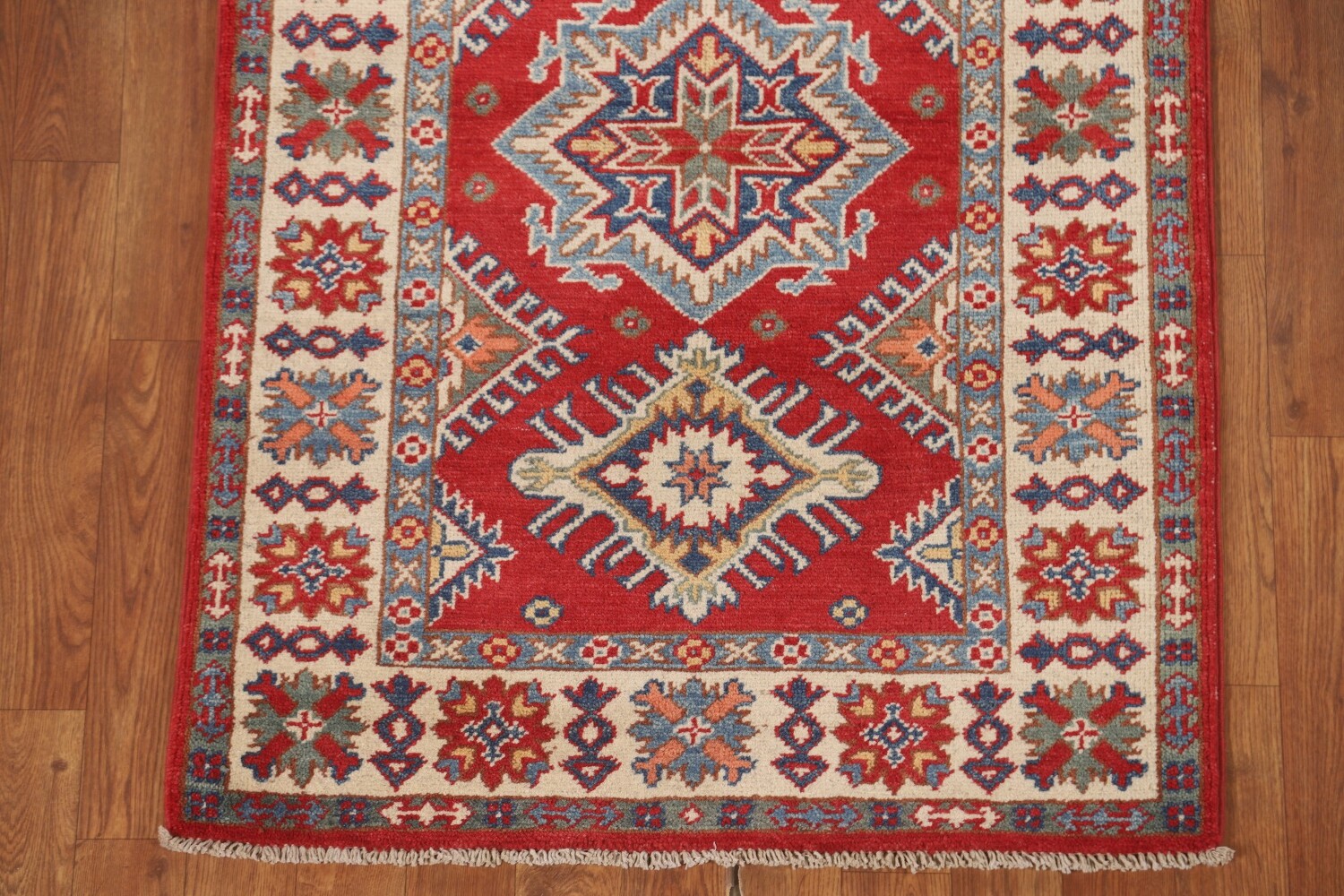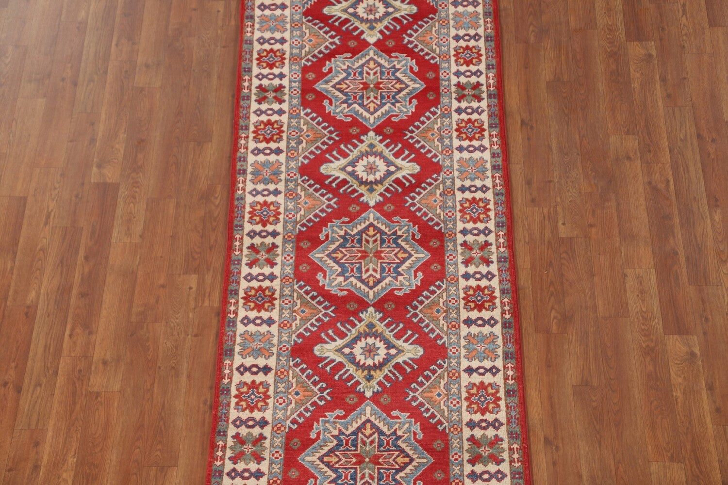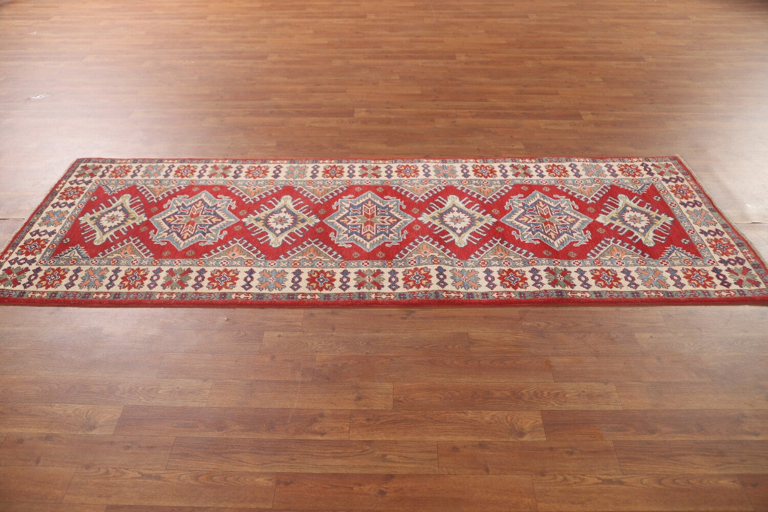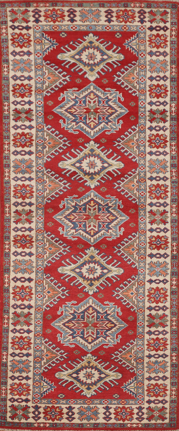 Handmade Red Kazak Oriental Runner Rug 3x8