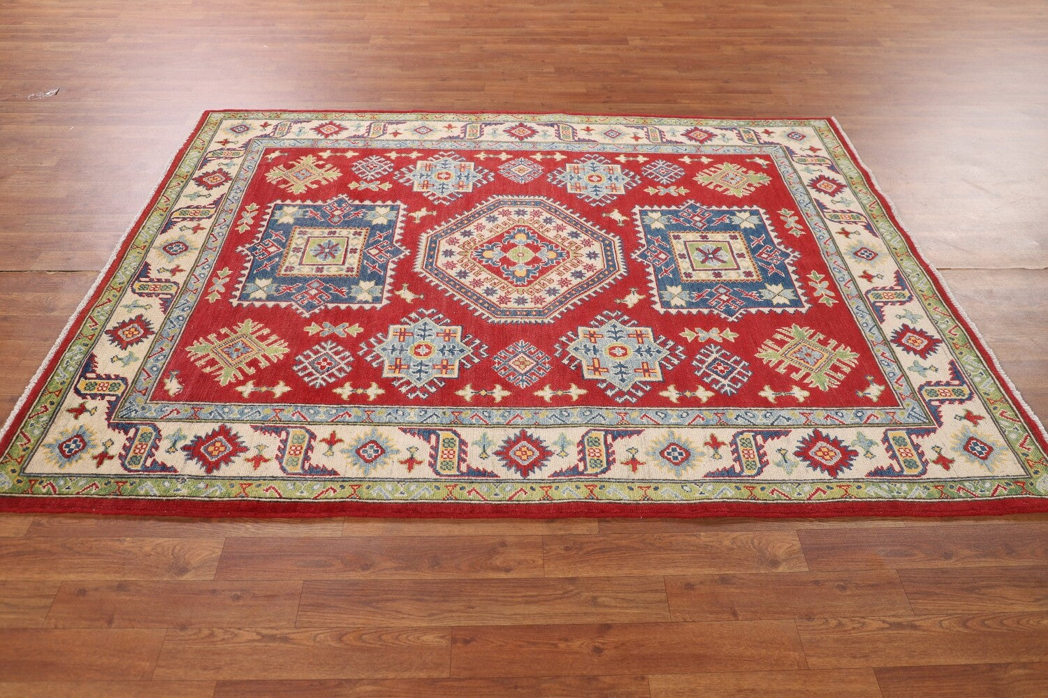 Handmade Red Kazak Oriental Wool Rug 5x7