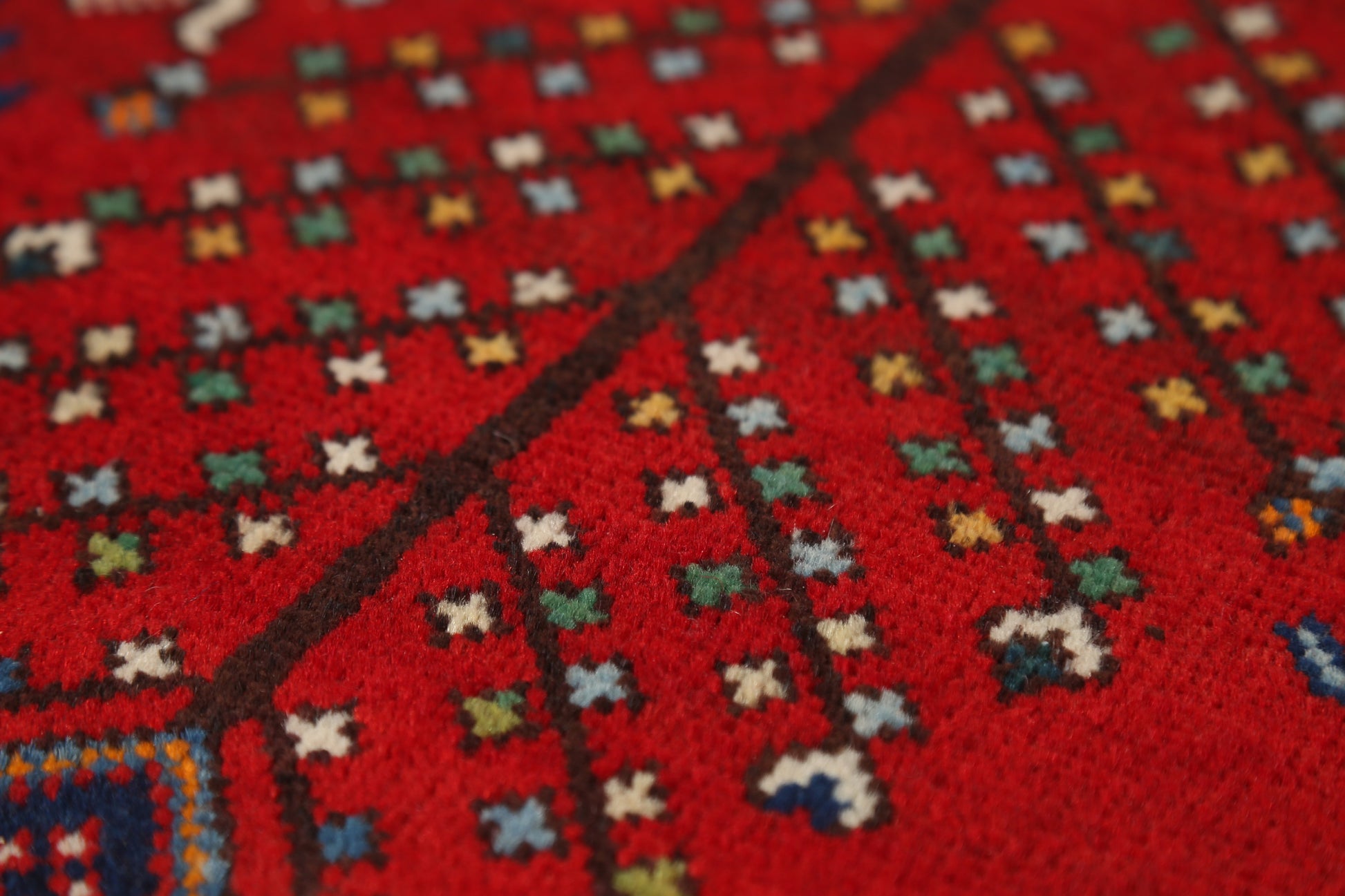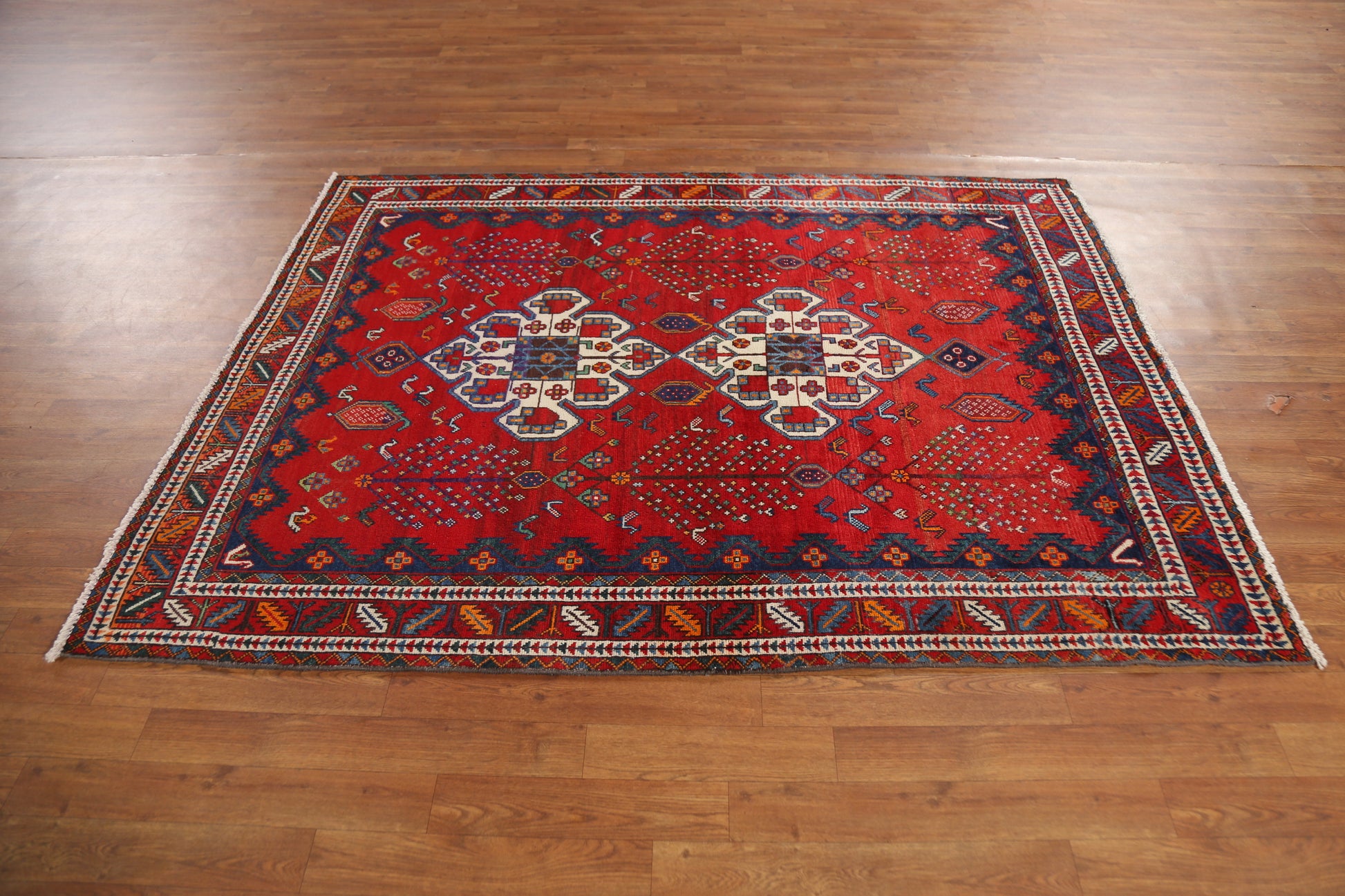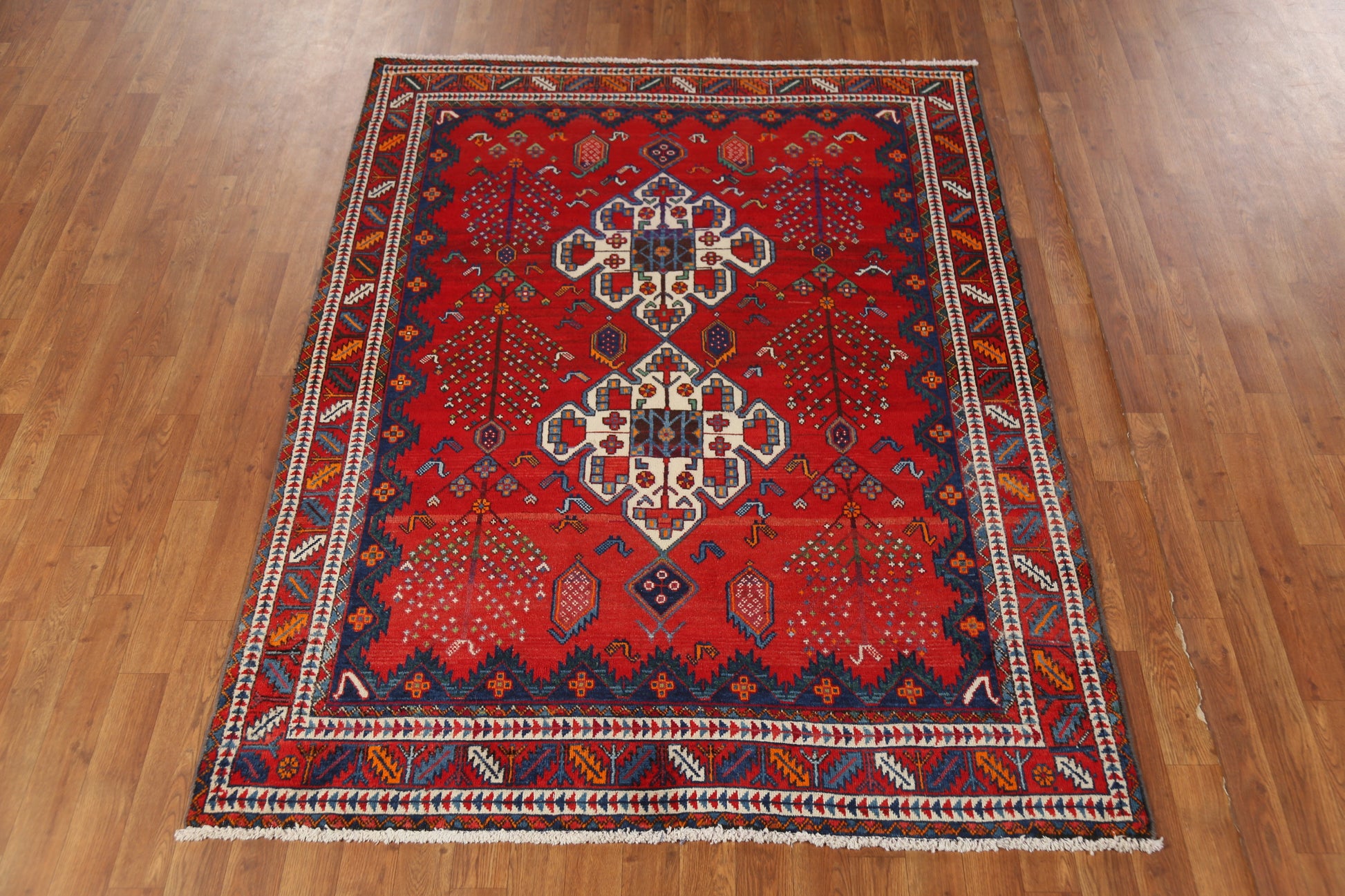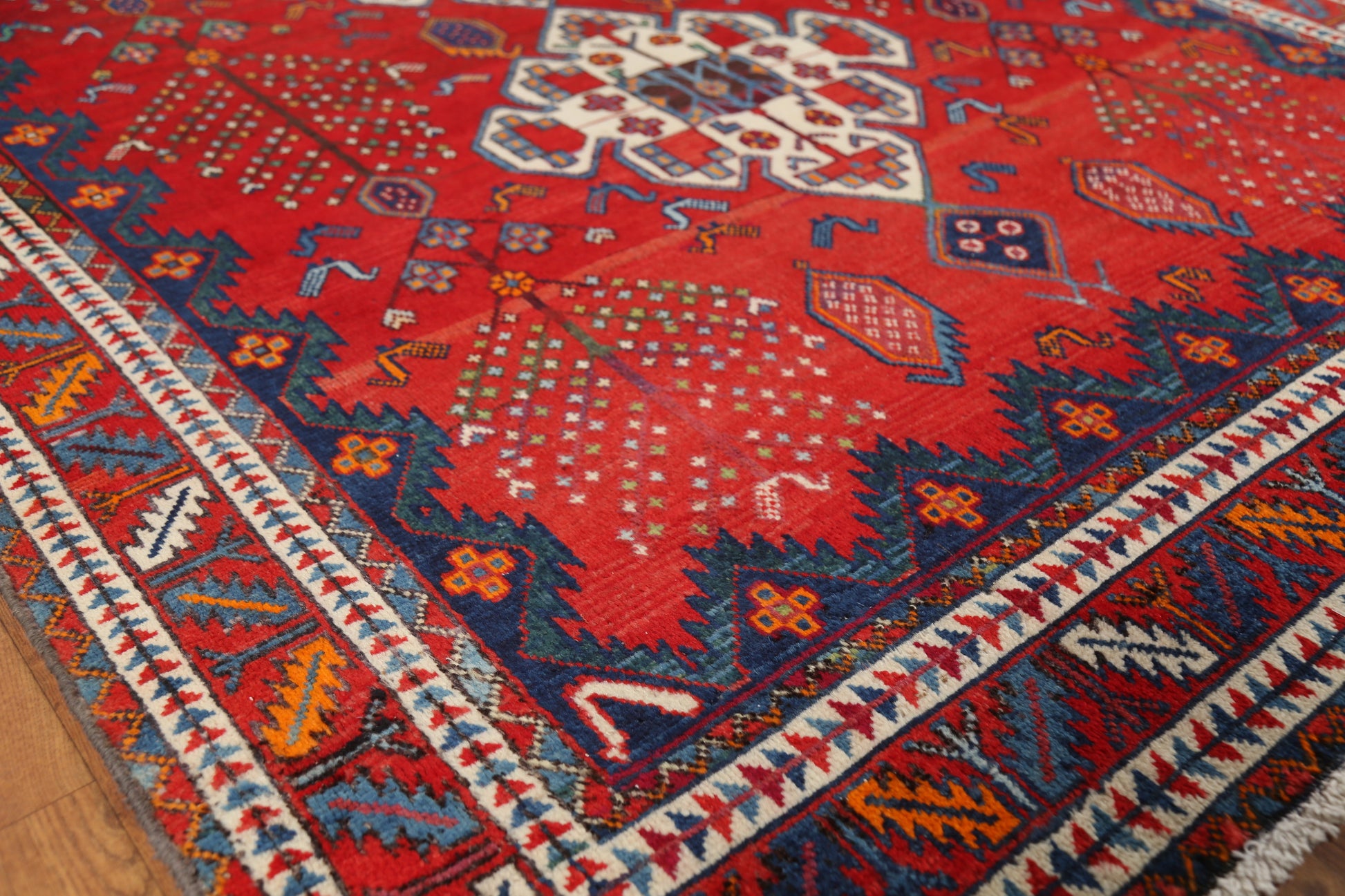 A Beautiful Genuine Persia ( Persia ) Sirjan rug is Hand Knotted by skillful weavers in Persia ( Persia ) with 100% Wool Material. This rug is in Very Good (Abrash) condition. dimensions are 6' 5'' X 4' 10'' in foot and 196 X 147 in centimeter. the primary color is Red.
