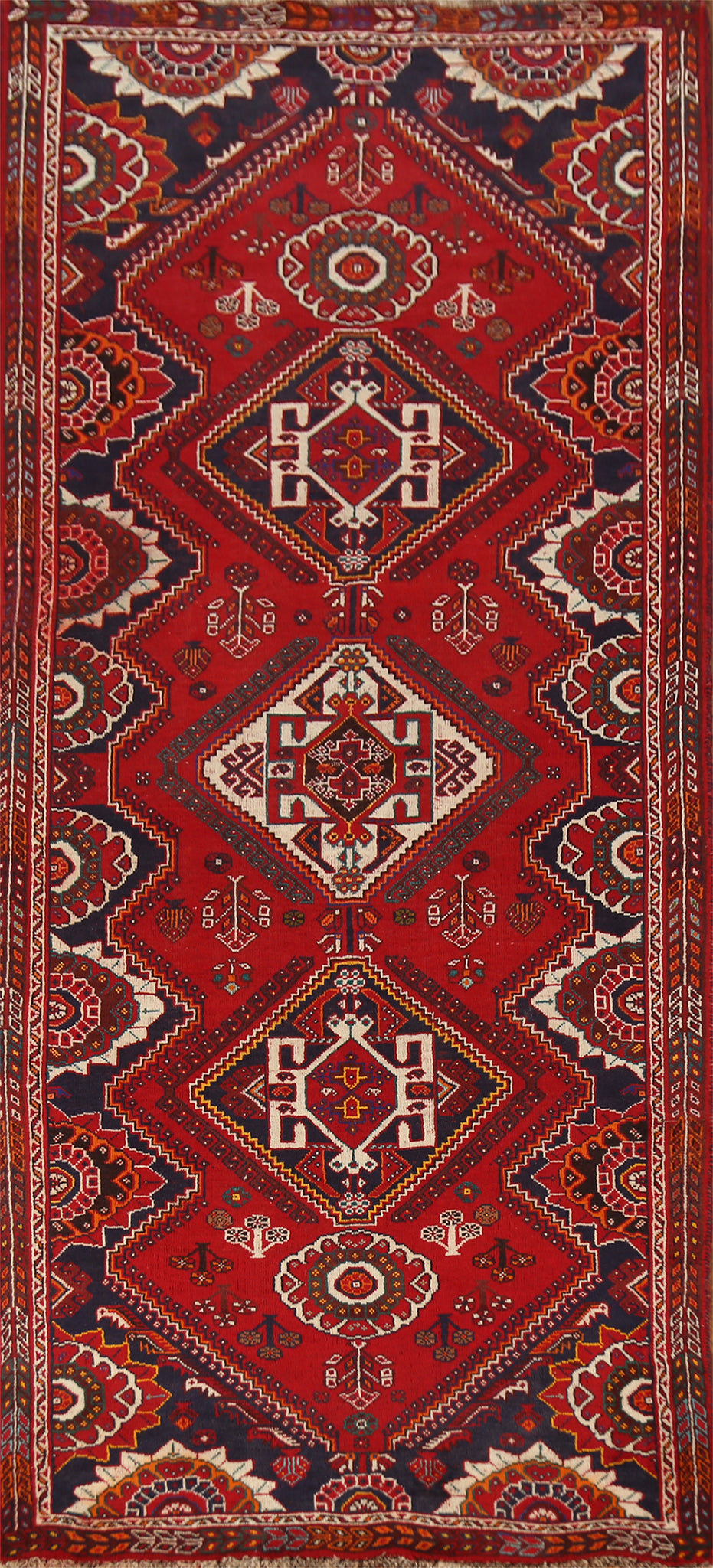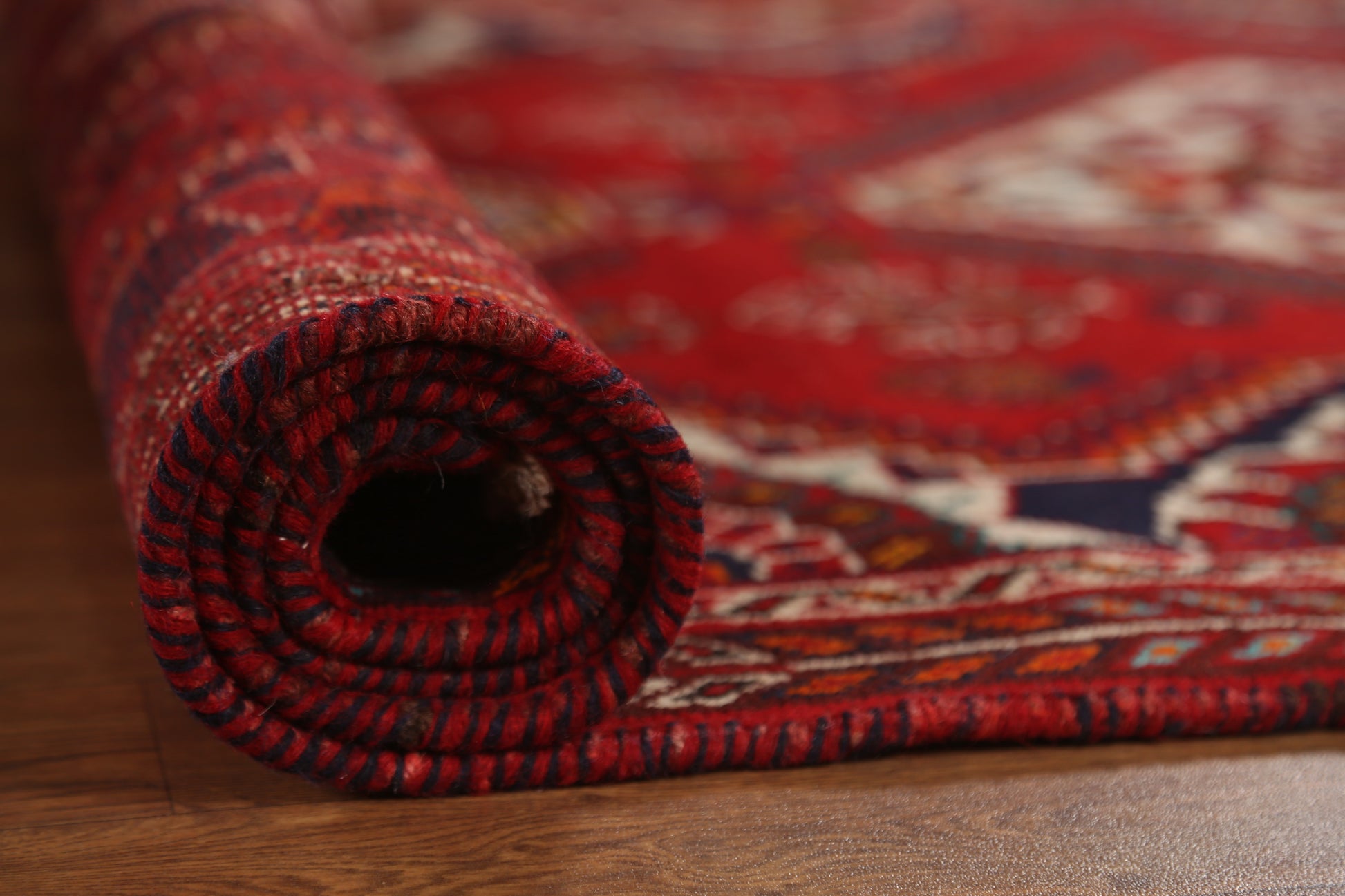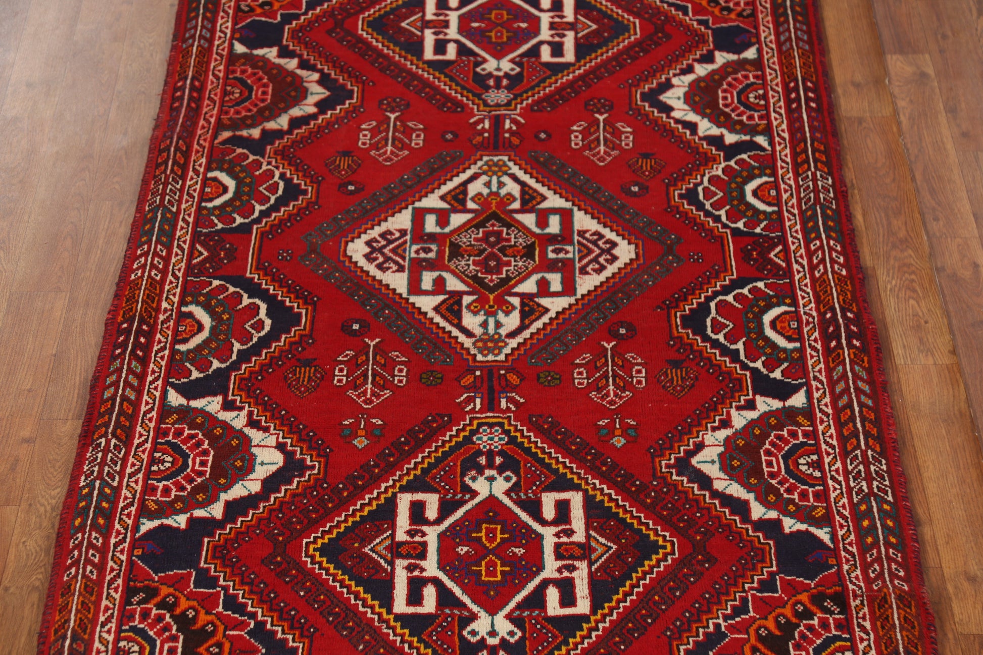 Handmade Red Wool Shiraz Persian Runner Rug 4x9