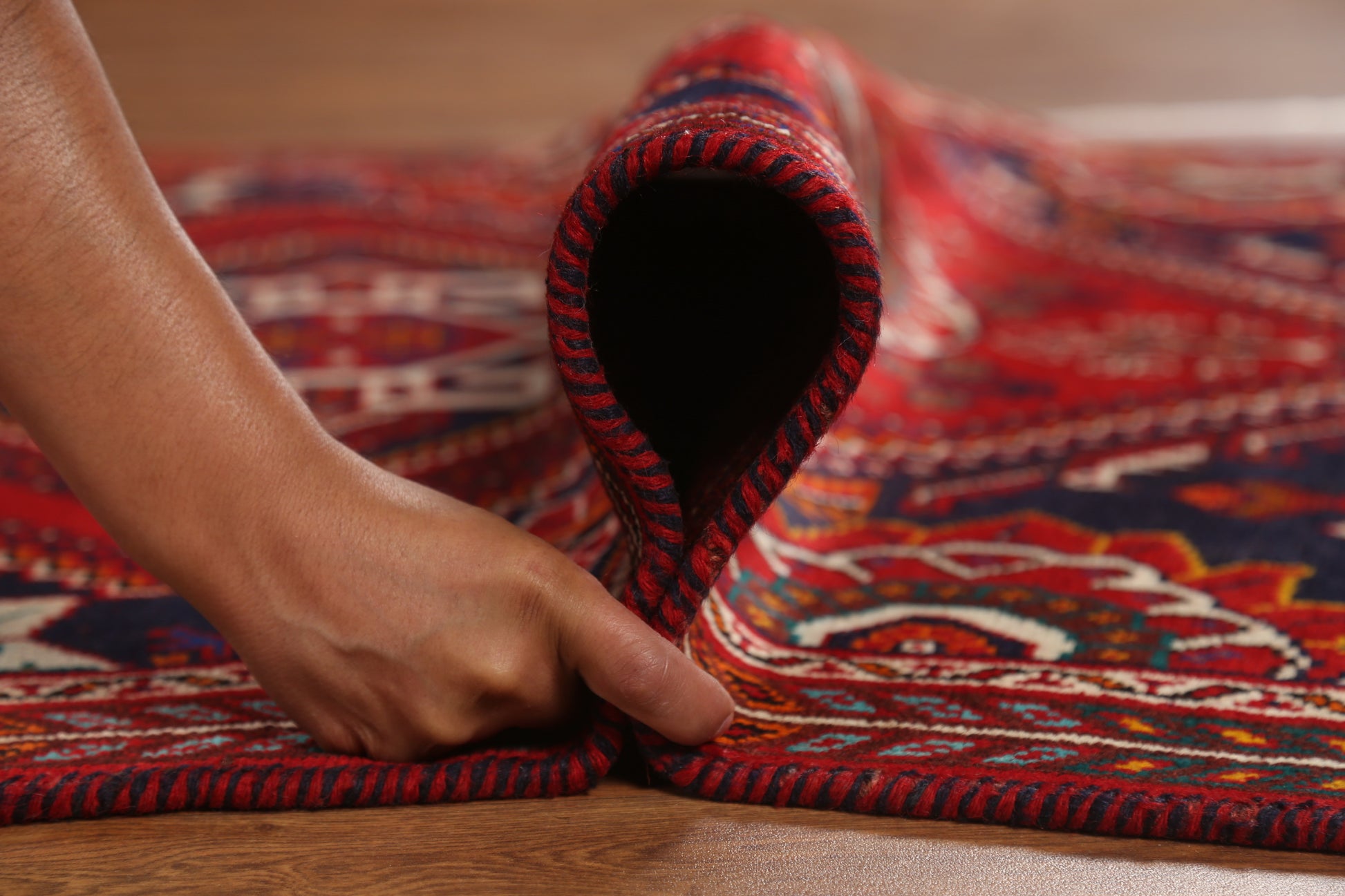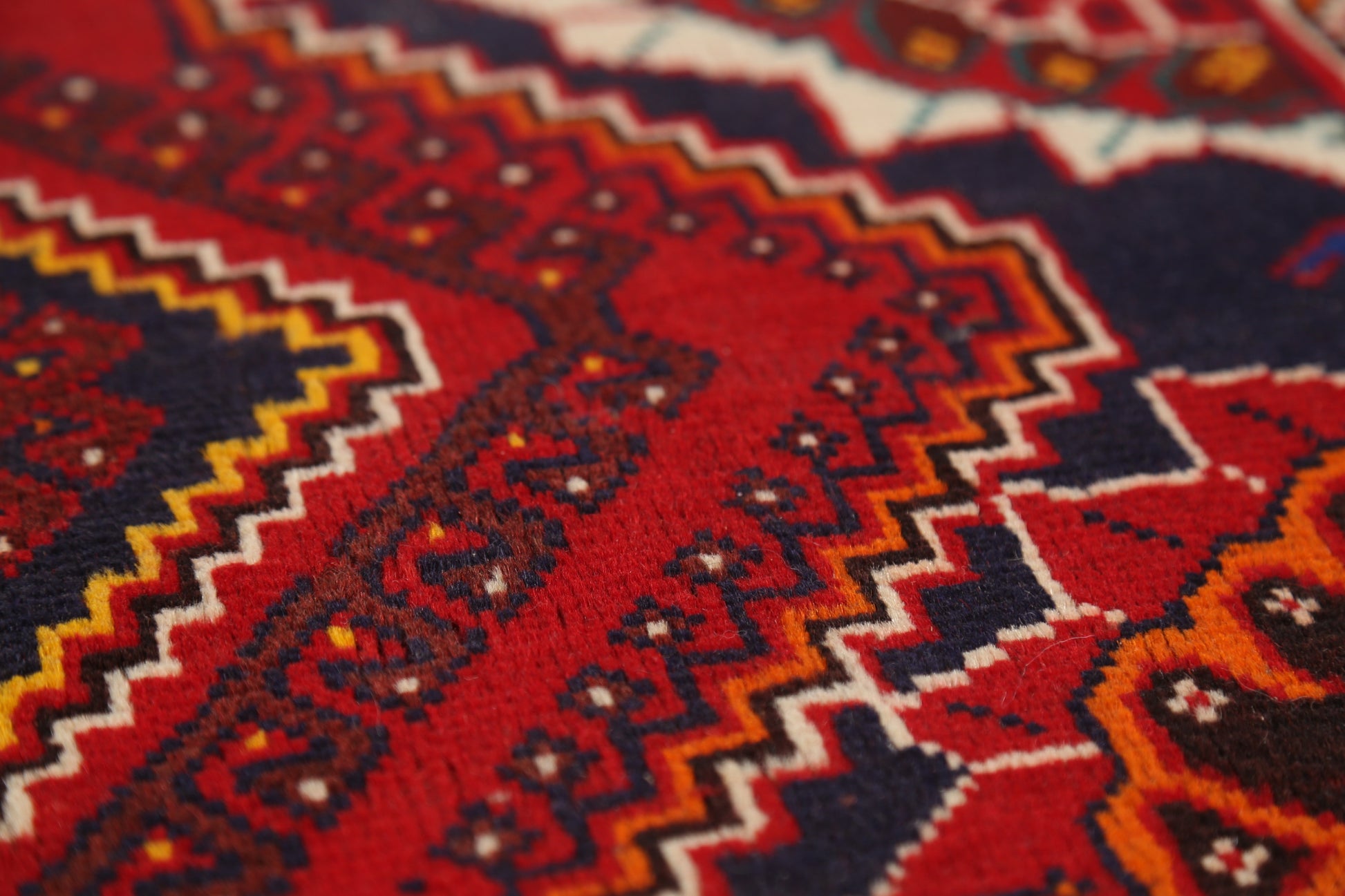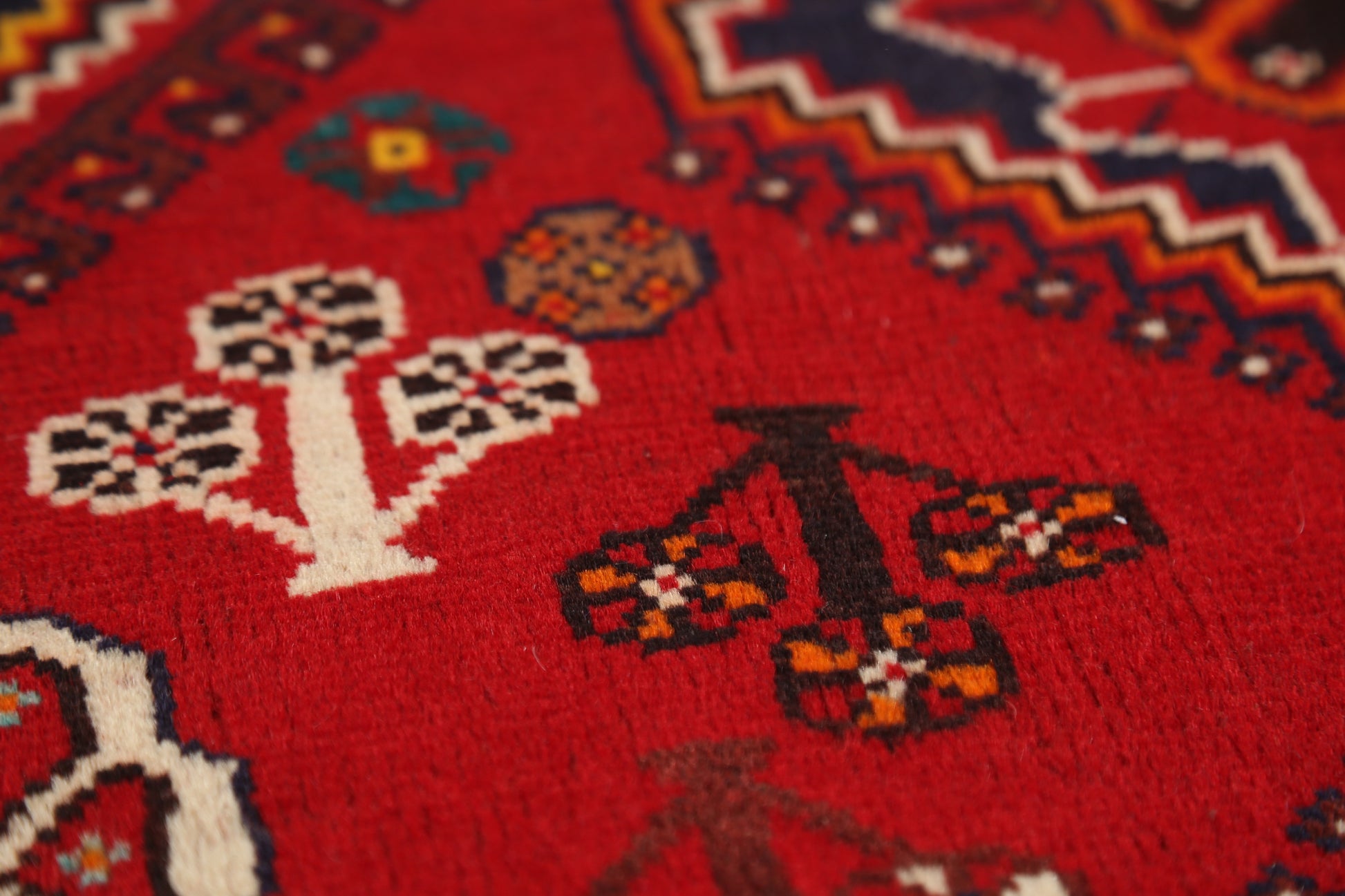 Handmade Red Wool Shiraz Persian Runner Rug 4x9