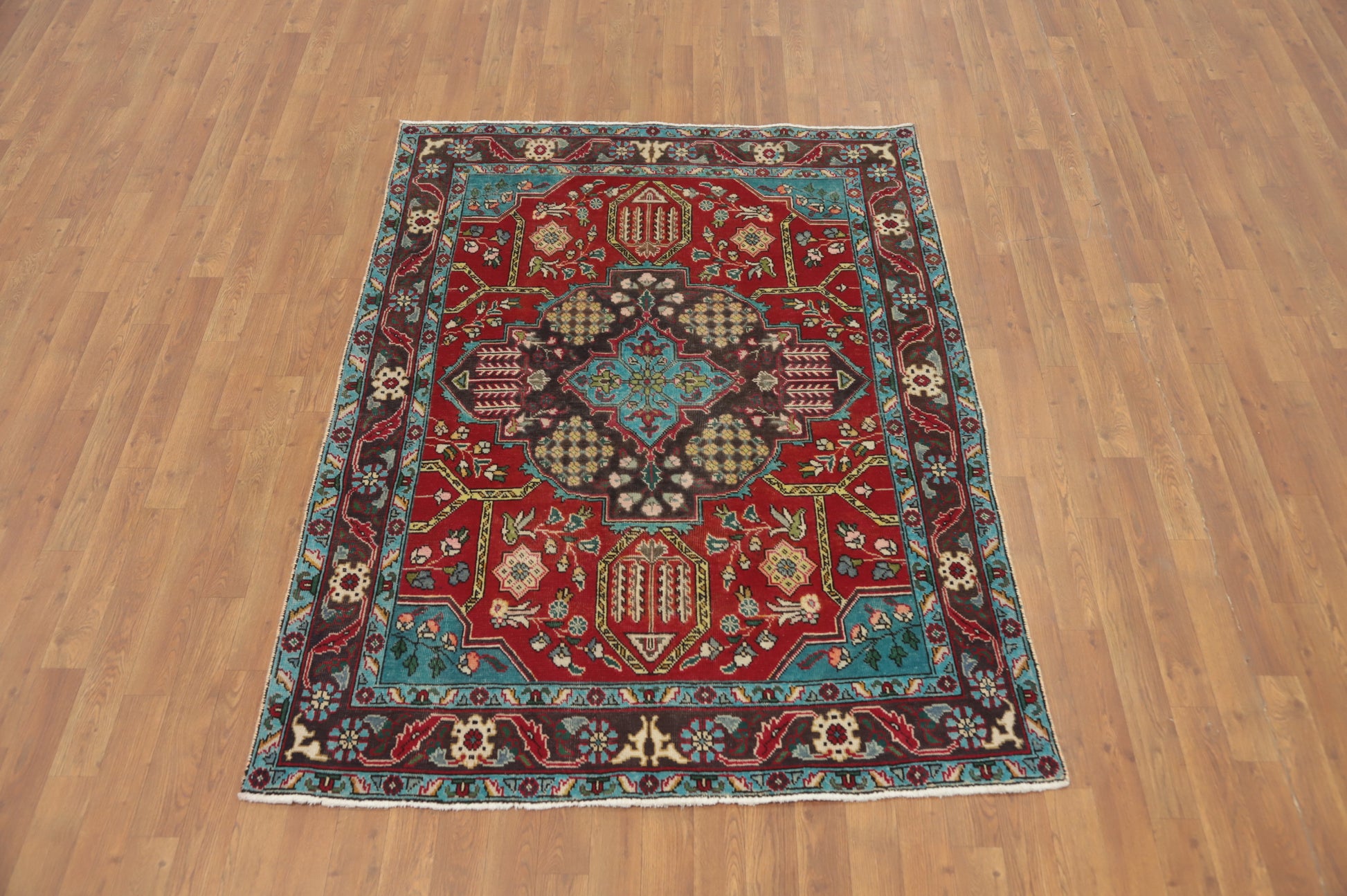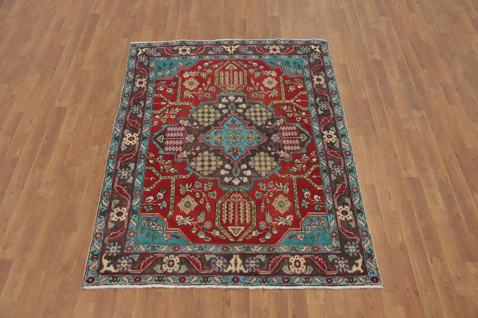 Handmade Red Wool Tabriz Persian Rug 5x6
