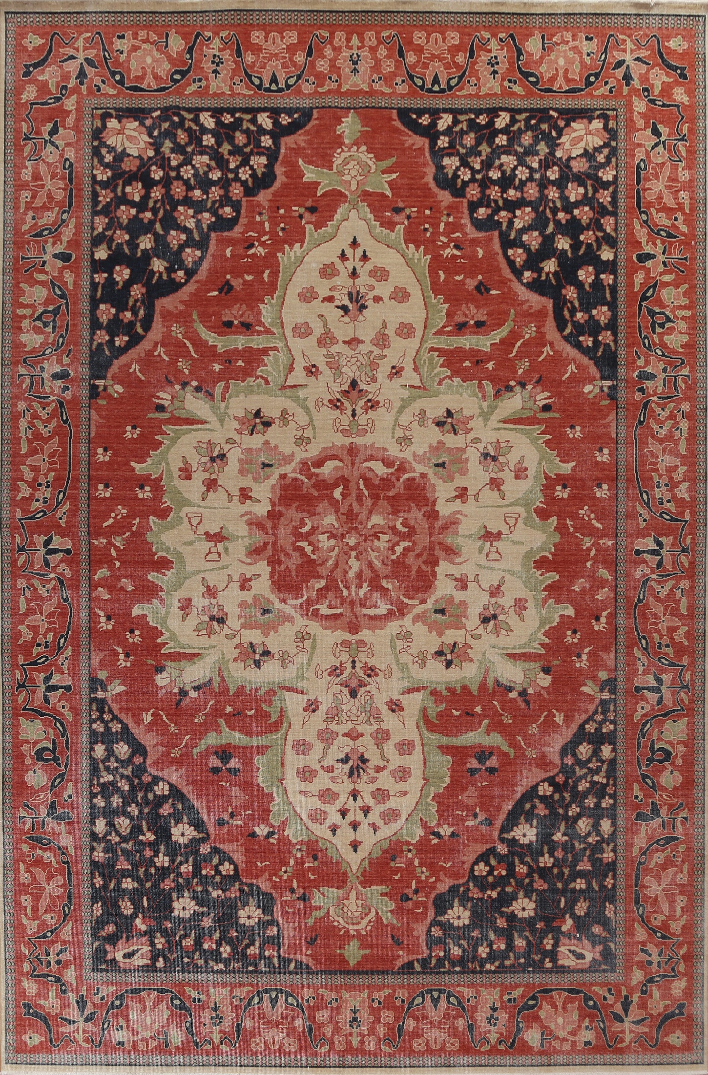 A Beautiful Genuine Turkey Sarouk (Farahan) rug is Hand Knotted by skillful weavers in Turkey with 100% Wool Material. This rug is in New, First Quality condition. dimensions are 12' 11'' X 9' 10'' in foot and 394 X 300 in centimeter. the primary color is Red.