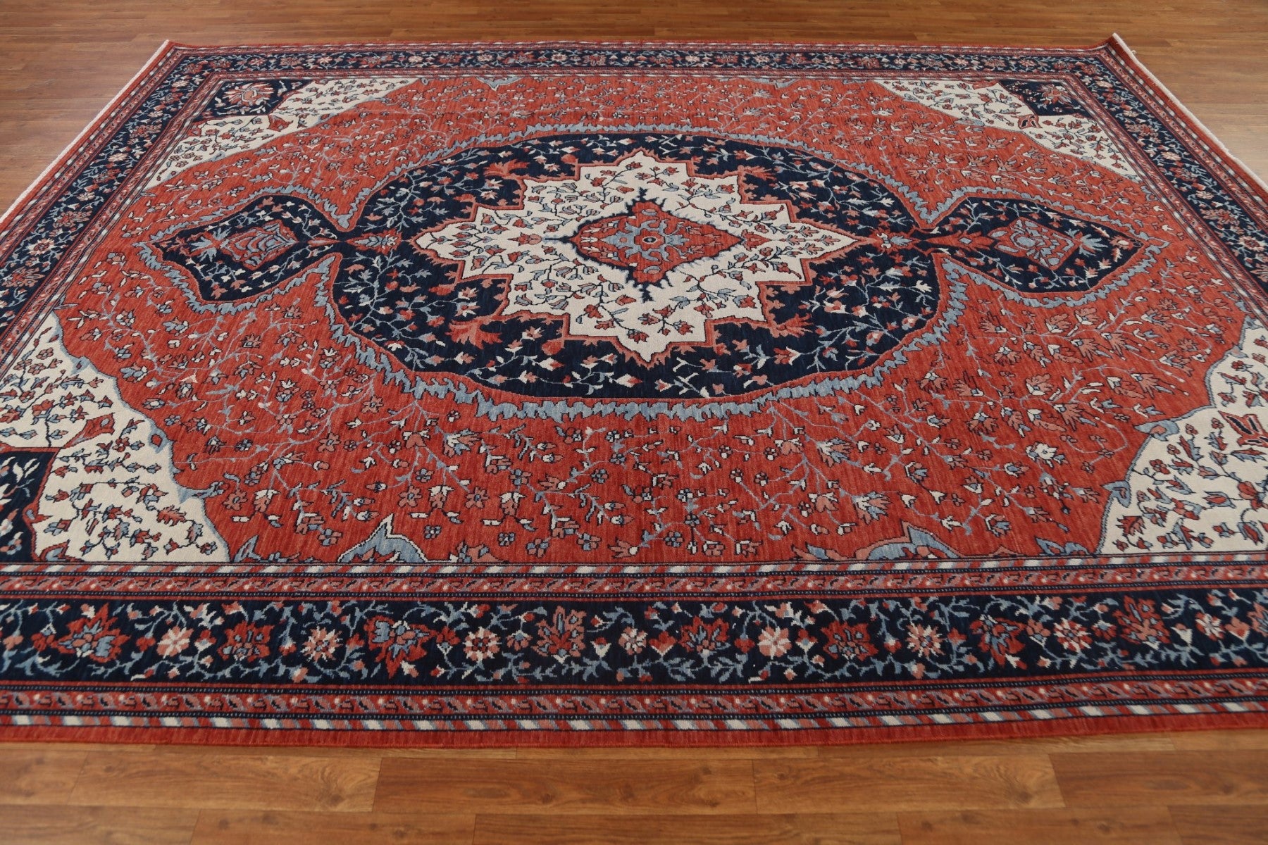 A Beautiful Genuine Turkey Sarouk (Farahan) rug is Hand Knotted by skillful weavers in Turkey with 100% Wool Material. This rug is in New, First Quality condition. dimensions are 11' 9'' X 8' 10'' in foot and 358 X 269 in centimeter. the primary color is Red.