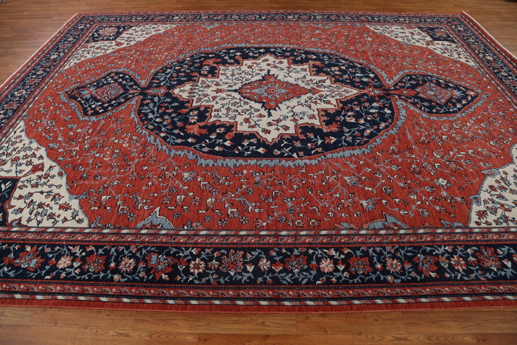 A Beautiful Genuine Turkey Sarouk (Farahan) rug is Hand Knotted by skillful weavers in Turkey with 100% Wool Material. This rug is in New, First Quality condition. dimensions are 12' 9'' X 9' 10'' in foot and 389 X 300 in centimeter. the primary color is Red.