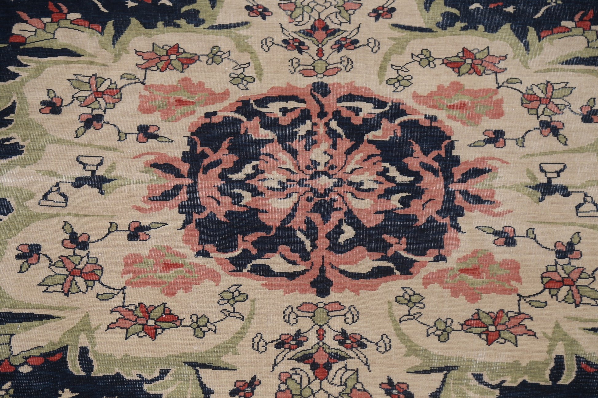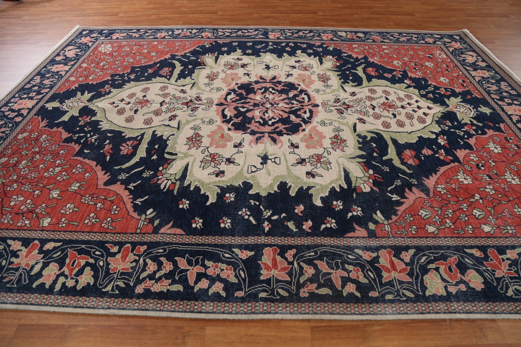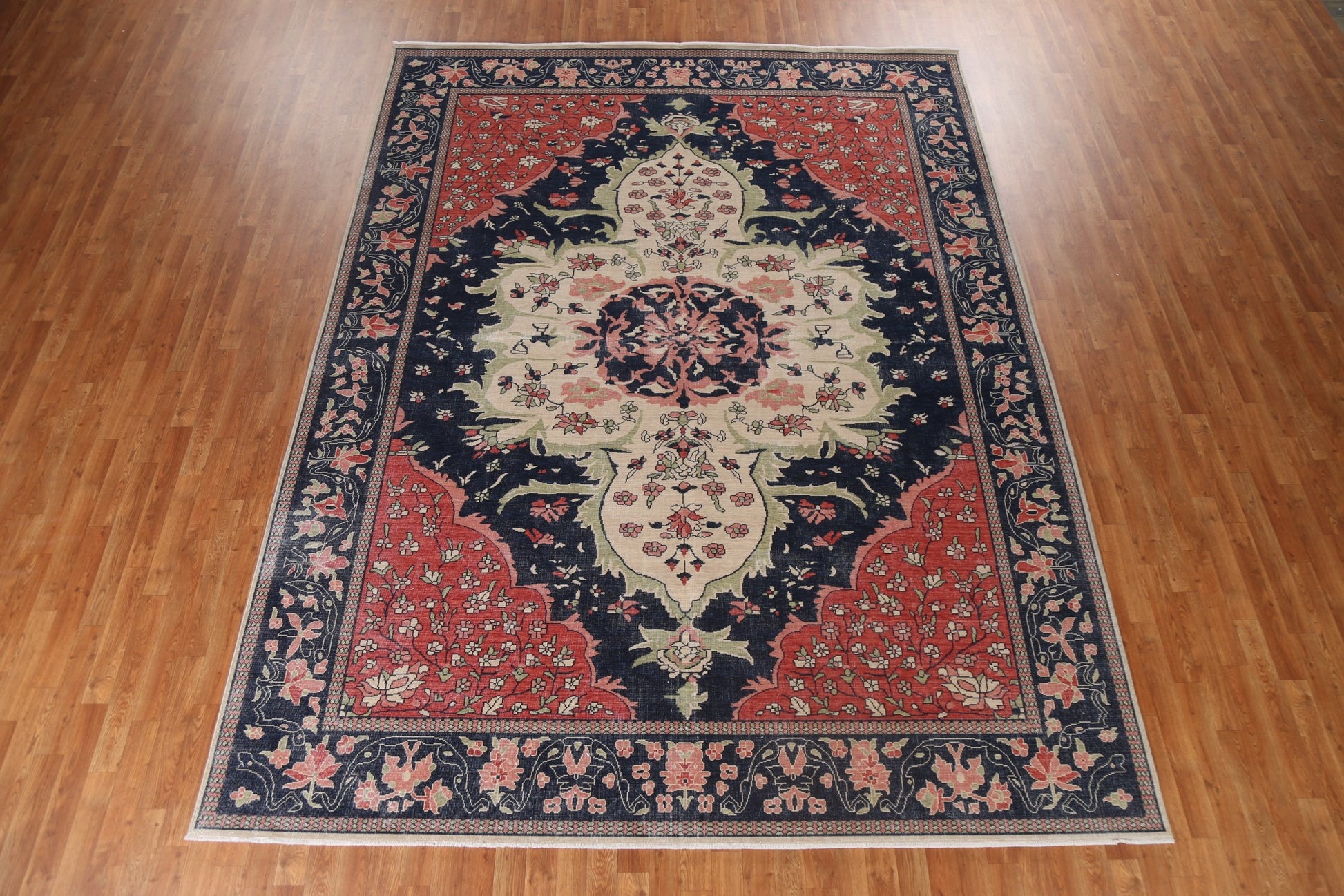 A Beautiful Genuine Turkey Sarouk (Farahan) rug is Hand Knotted by skillful weavers in Turkey with 100% Wool Material. This rug is in New, First Quality condition. dimensions are 11' 9'' X 8' 10'' in foot and 358 X 269 in centimeter. the primary color is Navy Blue & Blues.