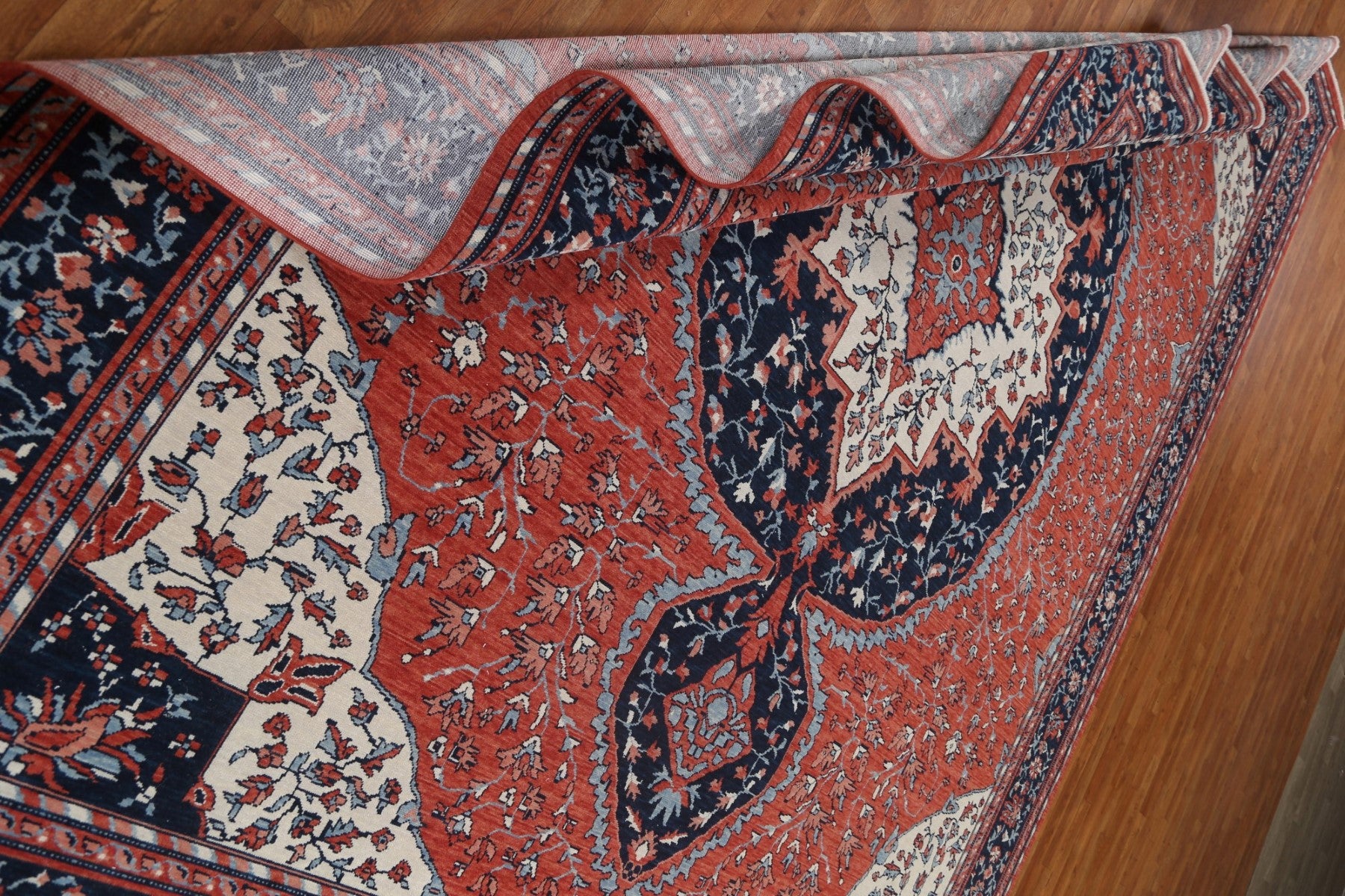 A Beautiful Genuine Turkey Sarouk (Farahan) rug is Hand Knotted by skillful weavers in Turkey with 100% Wool Material. This rug is in New, First Quality condition. dimensions are 13' 0'' X 9' 9'' in foot and 396 X 297 in centimeter. the primary color is Red.