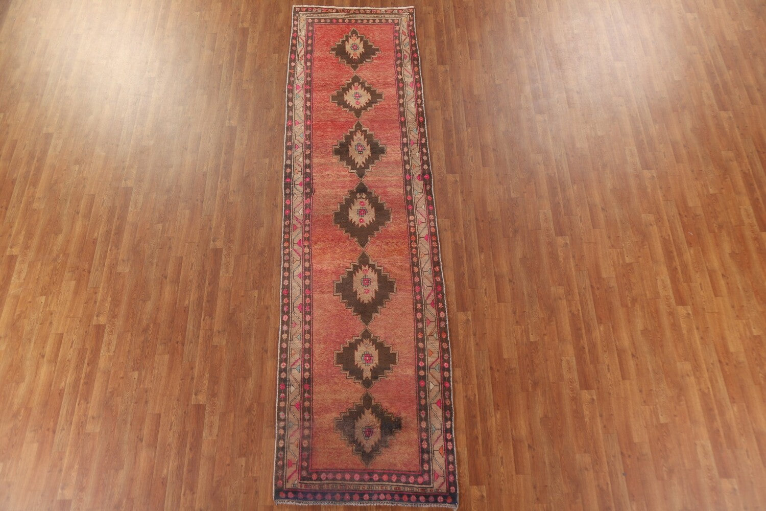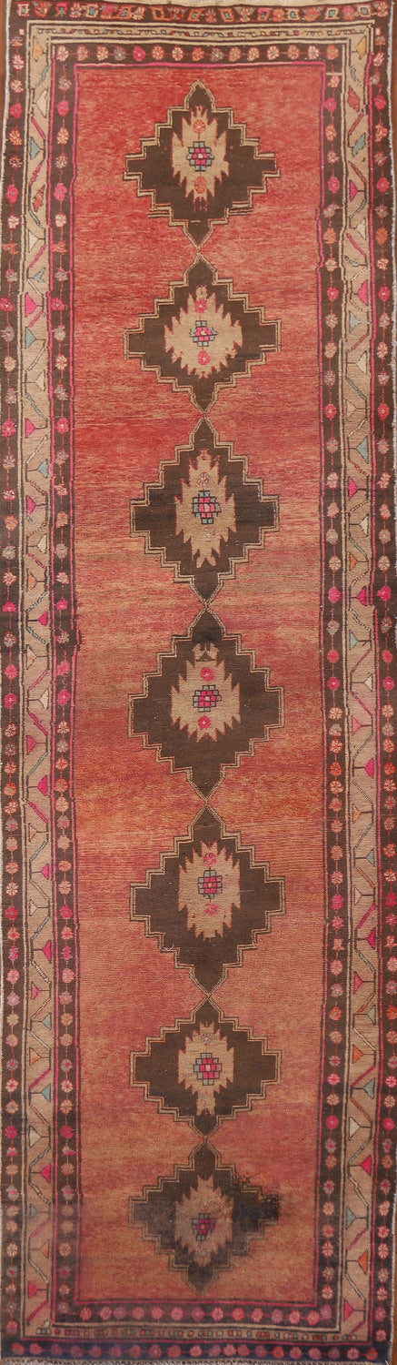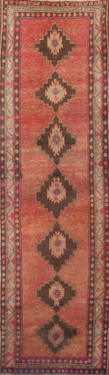 A Beautiful Genuine Persia ( Persia ) Serab rug is Hand Knotted by skillful weavers in Persia ( Persia ) with 100% Wool Material. This rug is in Very Good (Repair) condition. dimensions are 12' 2'' X 3' 3'' in foot and 371 X 99 in centimeter. the primary color is Coral.