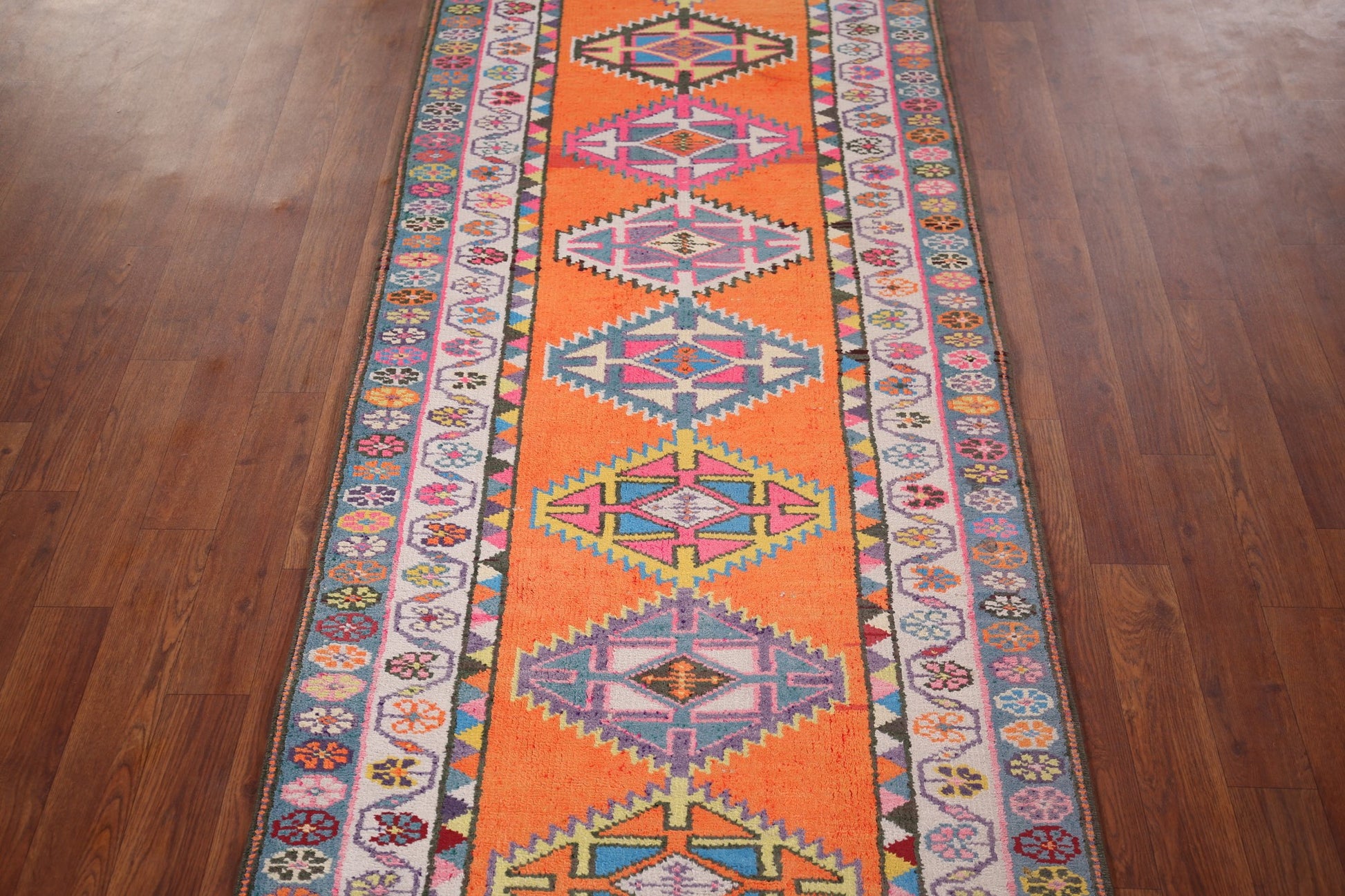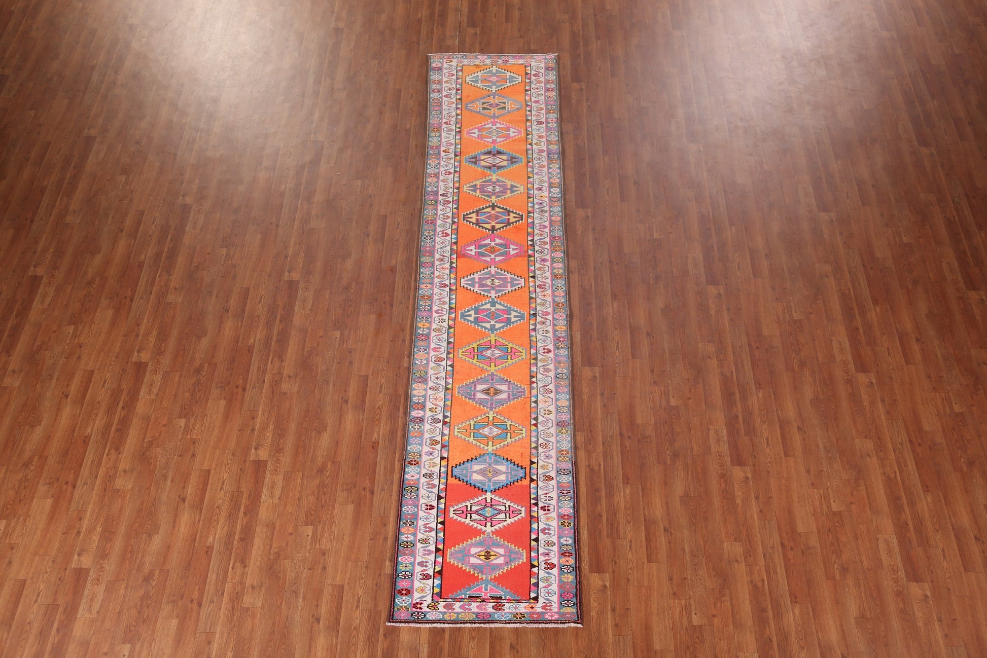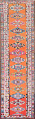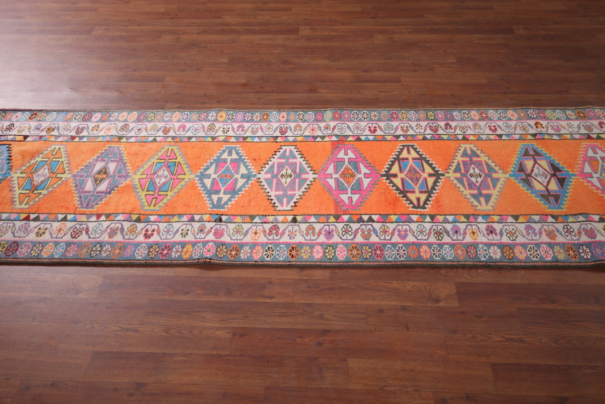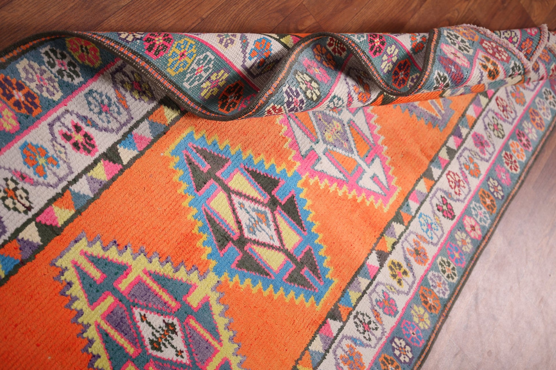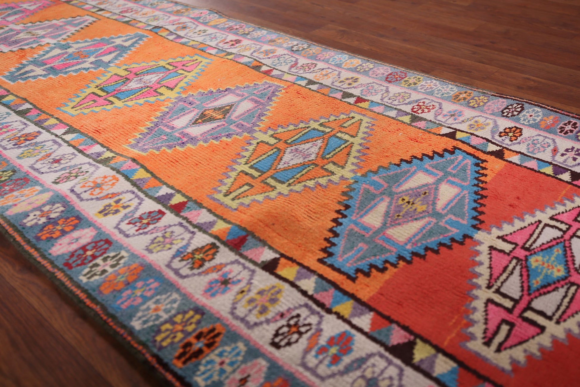 A Beautiful Genuine Turkey Anatolian rug is Hand Knotted by skillful weavers in Turkey with Silk Material. This rug is in Very Good condition. dimensions are 11' 4'' X 2' 8'' in foot and 345 X 81 in centimeter. the primary color is Oranges & Rust.