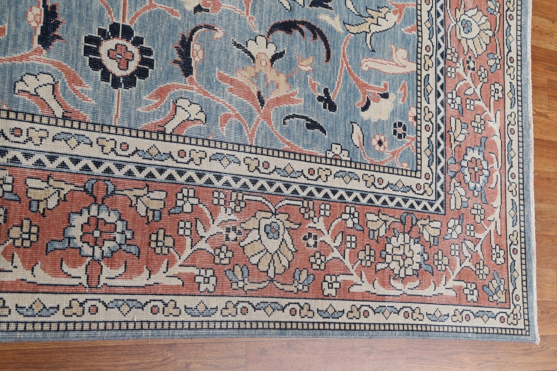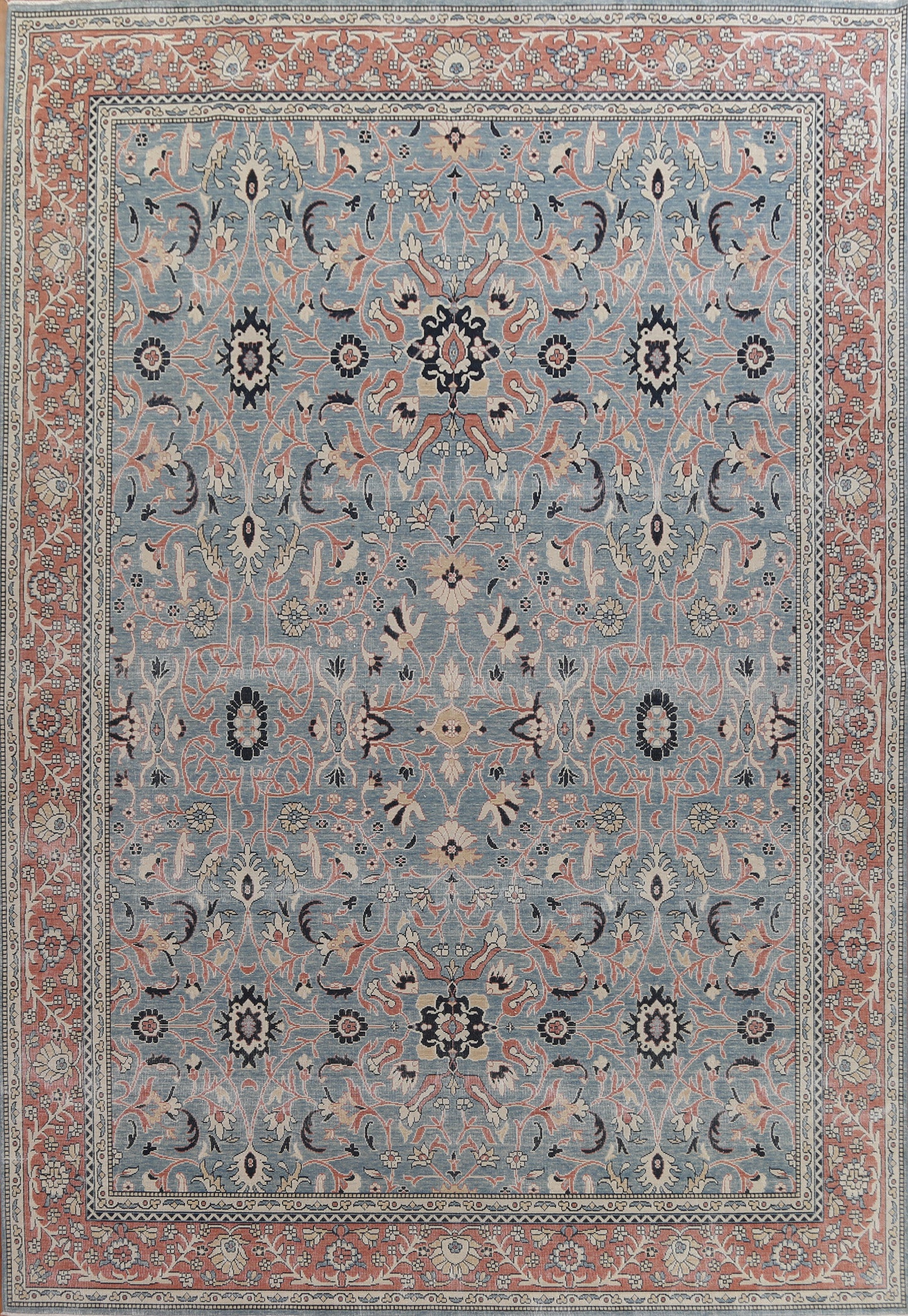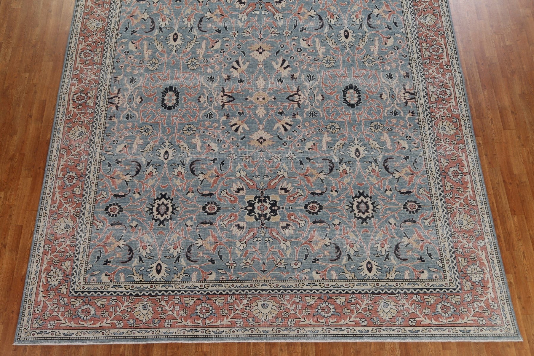 A Beautiful Genuine Turkey Sultanabad (Ziegler) rug is Hand Knotted by skillful weavers in Turkey with 100% Wool Material. This rug is in New, First Quality condition. dimensions are 13' 0'' X 9' 9'' in foot and 396 X 297 in centimeter. the primary color is Navy Blue & Blues.
