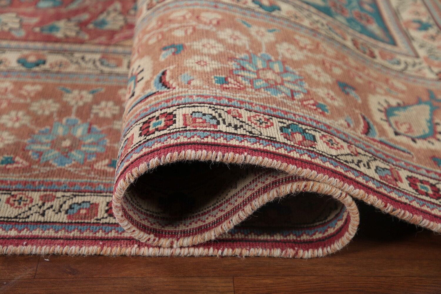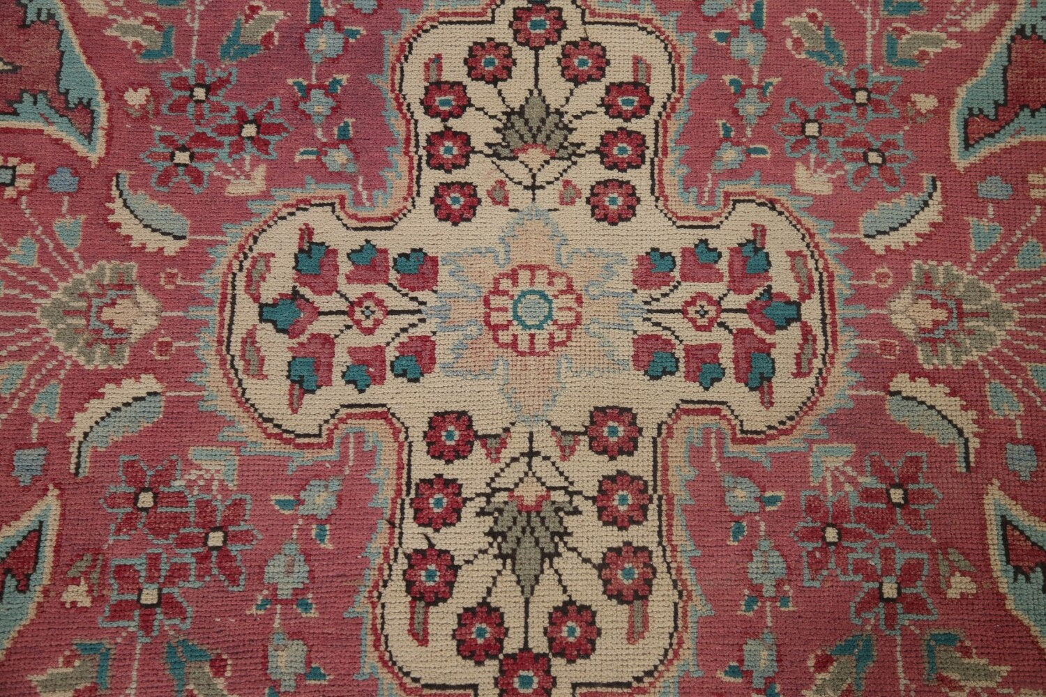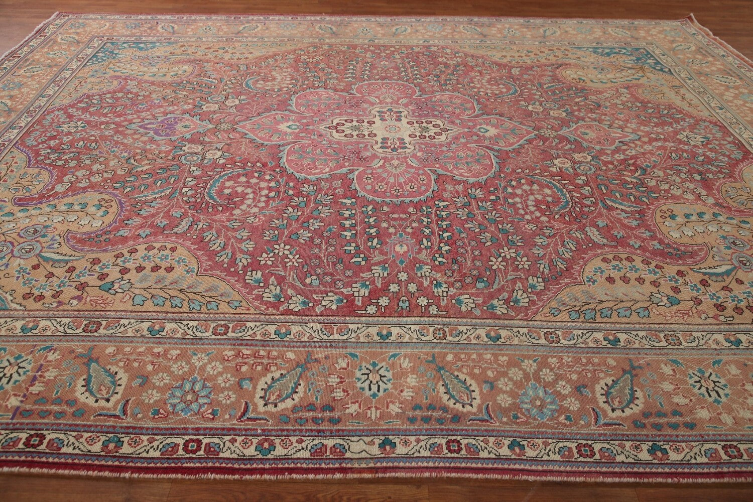 A Beautiful Genuine Persia ( Persia ) Tabriz rug is Hand Knotted by skillful weavers in Persia ( Persia ) with 100% Wool Material. This rug is in Very Good (Evenly Low Pile) condition. dimensions are 12' 11'' X 9' 7'' in foot and 394 X 292 in centimeter. the primary color is Pink.