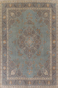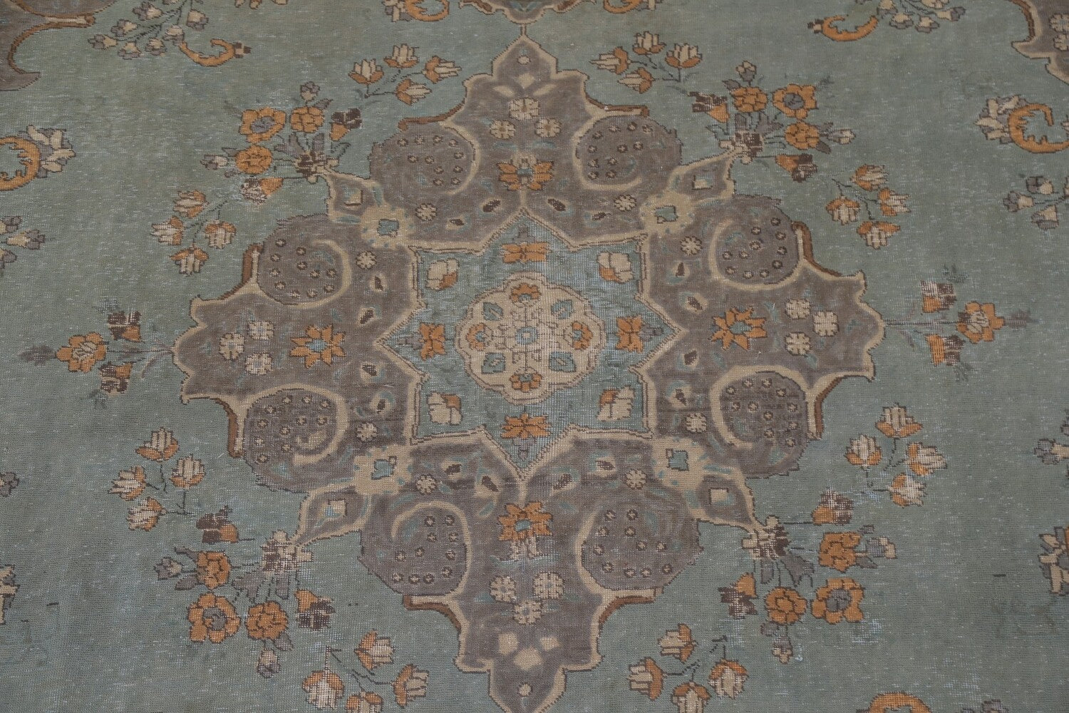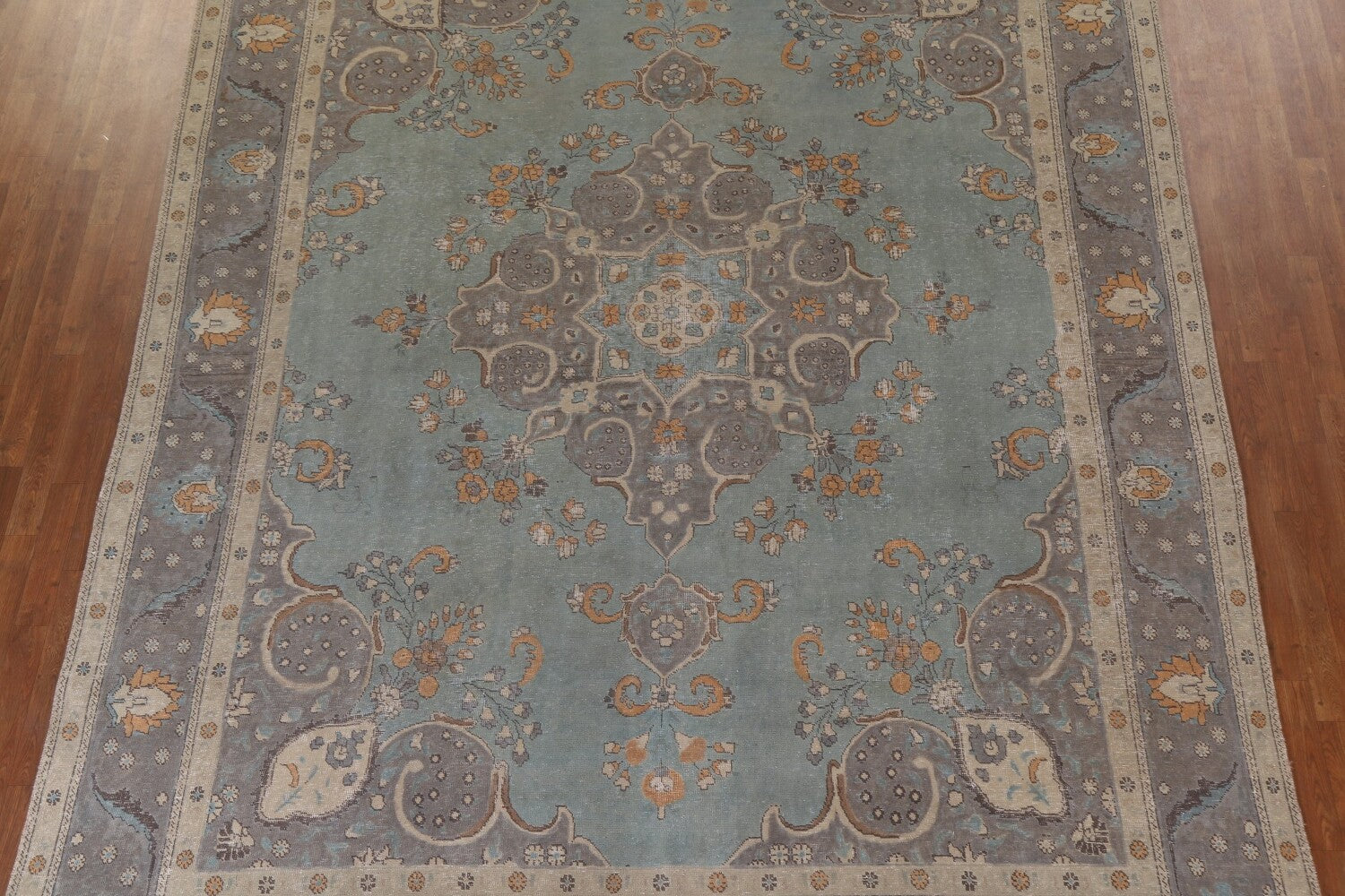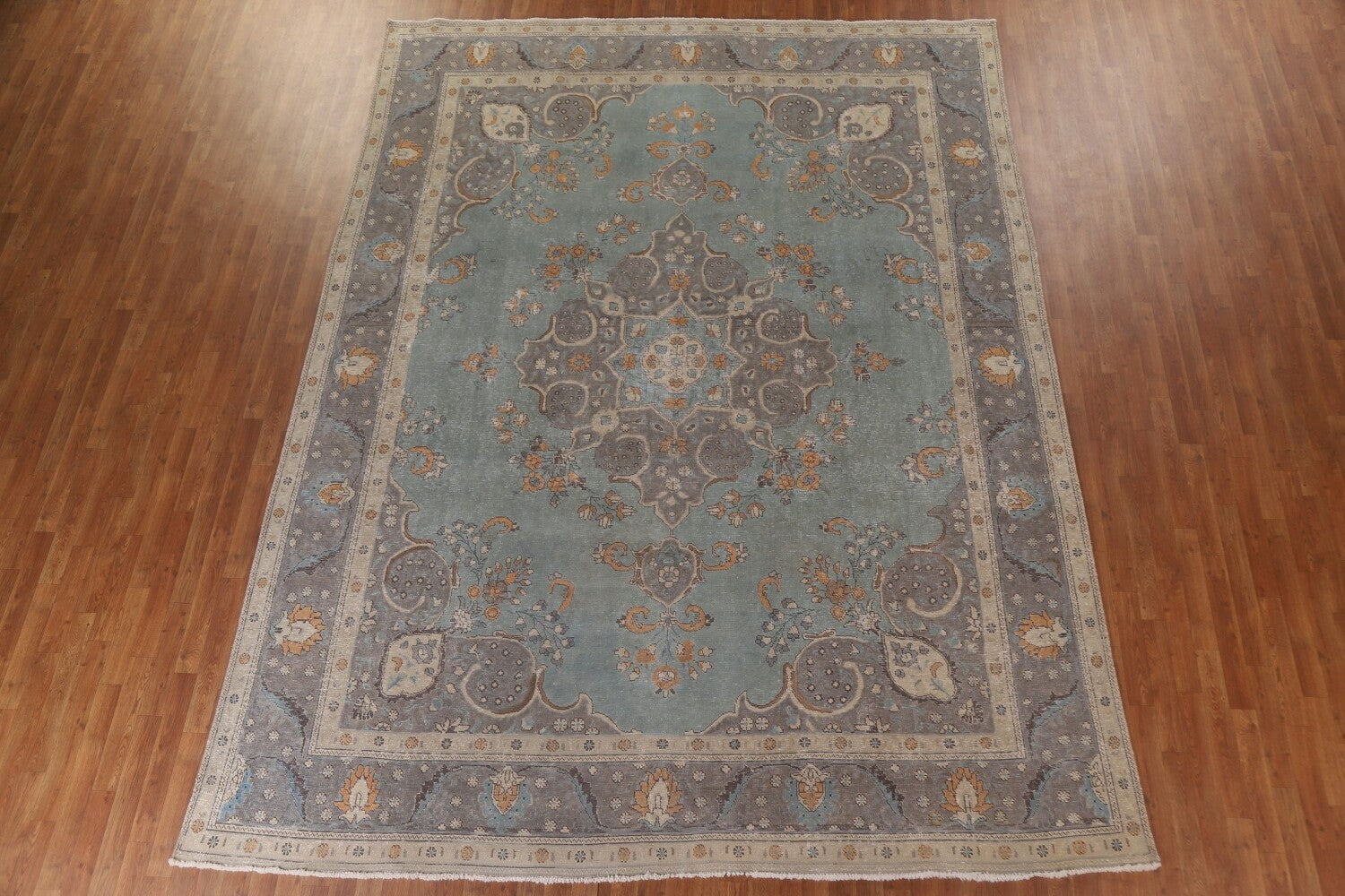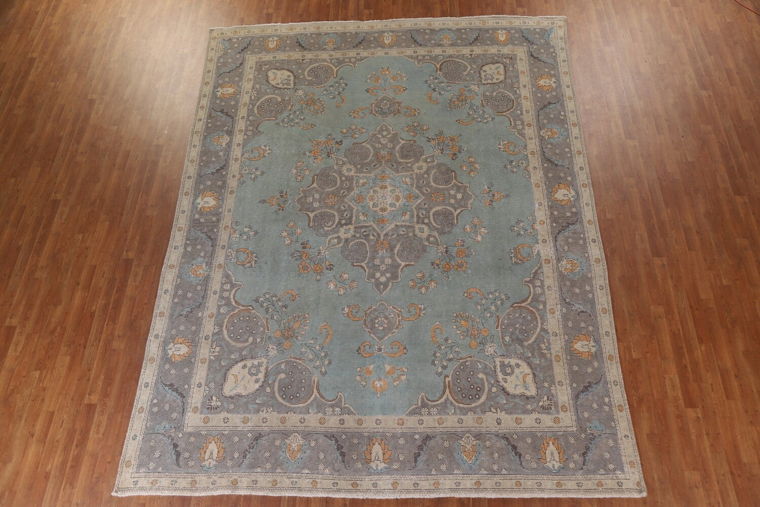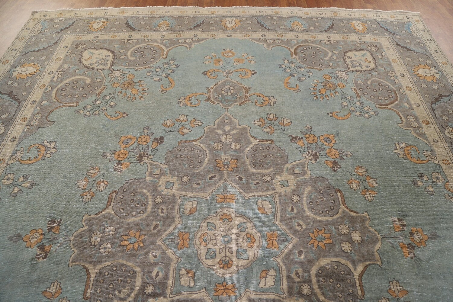 A Beautiful Genuine Persia ( Persia ) Tabriz rug is Hand Knotted by skillful weavers in Persia ( Persia ) with 100% Wool Material. This rug is in Very Good (Evenly Low Pile) condition. dimensions are 12' 7'' X 9' 7'' in foot and 384 X 292 in centimeter. the primary color is Navy Blue & Blues.