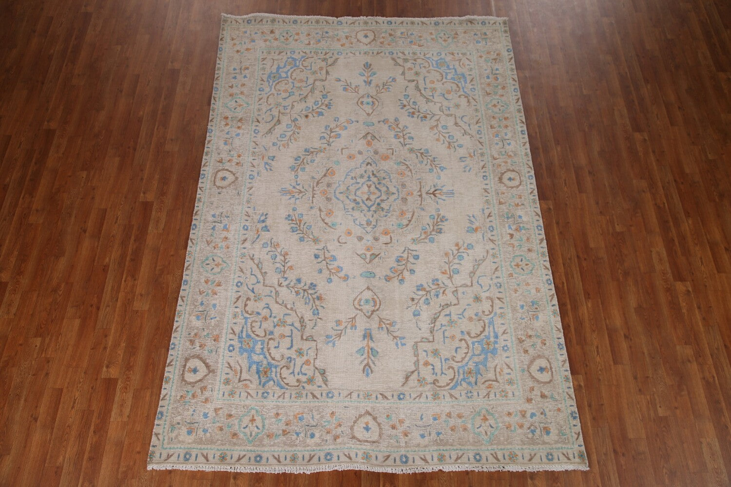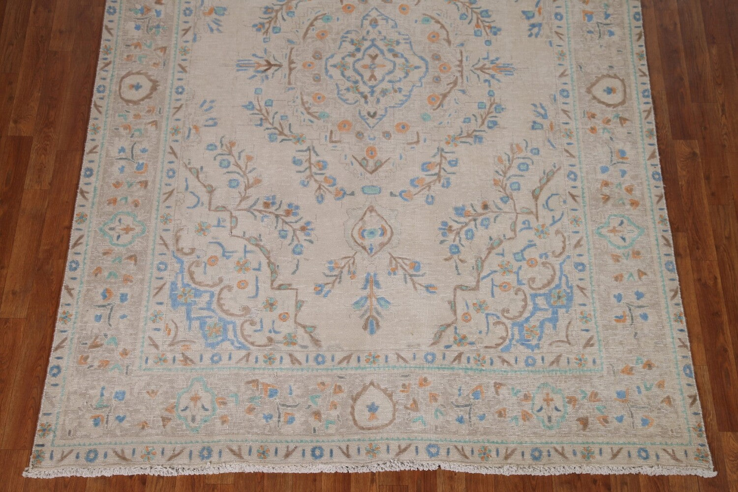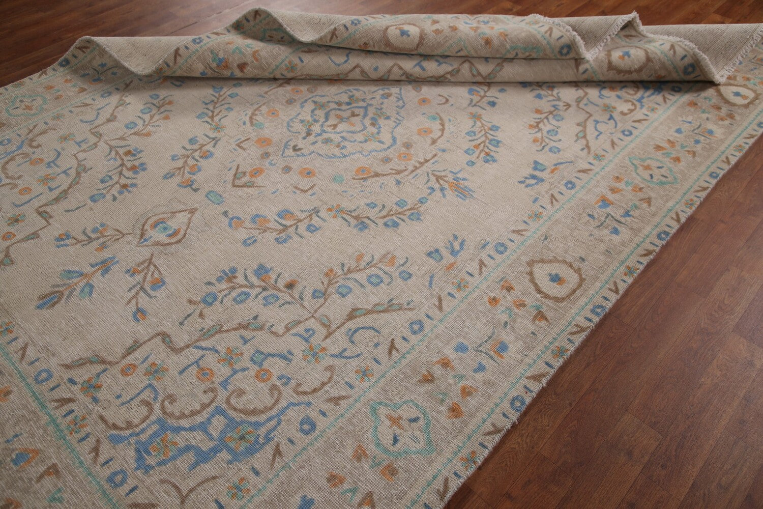 A Beautiful Genuine Persia ( Persia ) Tabriz rug is Hand Knotted by skillful weavers in Persia ( Persia ) with 100% Wool Material. This rug is in Very Good (Evenly Low Pile) condition. dimensions are 9' 5'' X 6' 4'' in foot and 287 X 193 in centimeter. the primary color is Beige & Ivories.