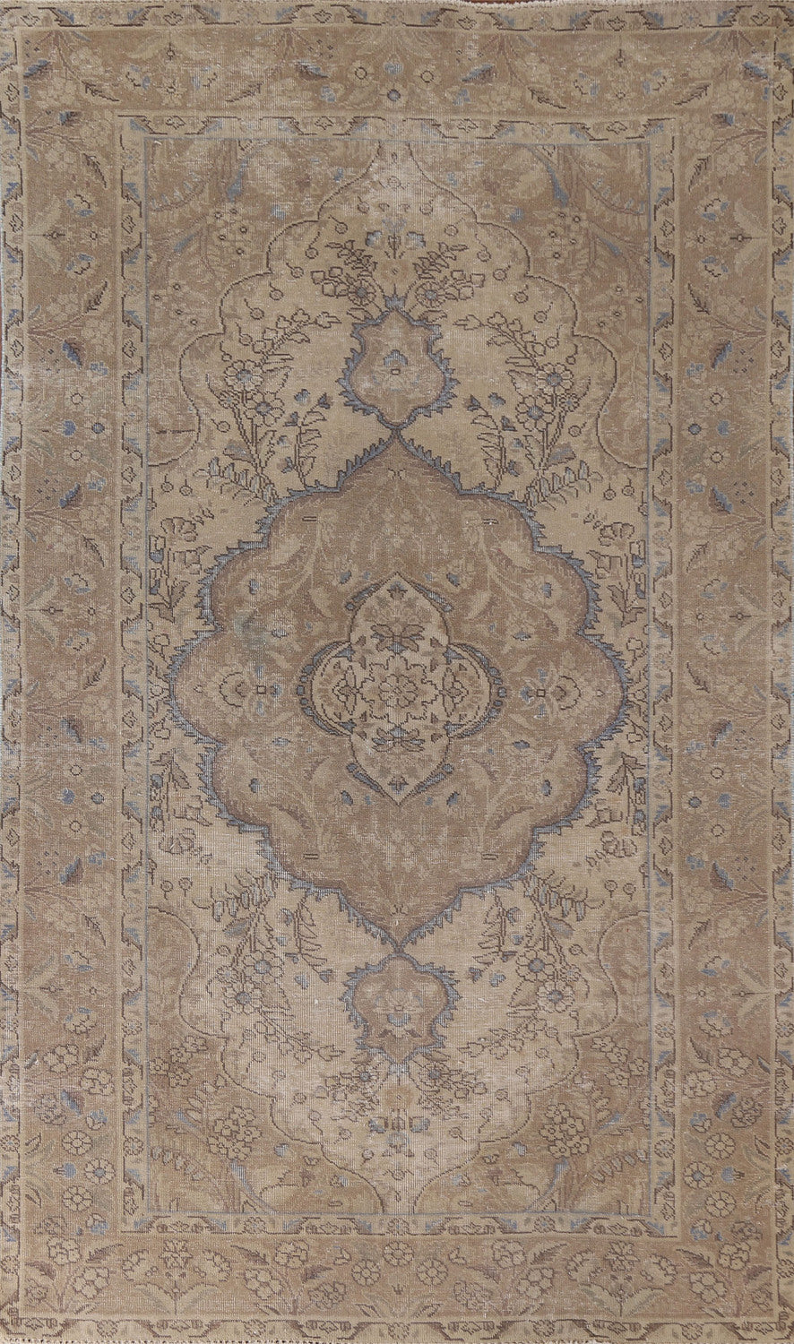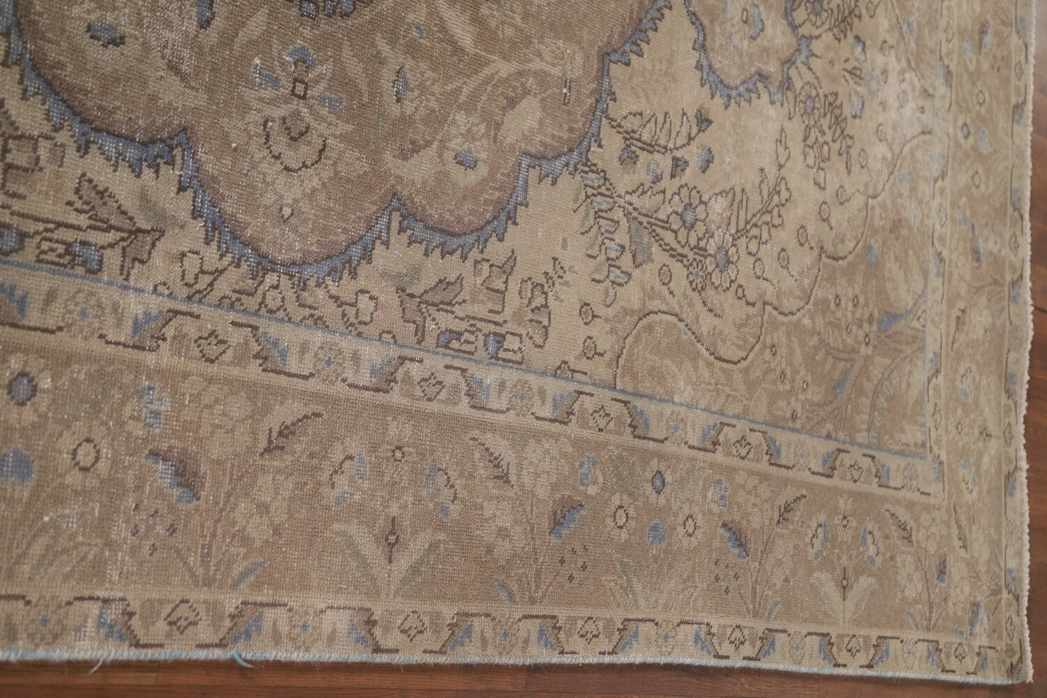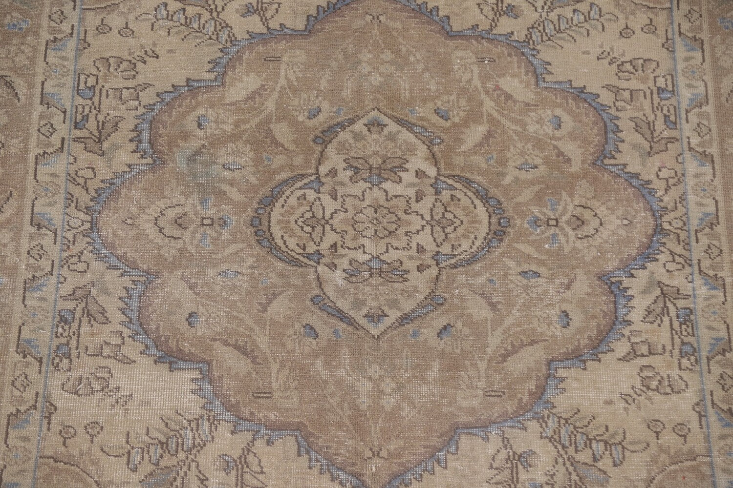 A Beautiful Genuine Persia ( Persia ) Tabriz rug is Hand Knotted by skillful weavers in Persia ( Persia ) with 100% Wool Material. This rug is in Very Good (Evenly Low Pile-Repair) condition. dimensions are 9' 5'' X 6' 1'' in foot and 287 X 185 in centimeter. the primary color is Beige & Ivories.