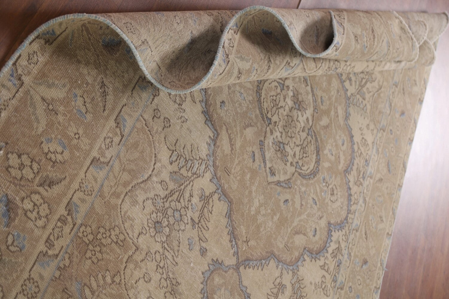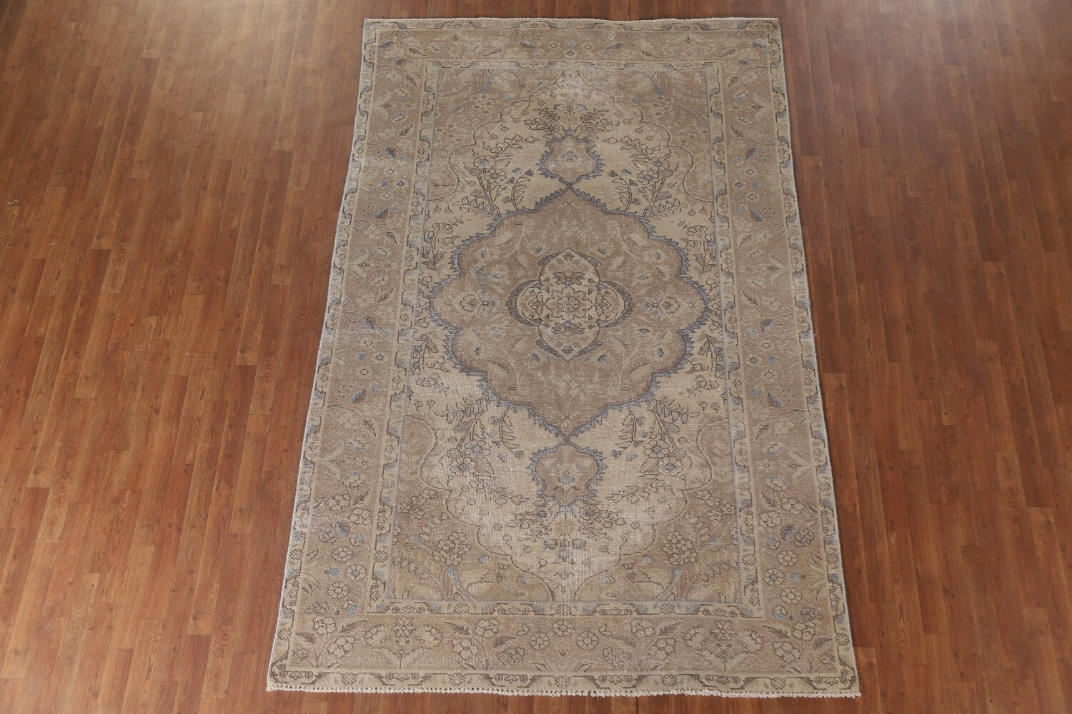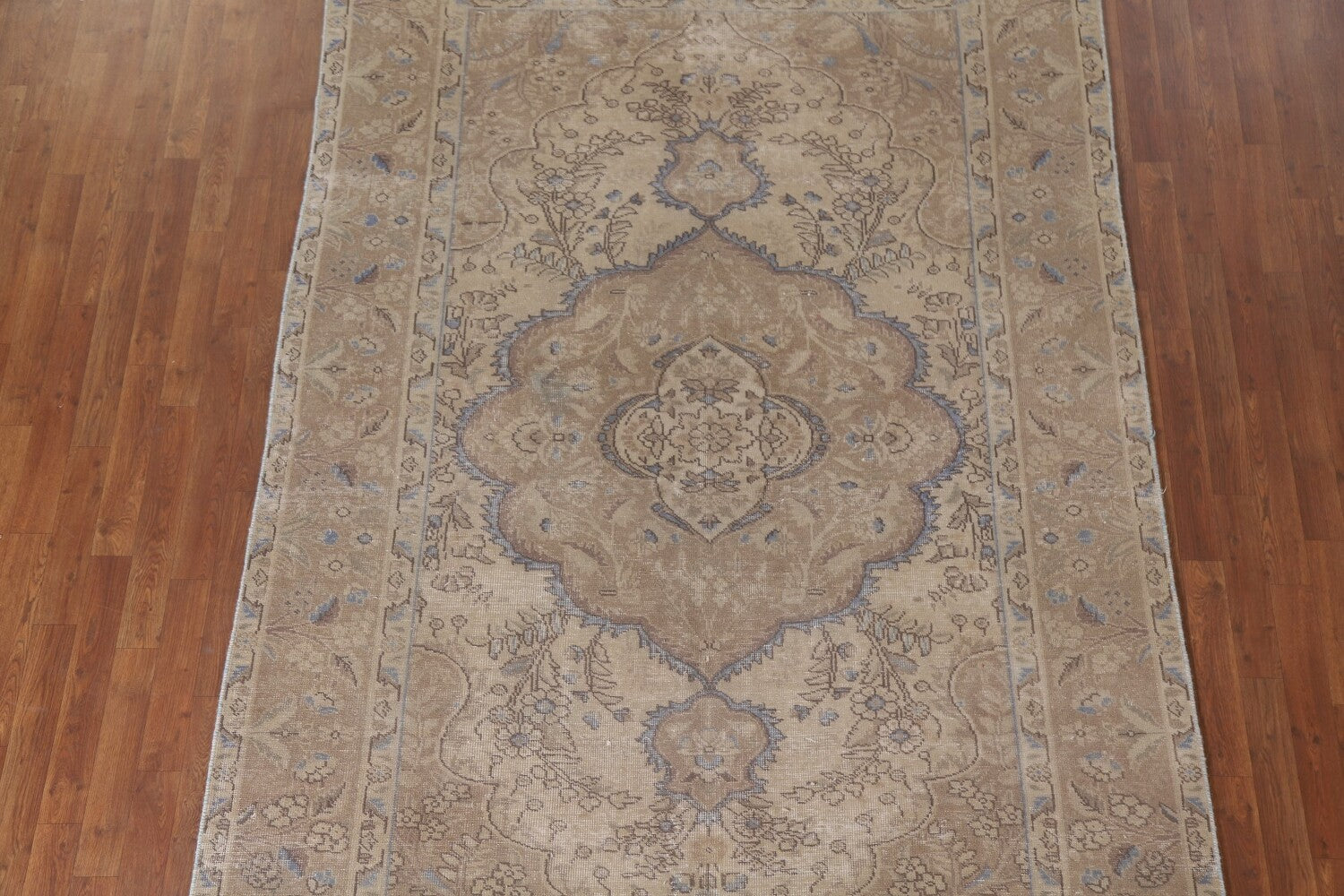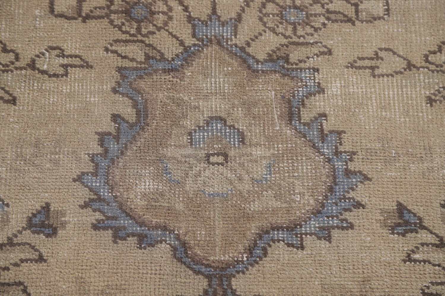 A Beautiful Genuine Persia ( Persia ) Tabriz rug is Hand Knotted by skillful weavers in Persia ( Persia ) with 100% Wool Material. This rug is in Very Good (Evenly Low Pile-Repair) condition. dimensions are 9' 5'' X 6' 1'' in foot and 287 X 185 in centimeter. the primary color is Beige & Ivories.