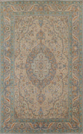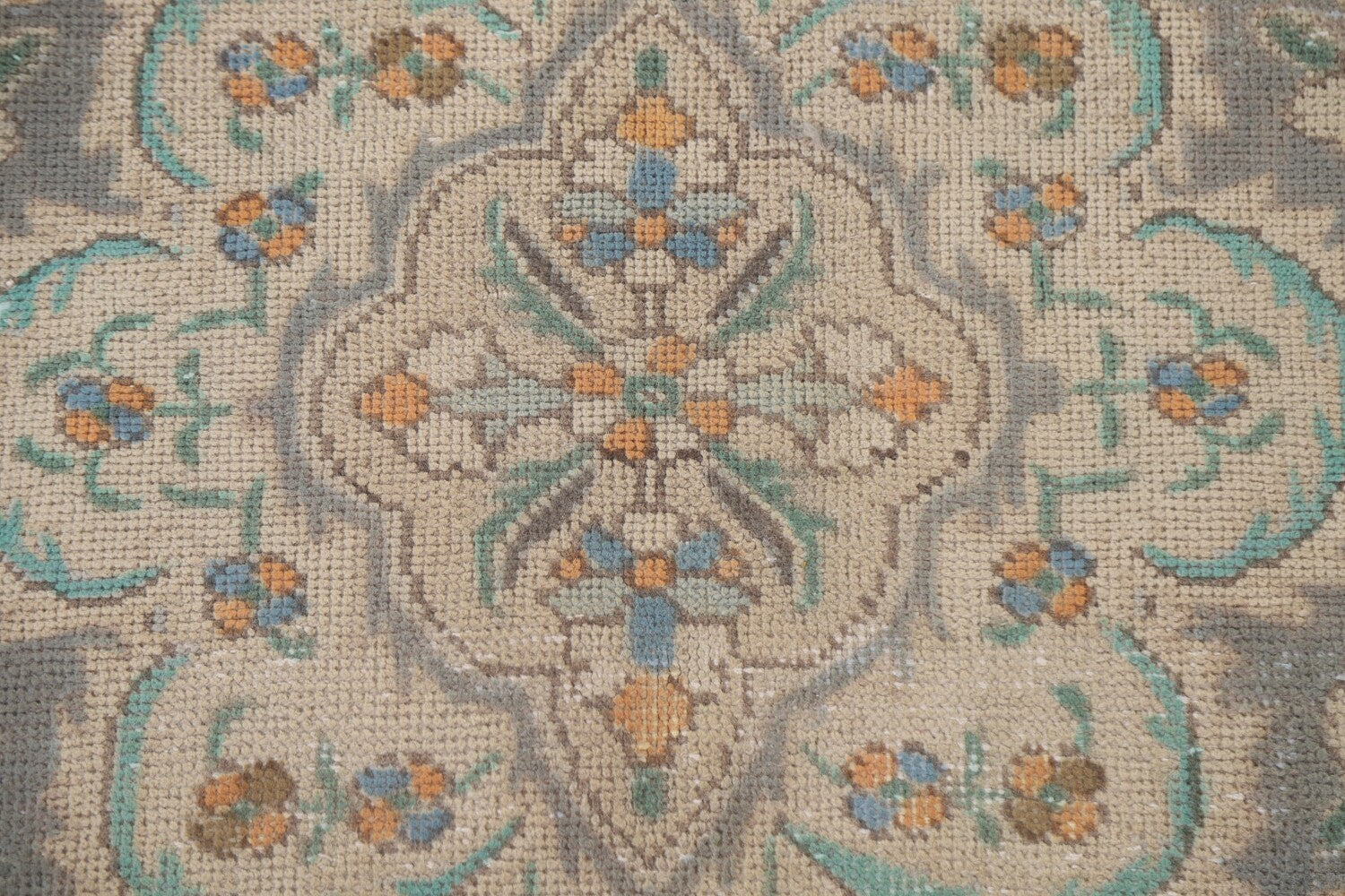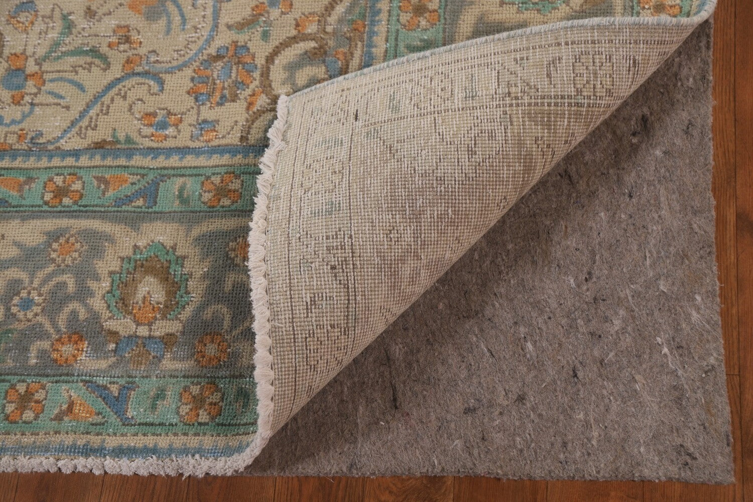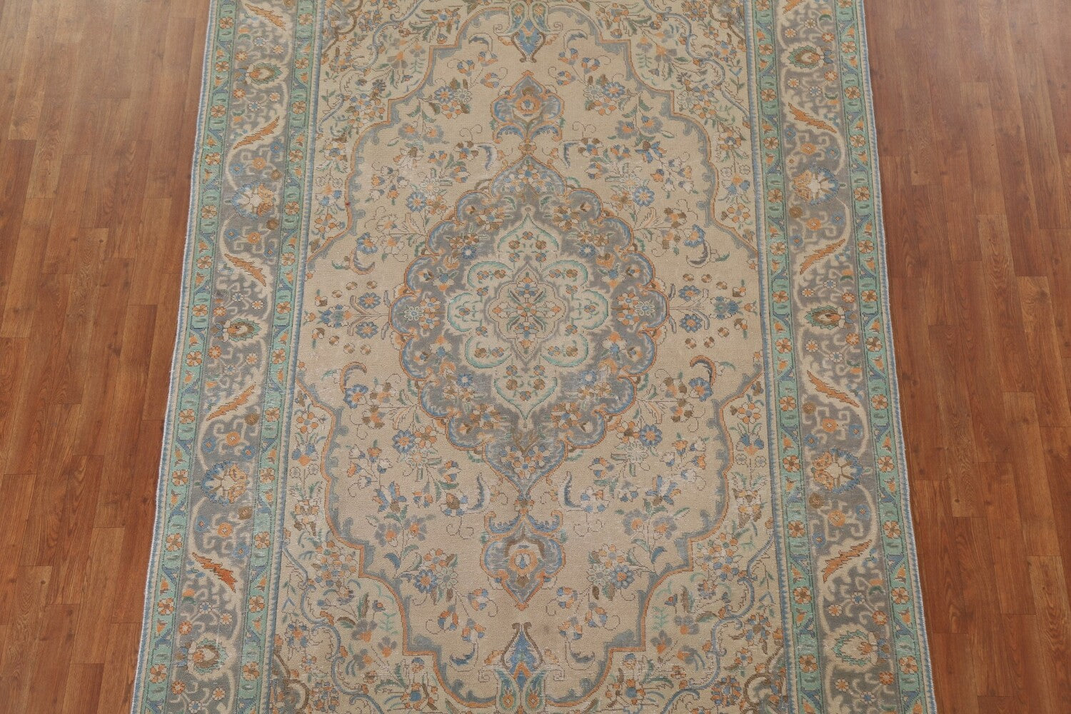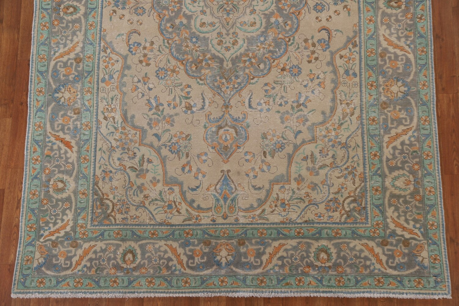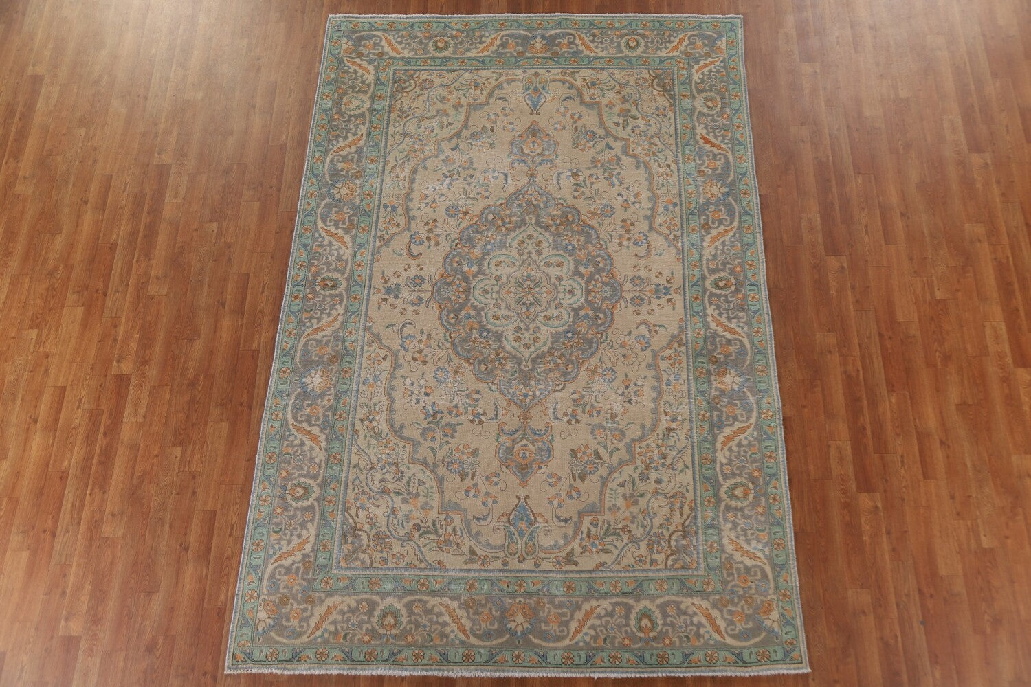 A Beautiful Genuine Persia ( Persia ) Tabriz rug is Hand Knotted by skillful weavers in Persia ( Persia ) with 100% Wool Material. This rug is in Very Good (Evenly Low Pile-Repair) condition. dimensions are 9' 8'' X 6' 7'' in foot and 295 X 201 in centimeter. the primary color is Beige & Ivories.