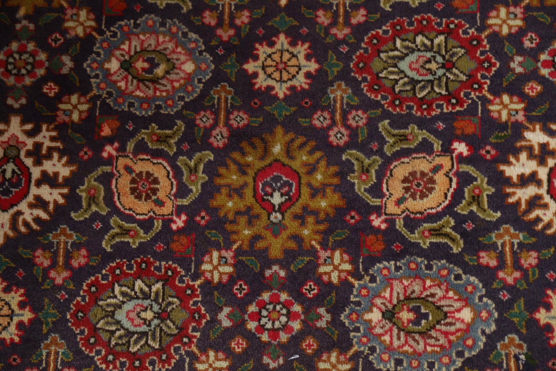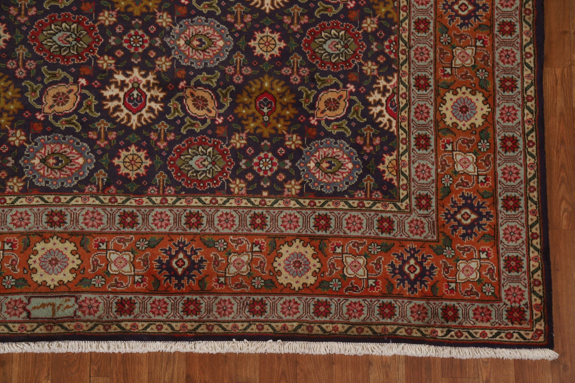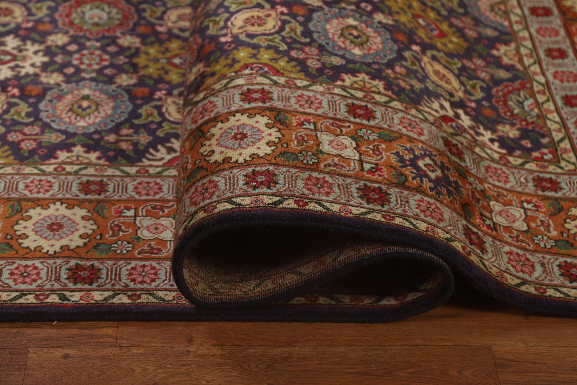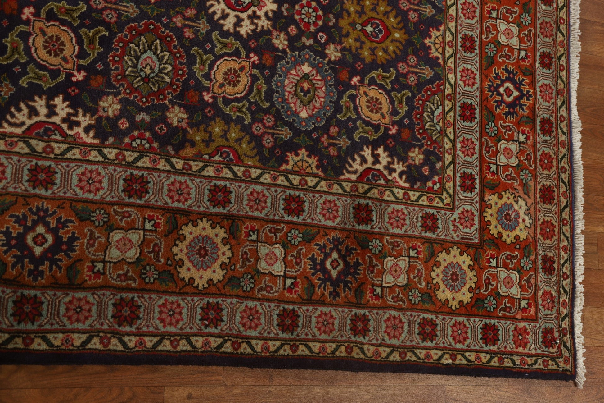 A Beautiful Genuine Persia ( Persia ) Tabriz rug is Hand Knotted by skillful weavers in Persia ( Persia ) with 100% Wool Material. This rug is in Excellent condition. dimensions are 11' 5'' X 7' 7'' in foot and 348 X 231 in centimeter. the primary color is Navy Blue & Blues.