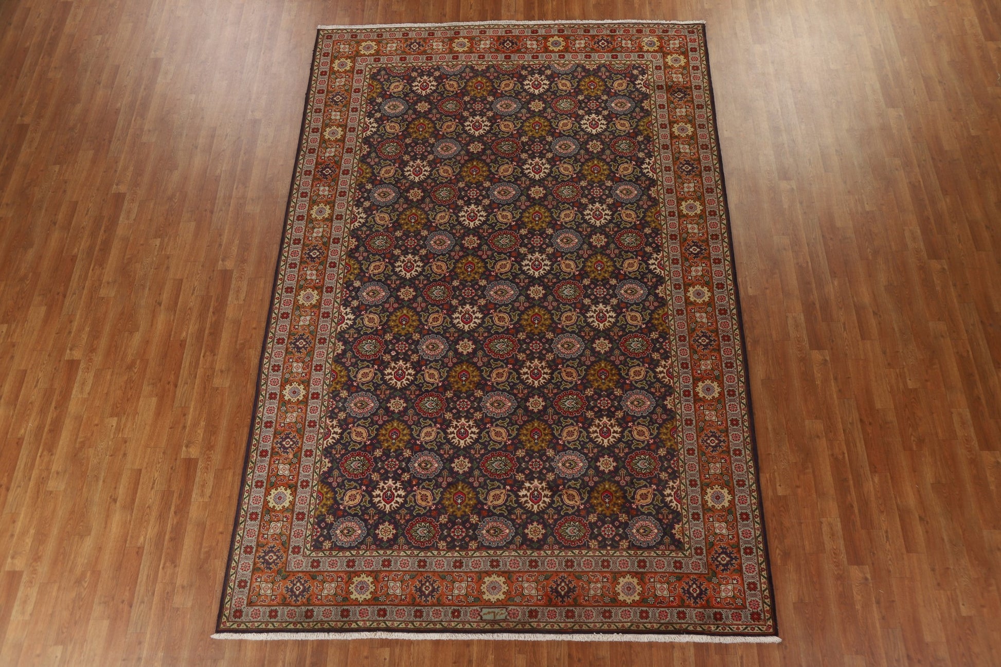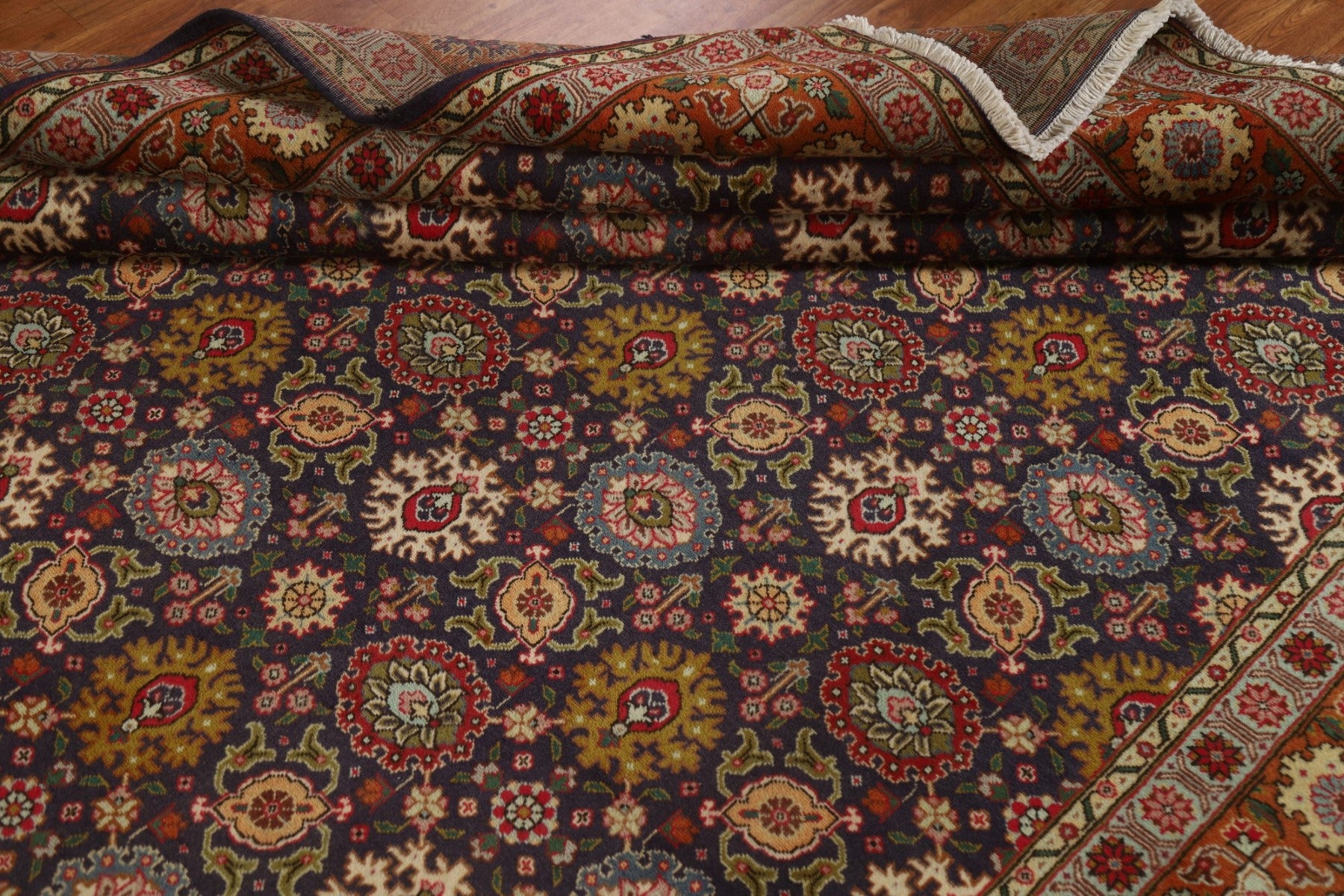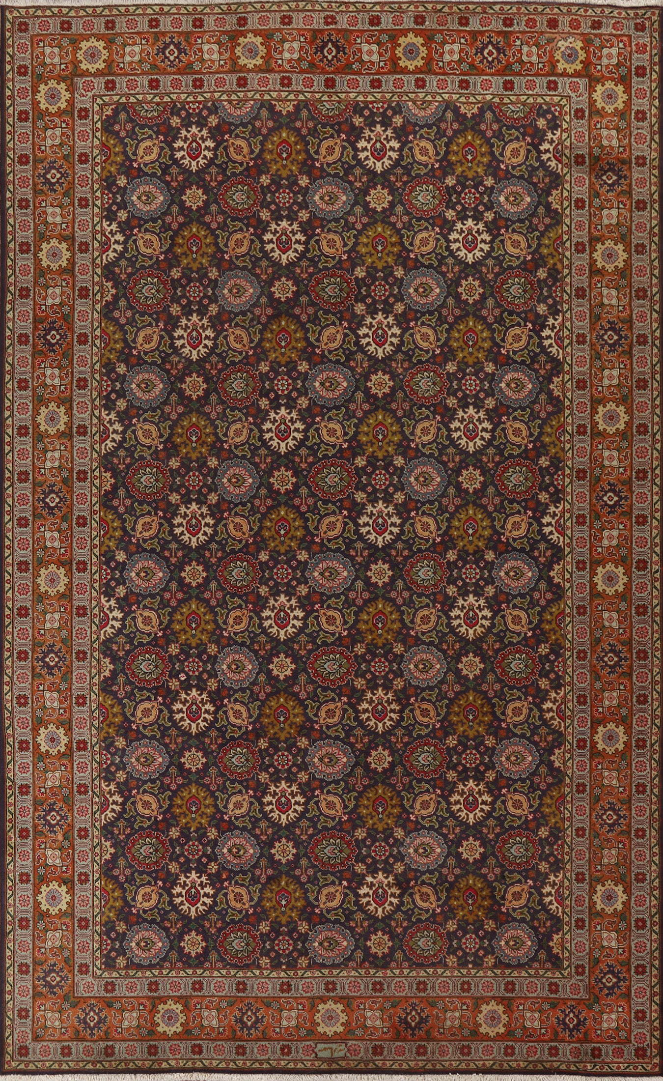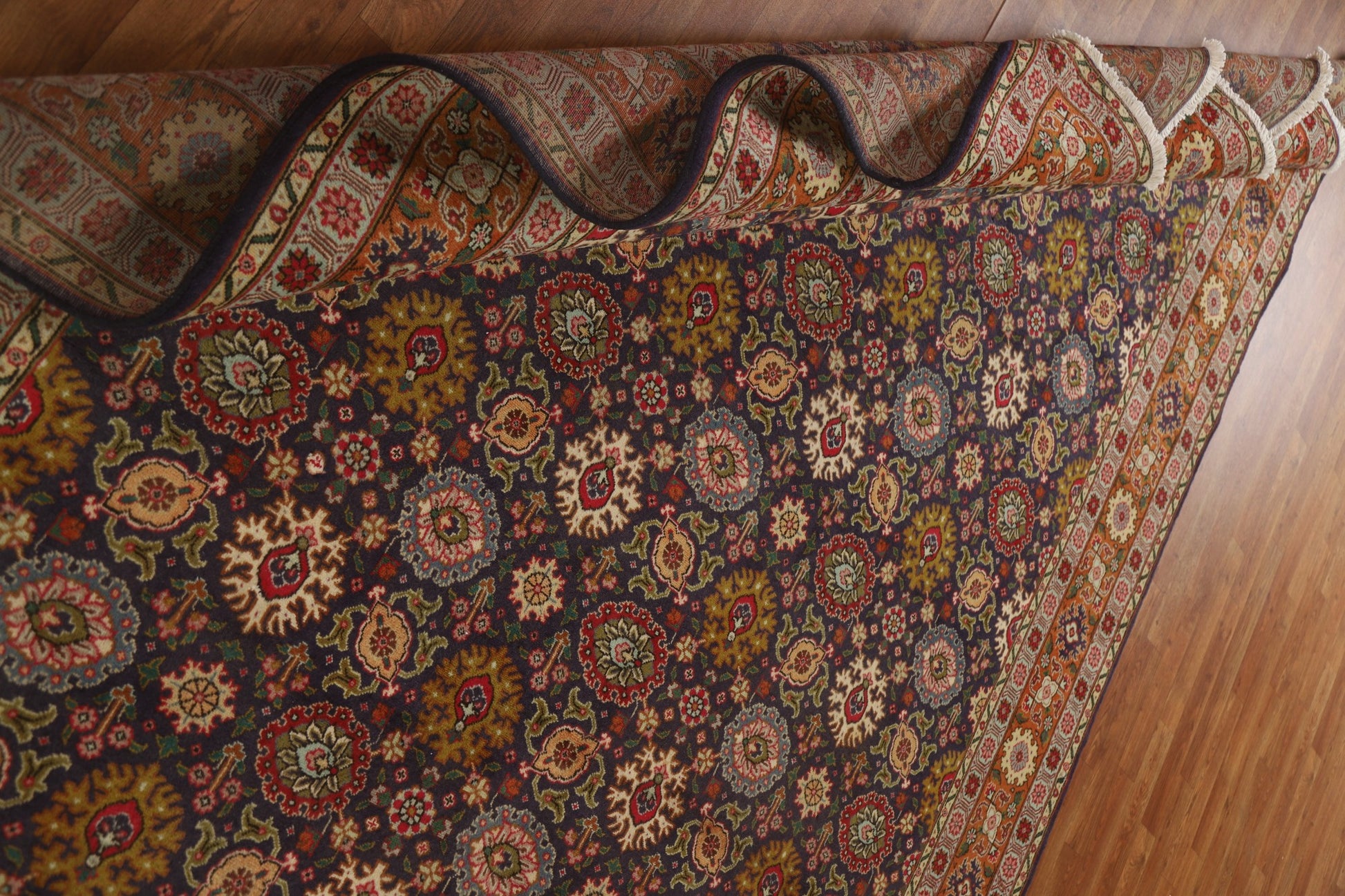 A Beautiful Genuine Persia ( Persia ) Tabriz rug is Hand Knotted by skillful weavers in Persia ( Persia ) with 100% Wool Material. This rug is in Excellent condition. dimensions are 11' 5'' X 7' 7'' in foot and 348 X 231 in centimeter. the primary color is Navy Blue & Blues.