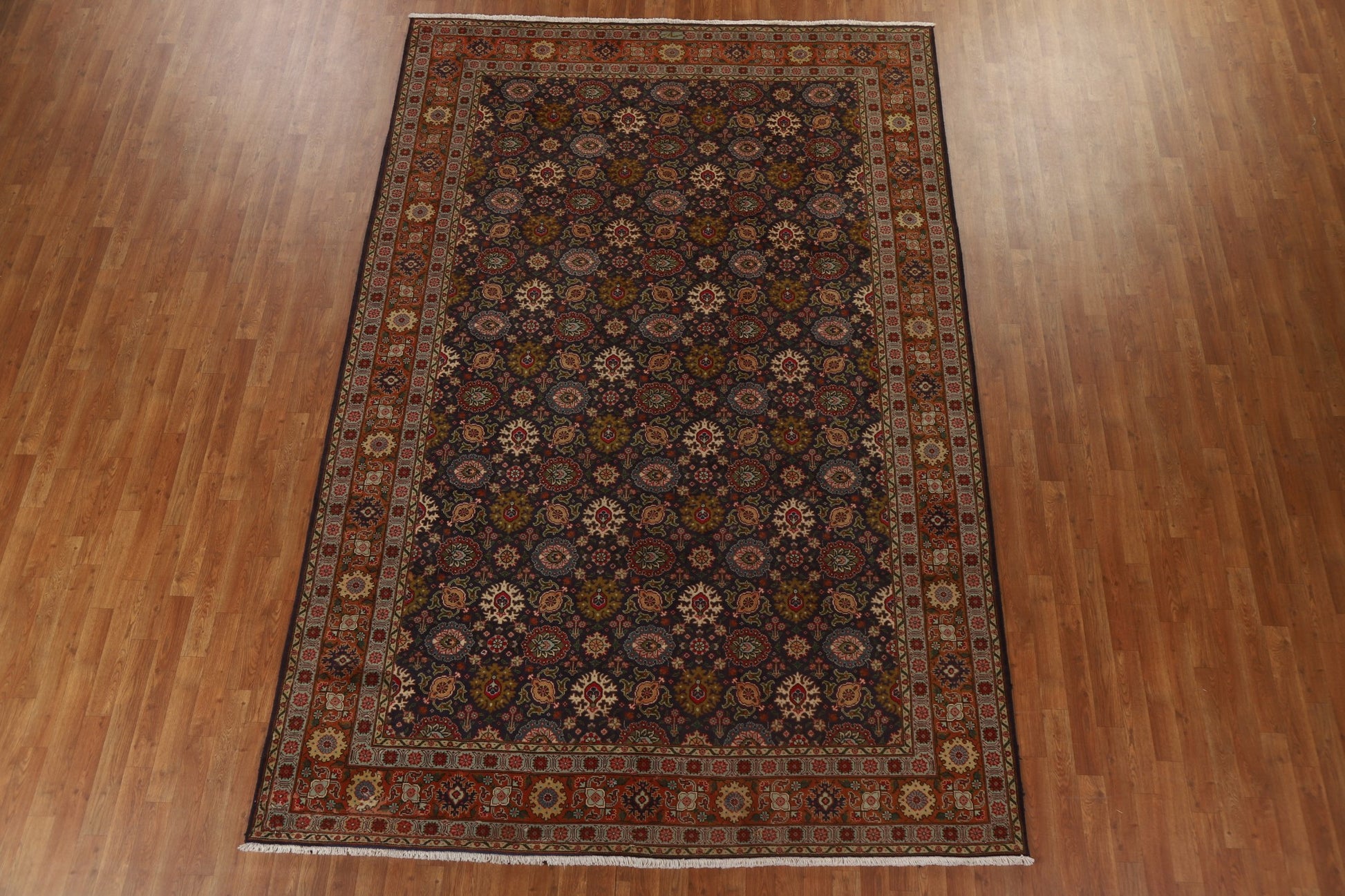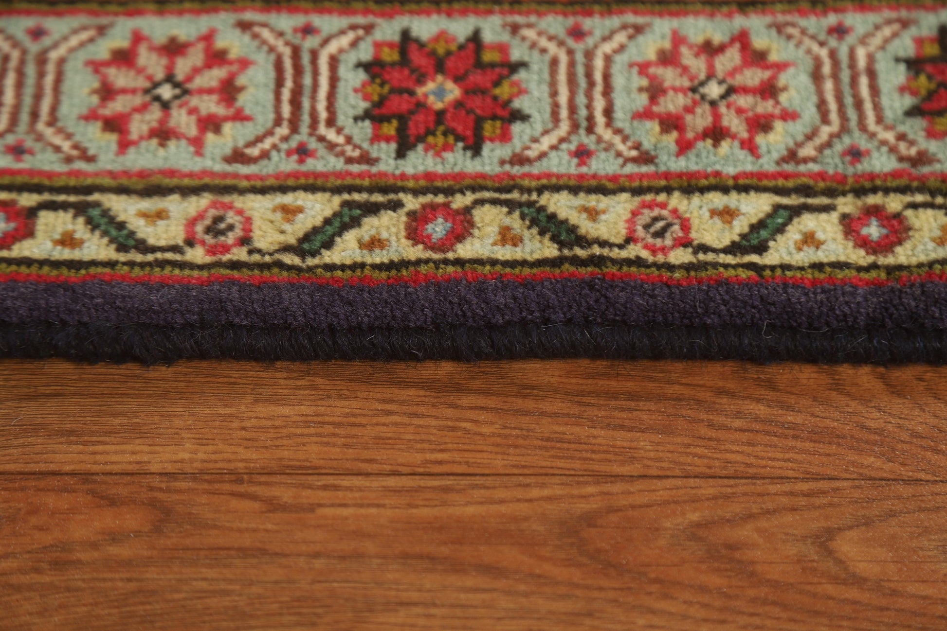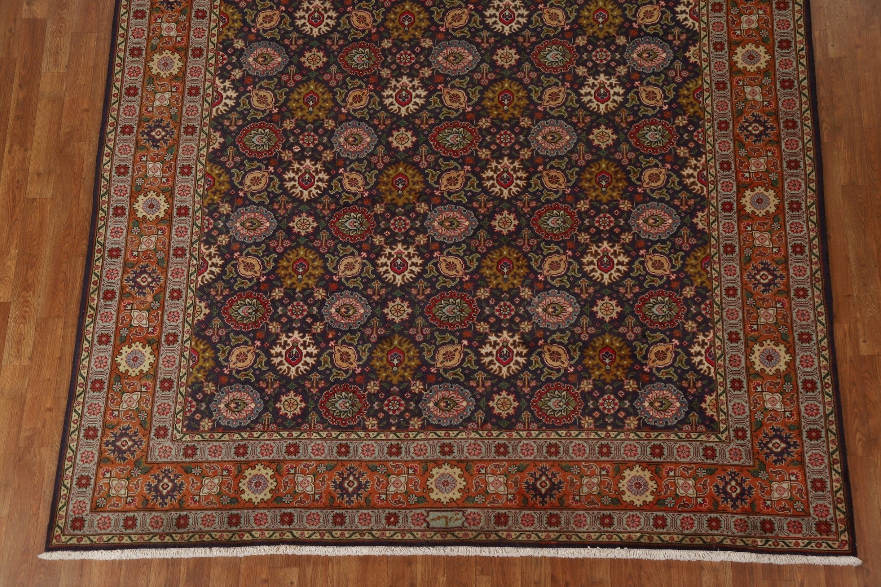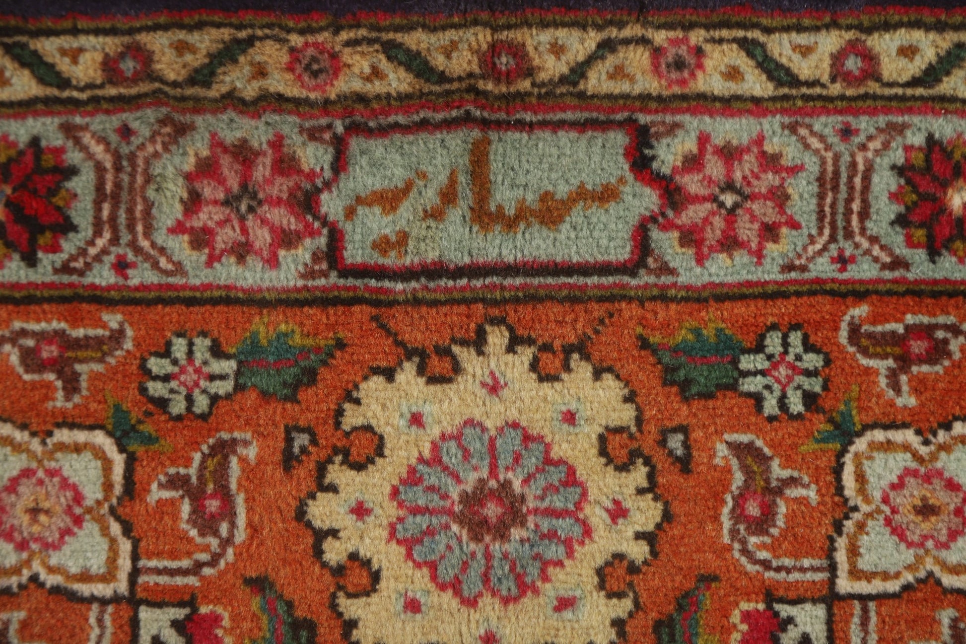 A Beautiful Genuine Persia ( Persia ) Tabriz rug is Hand Knotted by skillful weavers in Persia ( Persia ) with 100% Wool Material. This rug is in Excellent condition. dimensions are 11' 5'' X 7' 7'' in foot and 348 X 231 in centimeter. the primary color is Navy Blue & Blues.