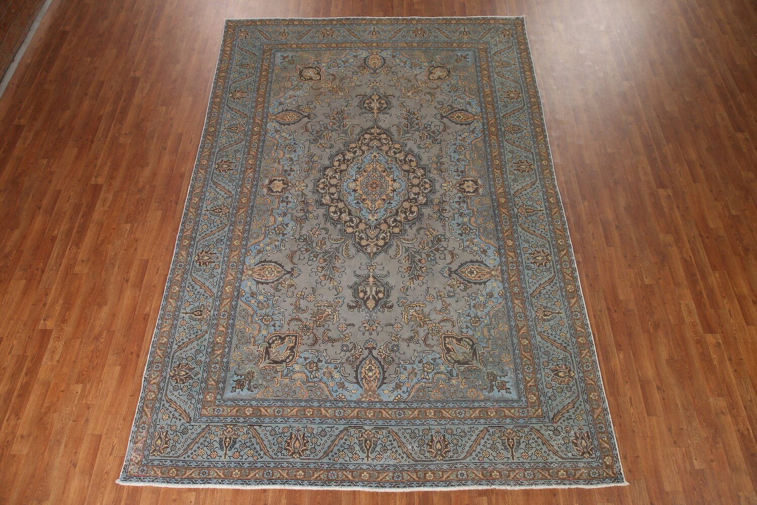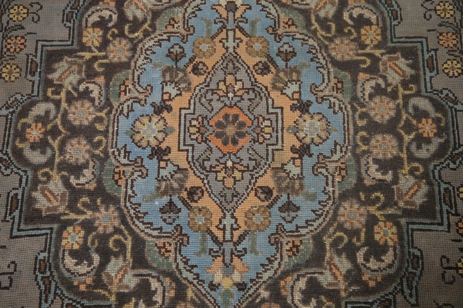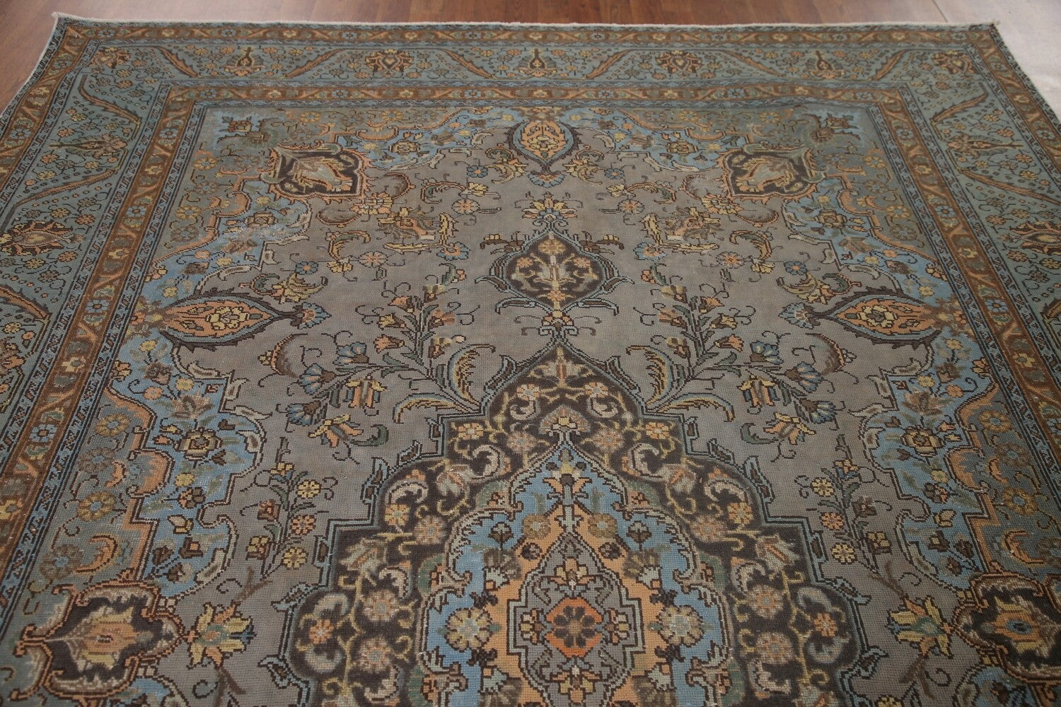 A Beautiful Genuine Persia ( Persia ) Tabriz rug is Hand Knotted by skillful weavers in Persia ( Persia ) with 100% Wool Material. This rug is in Very Good (Evenly Low Pile-Repair) condition. dimensions are 11' 5'' X 7' 8'' in foot and 348 X 234 in centimeter. the primary color is Greys & Charcoal.