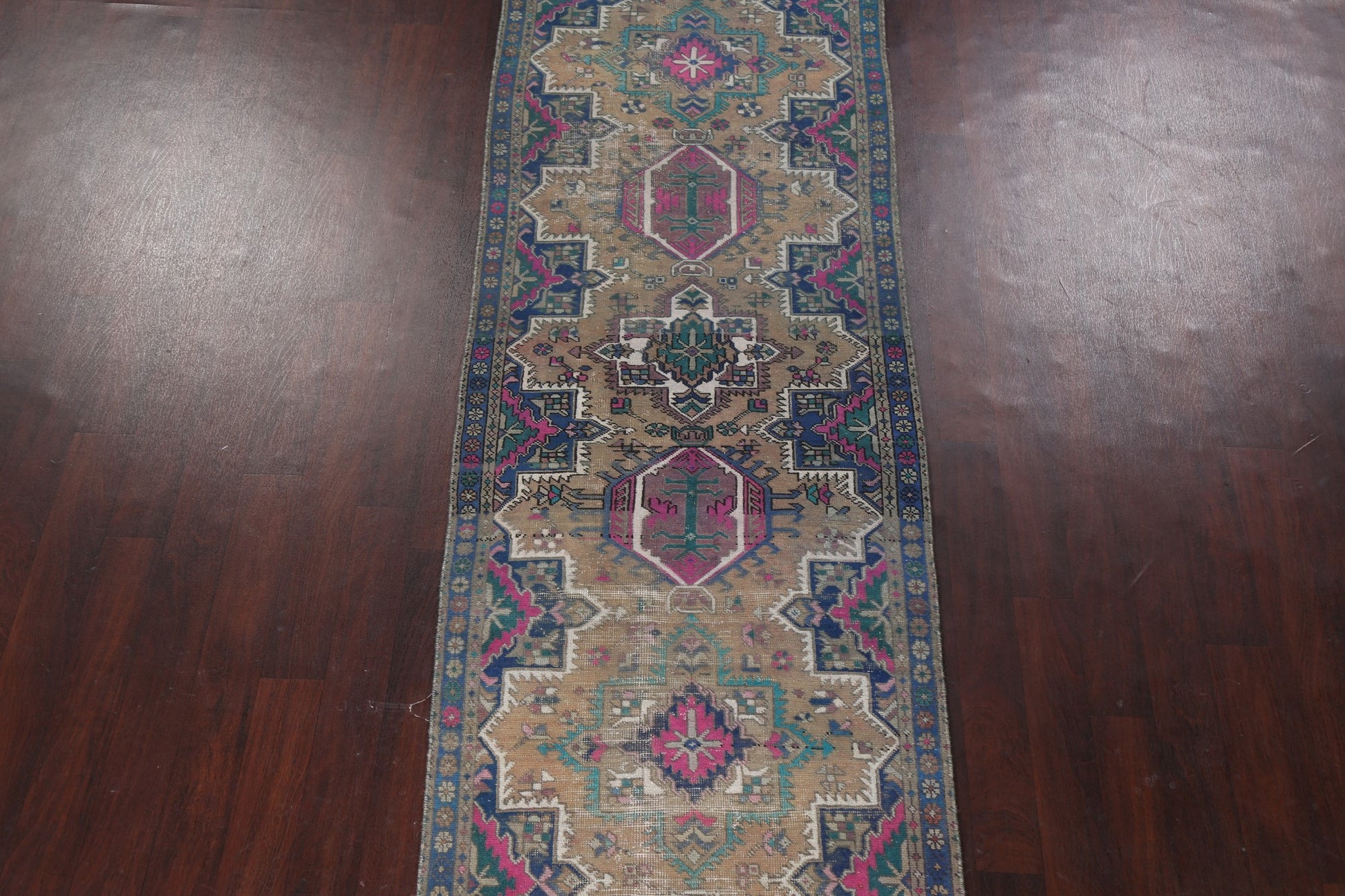 A Beautiful Genuine Persia ( Persia ) Tabriz rug is Hand Knotted by skillful weavers in Persia ( Persia ) with 100% Wool Material. This rug is in Very Good (Evenly Low Pile-Abrash) condition. dimensions are 12' 8'' X 3' 4'' in foot and 386 X 102 in centimeter. the primary color is Multi-Colored.