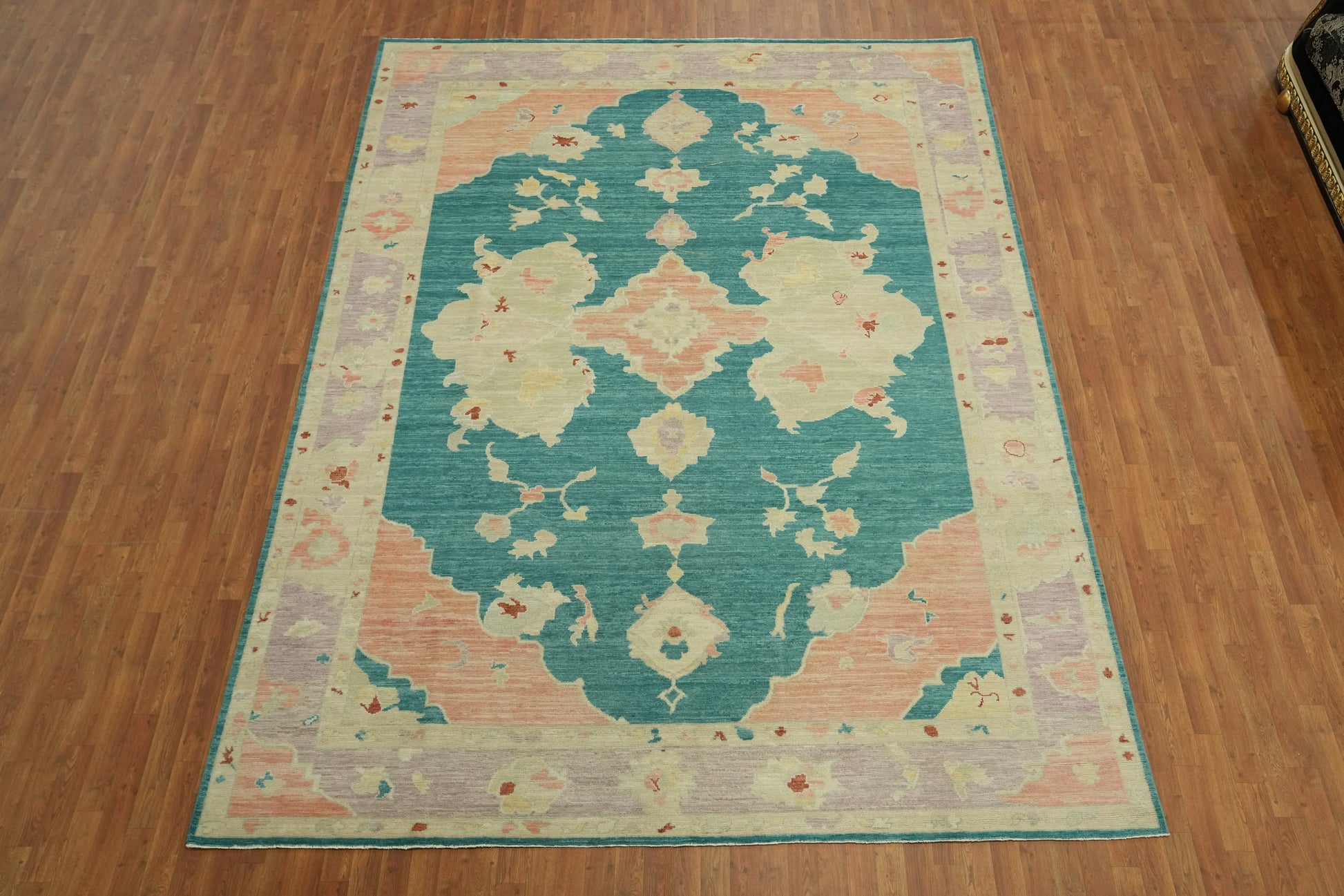 Handmade Teal Oushak Vegetable Dye Area Rug 9x12