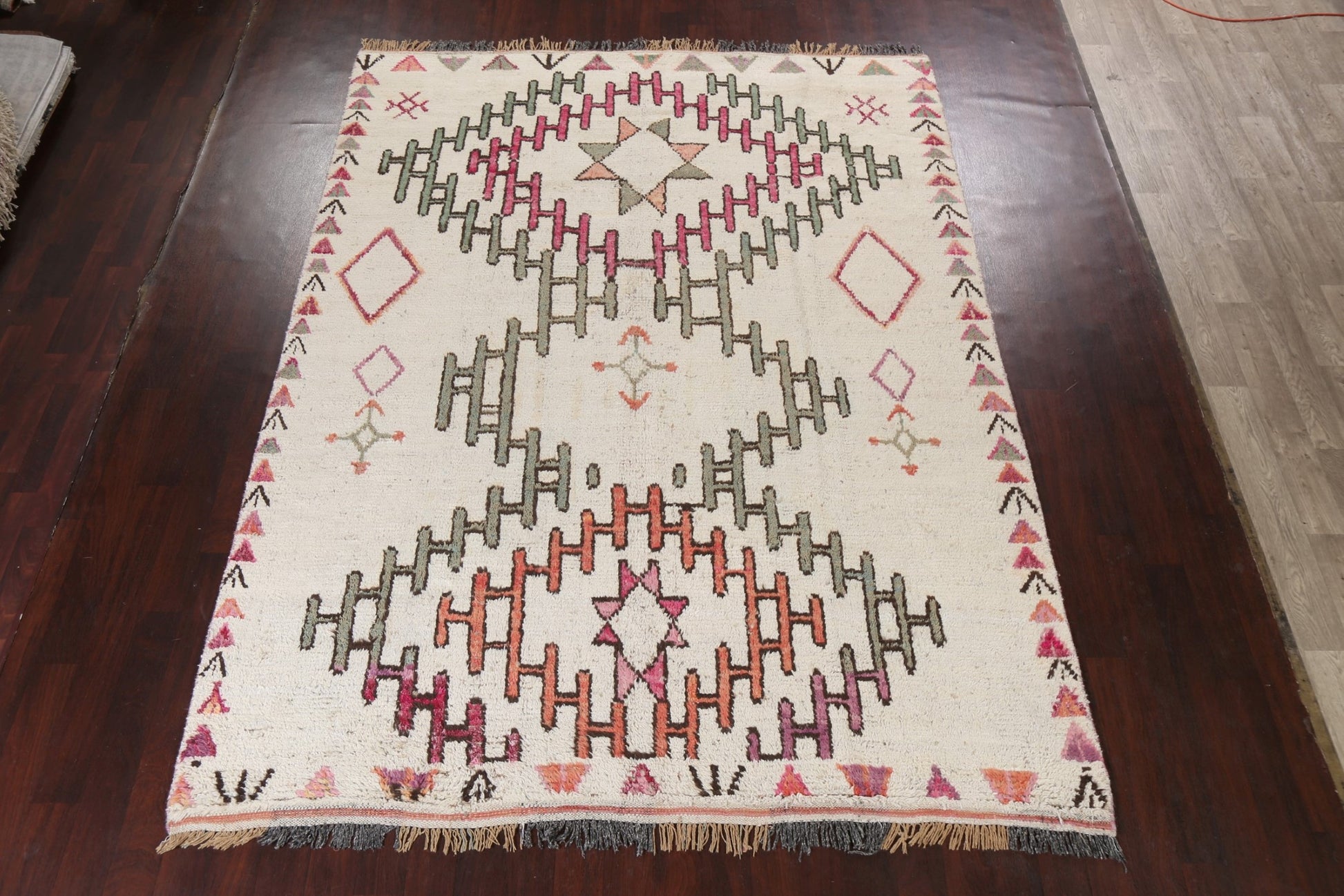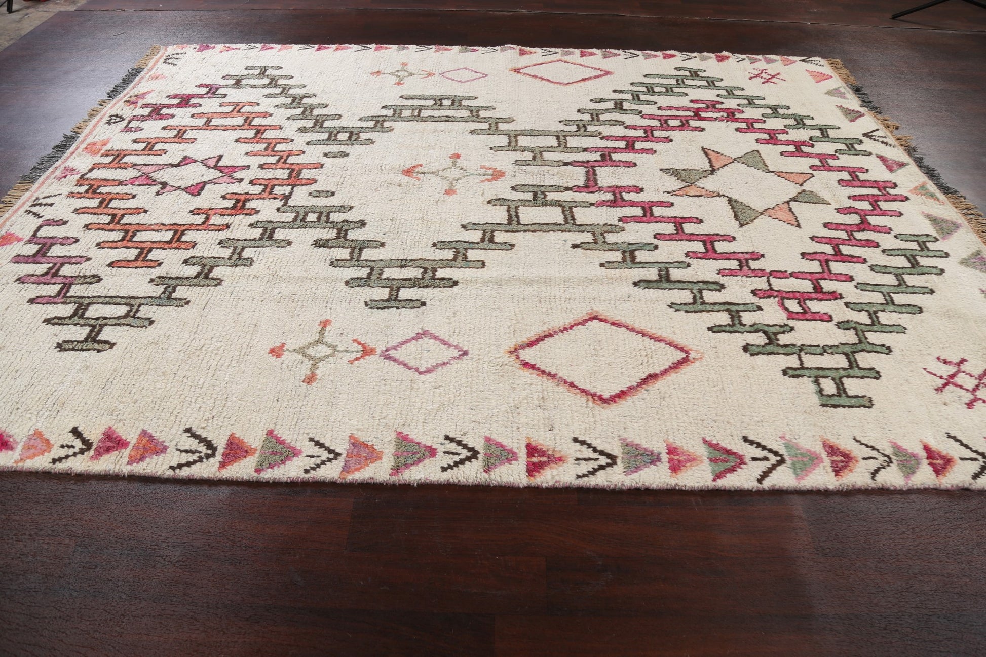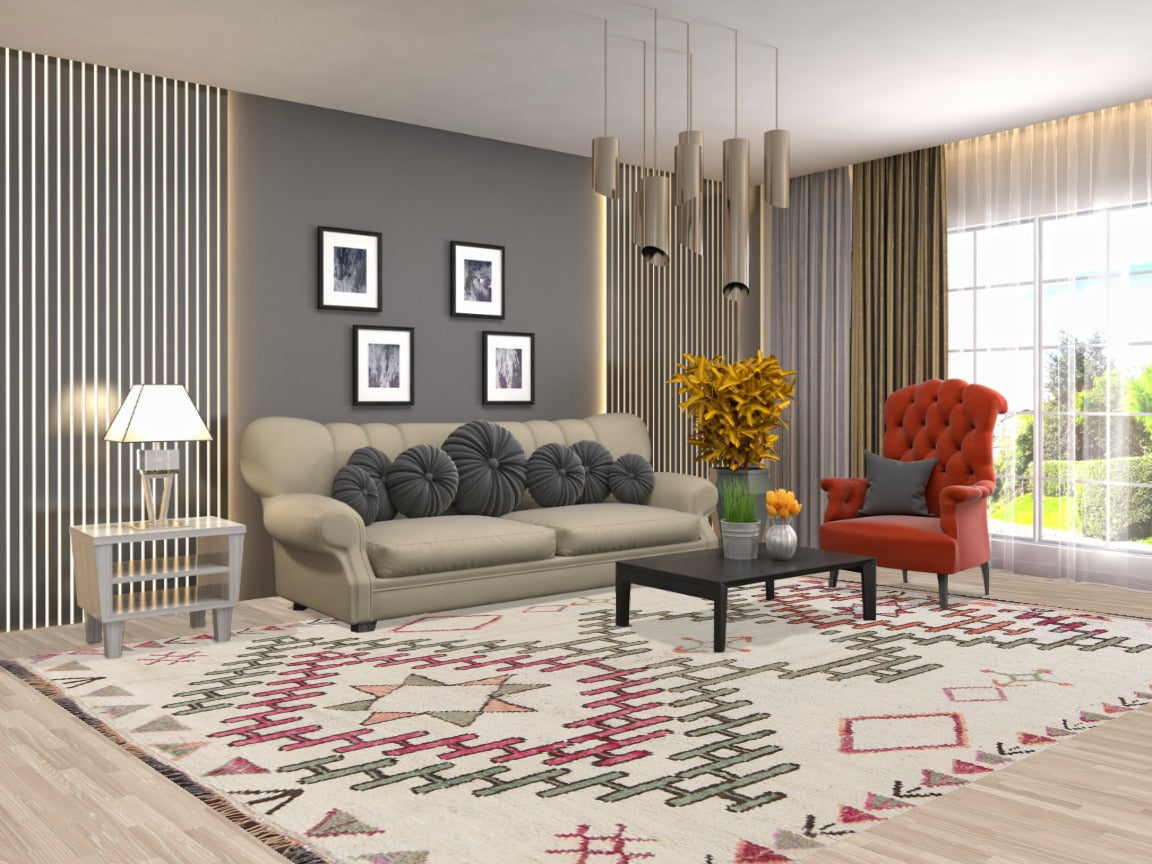 A Beautiful Genuine Morocco Moroccan rug is Hand Knotted by skillful weavers in Morocco with 100% Wool Material. This rug is in New, First Quality condition. dimensions are 11' 1'' X 8' 2'' in foot and 338 X 249 in centimeter. the primary color is Beige & Ivories.