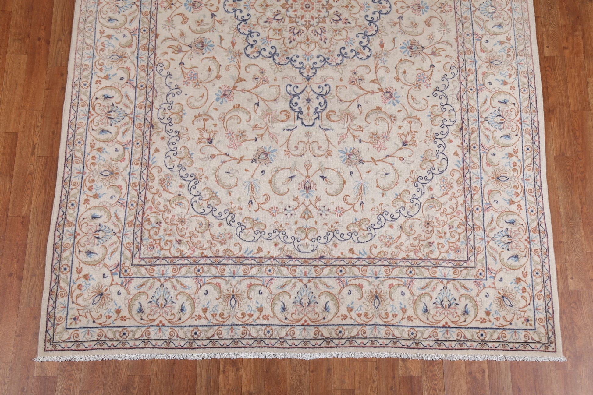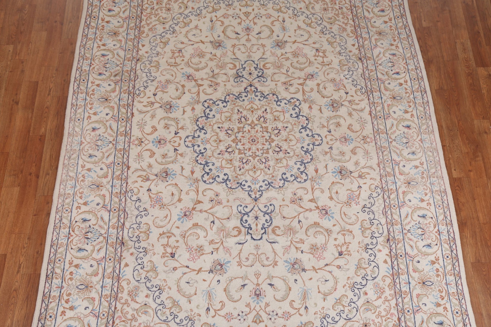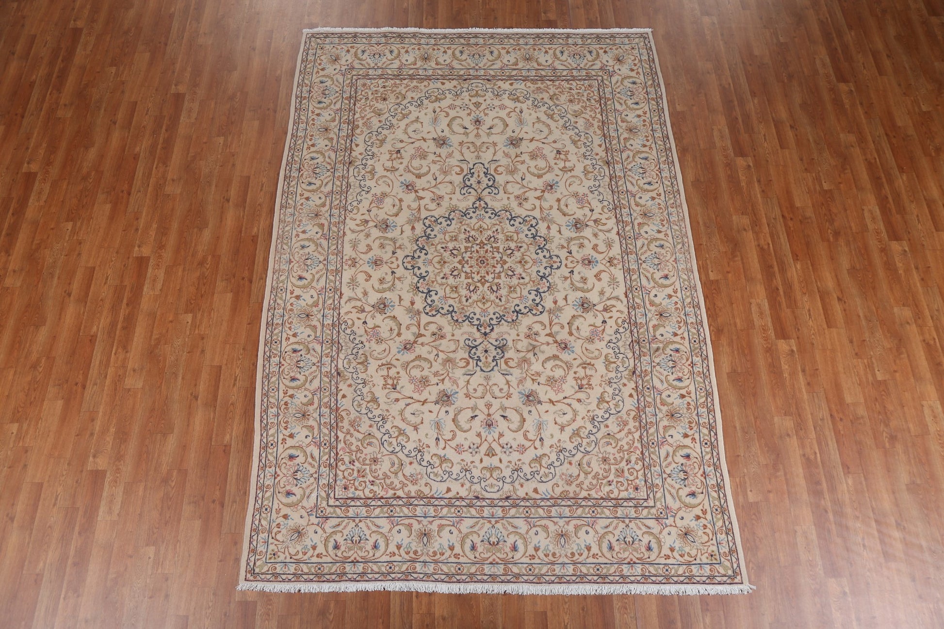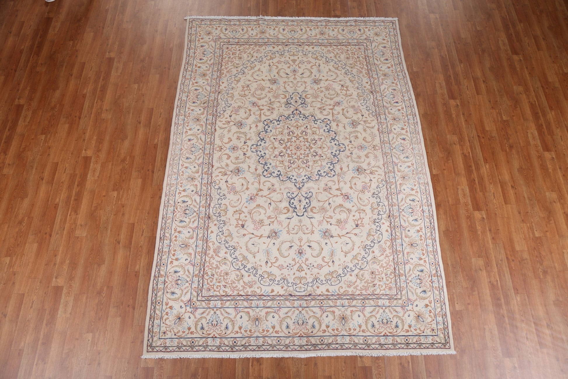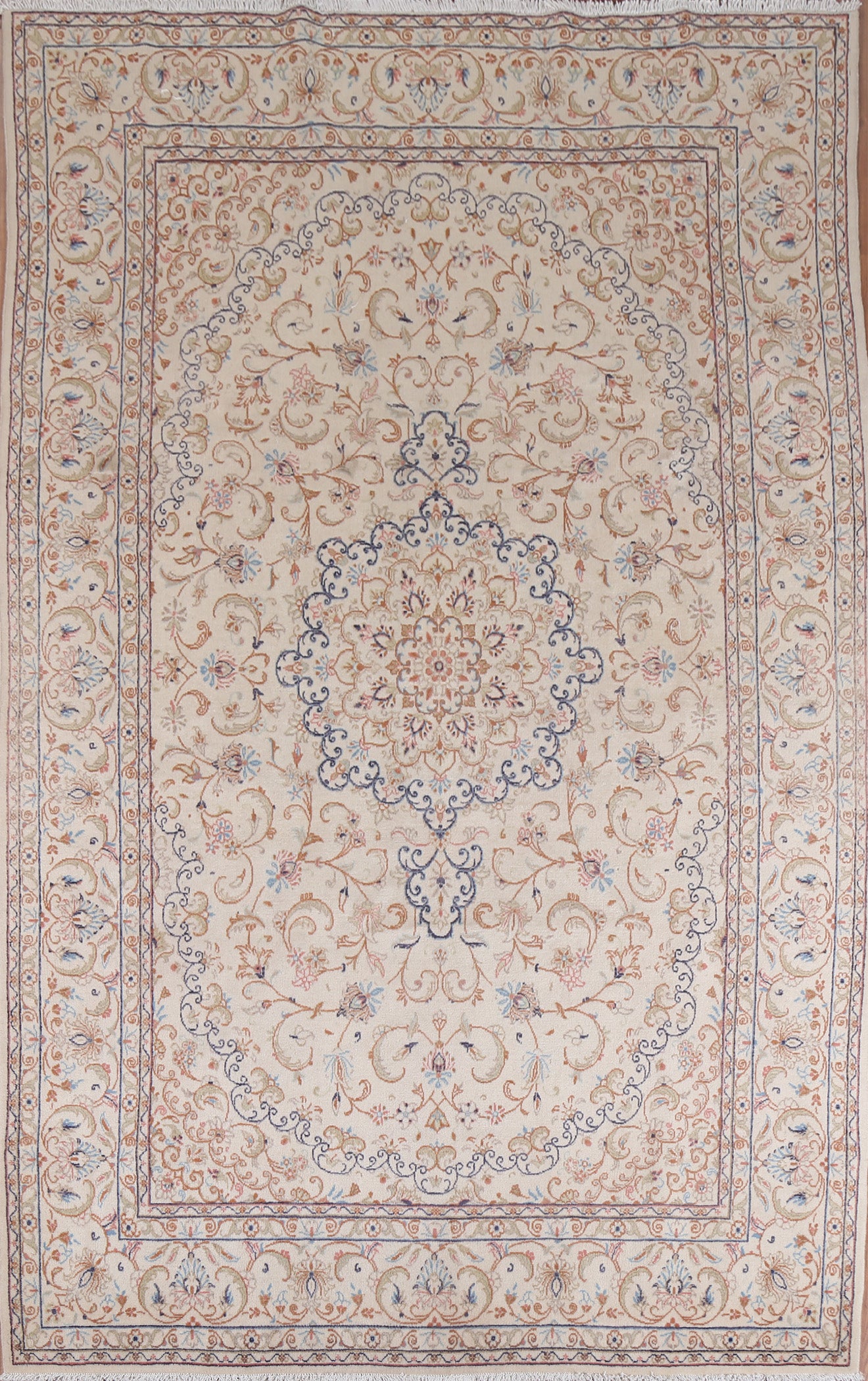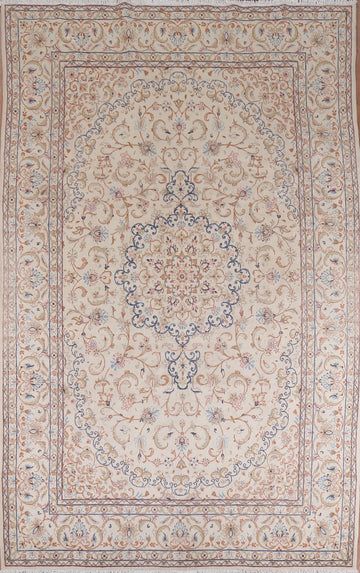 A Beautiful Genuine Persia ( Persia ) Kashmar rug is Hand Knotted by skillful weavers in Persia ( Persia ) with 100% Wool Material. This rug is in Very Good condition. dimensions are 9' 4'' X 6' 3'' in foot and 284 X 191 in centimeter. the primary color is Beige & Ivories.