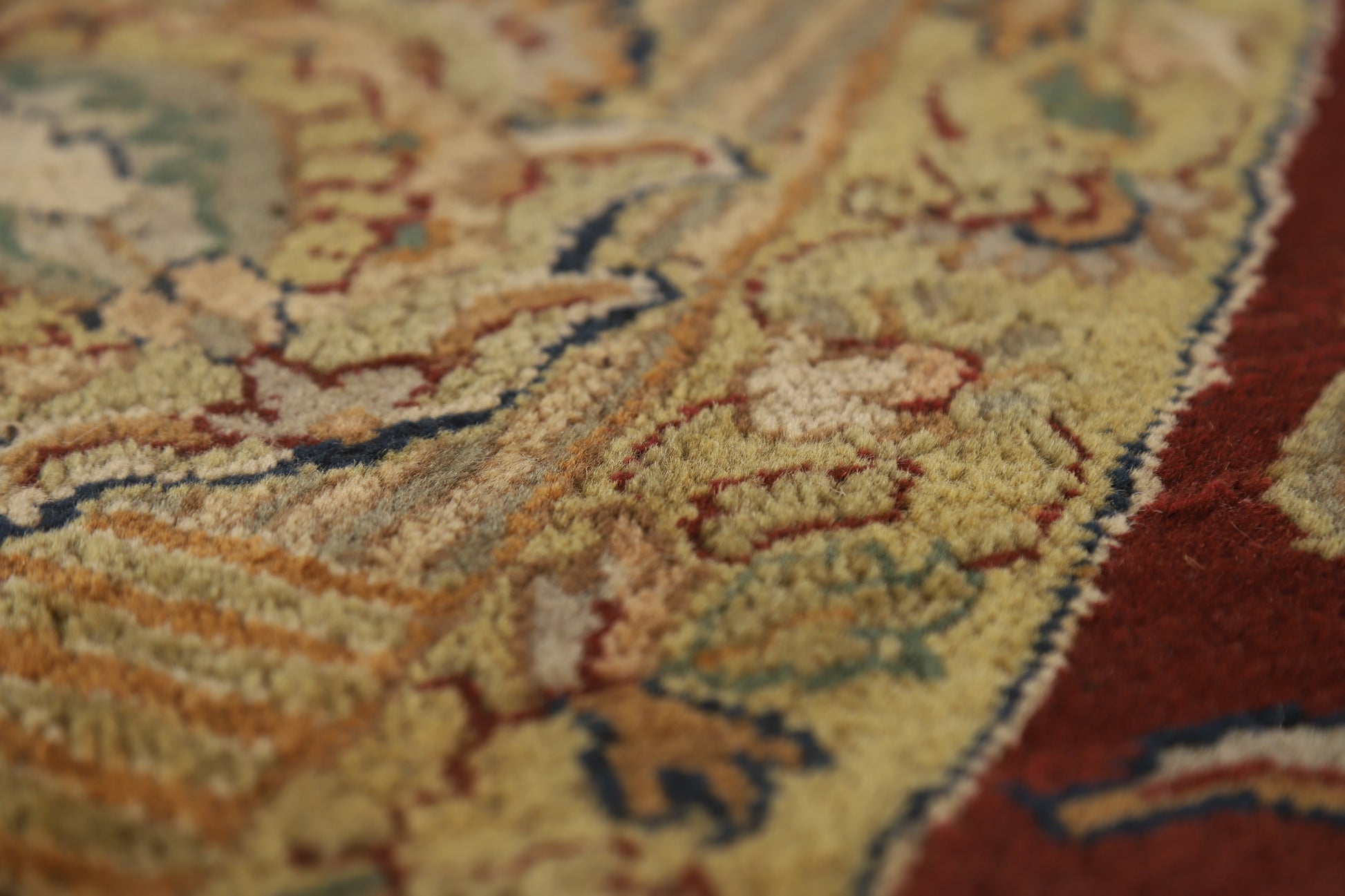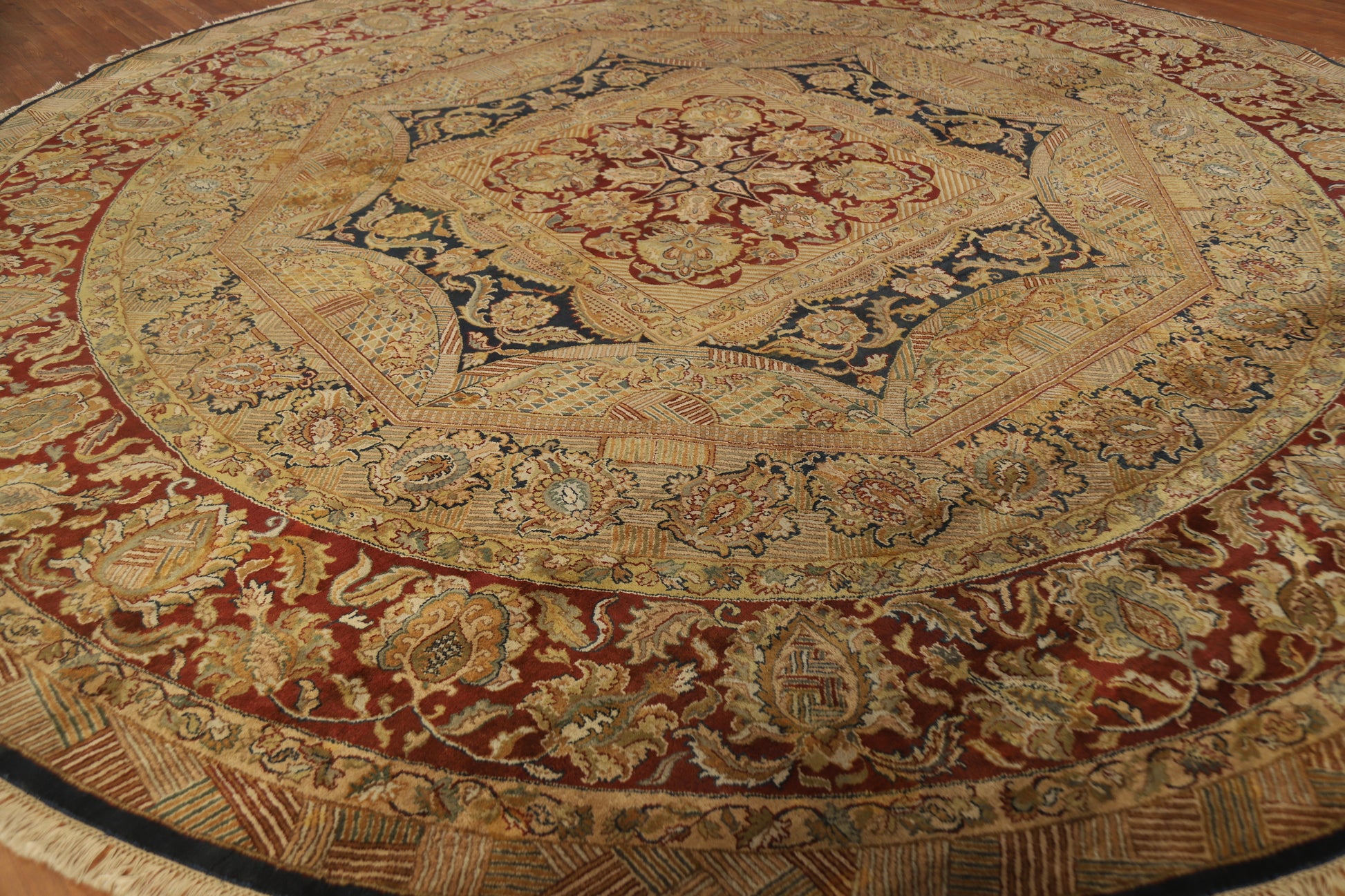 A Beautiful Genuine India Agra rug is Hand Knotted by skillful weavers in India with 100% Wool Material. This rug is in Very Good condition. dimensions are 13' 0'' X 12' 9'' in foot and 396 X 389 in centimeter. the primary color is Navy Blue & Blues.