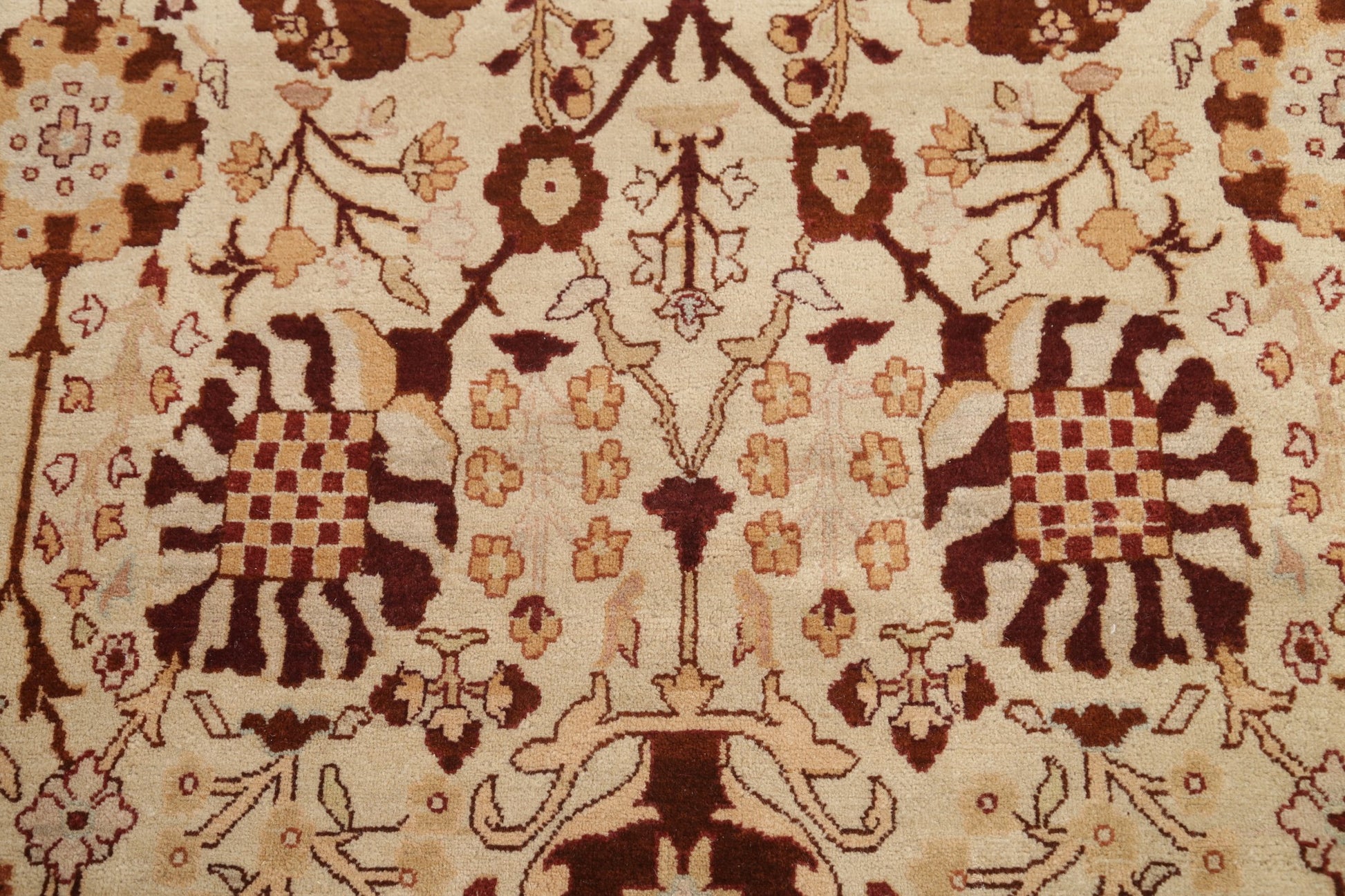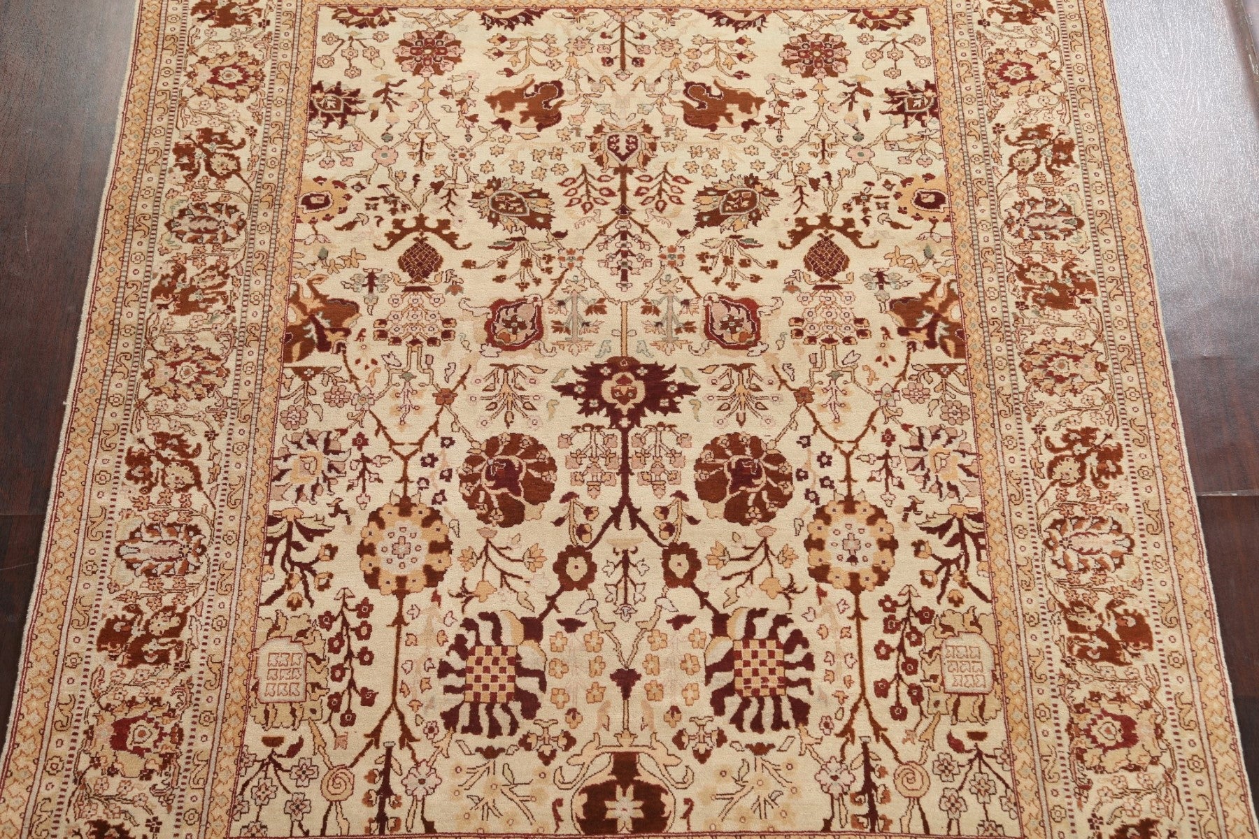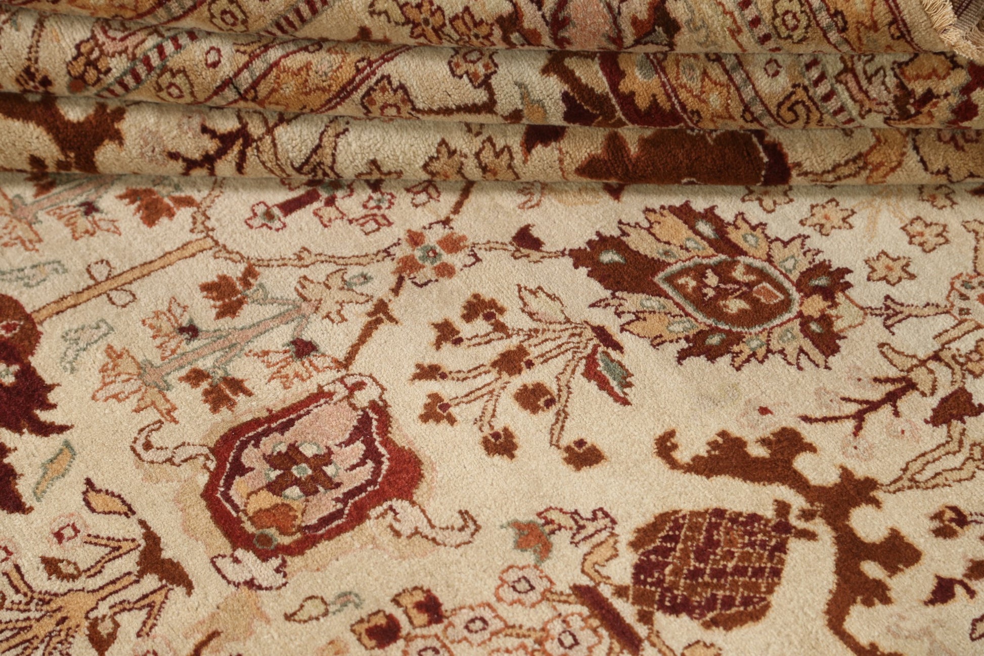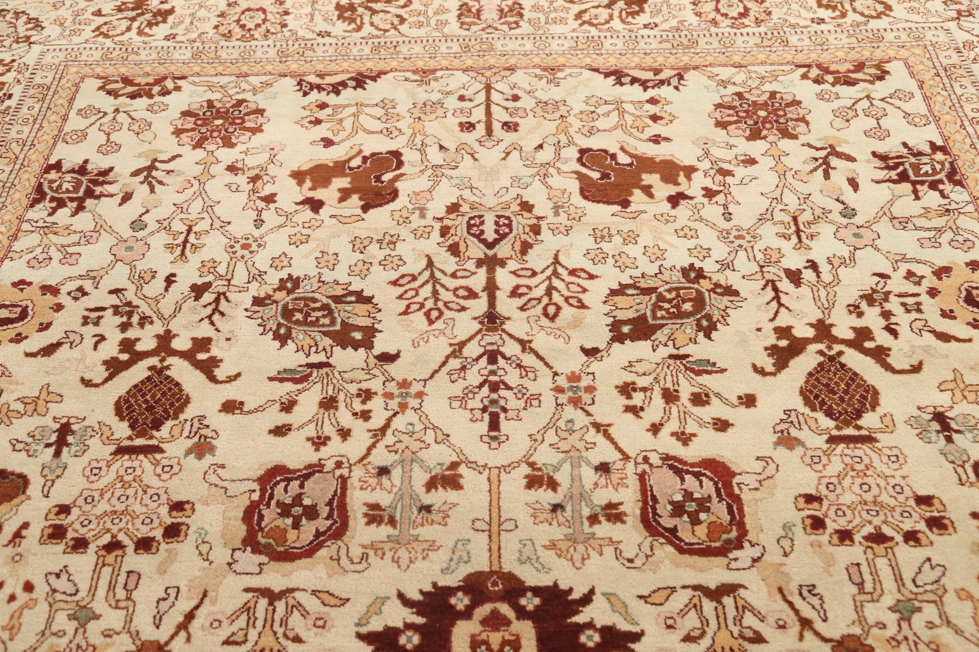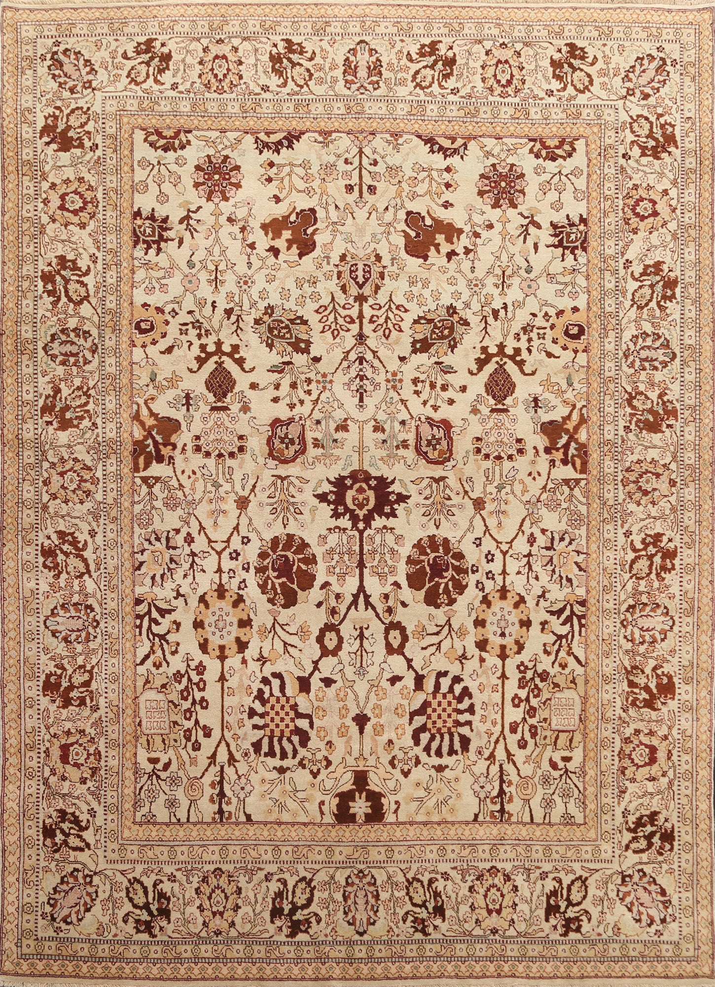 A Beautiful Genuine India Agra rug is Hand Knotted by skillful weavers in India with 100% Wool Material. This rug is in New, First Quality condition. dimensions are 10' 0'' X 8' 0'' in foot and 305 X 244 in centimeter. the primary color is Beige & Ivories.
