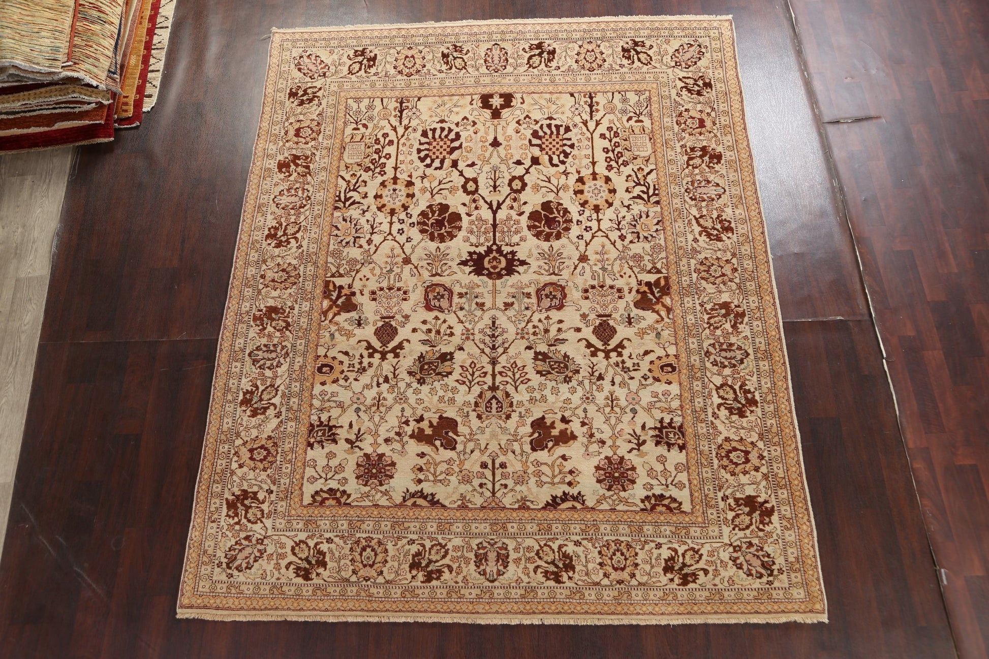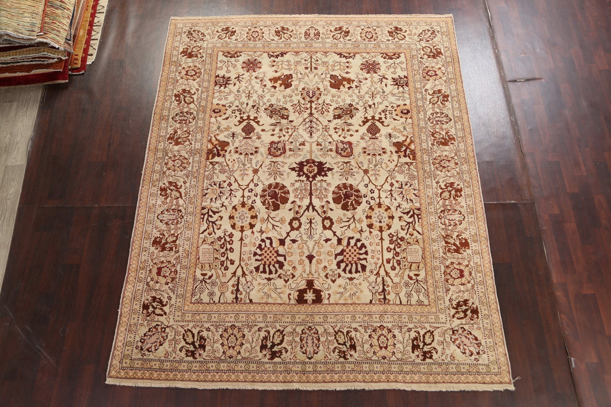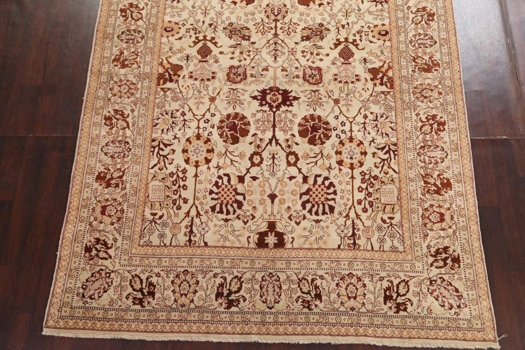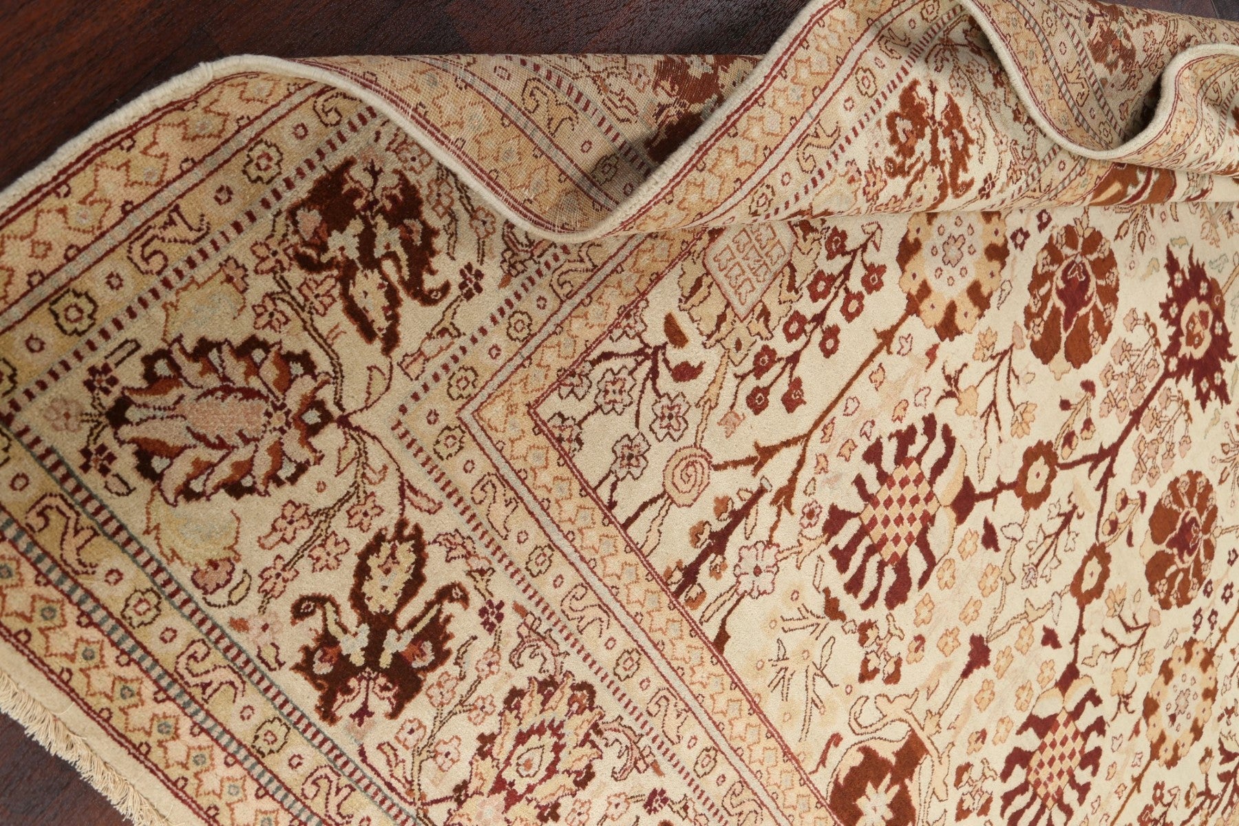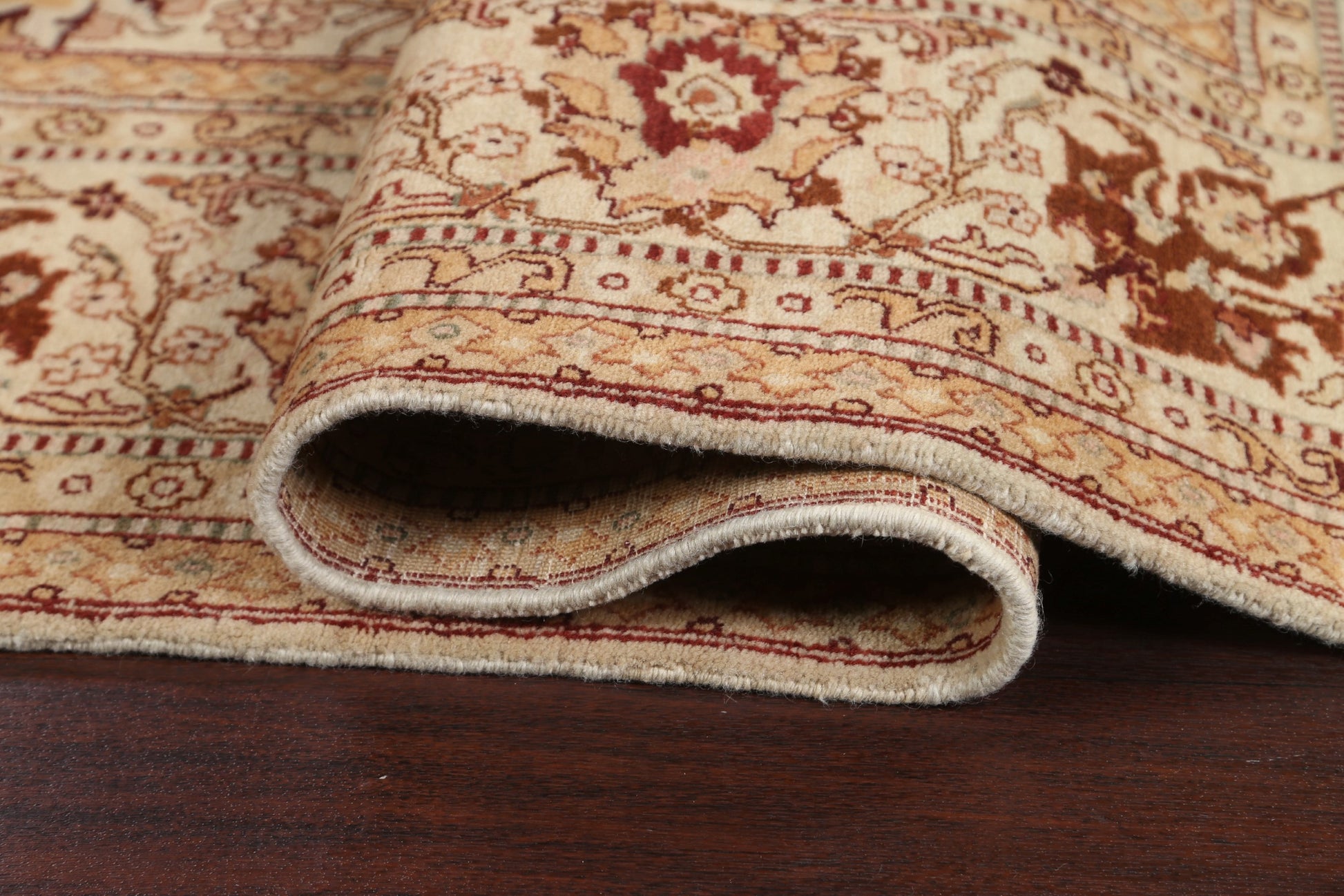 A Beautiful Genuine India Agra rug is Hand Knotted by skillful weavers in India with 100% Wool Material. This rug is in New, First Quality condition. dimensions are 10' 0'' X 8' 0'' in foot and 305 X 244 in centimeter. the primary color is Beige & Ivories.