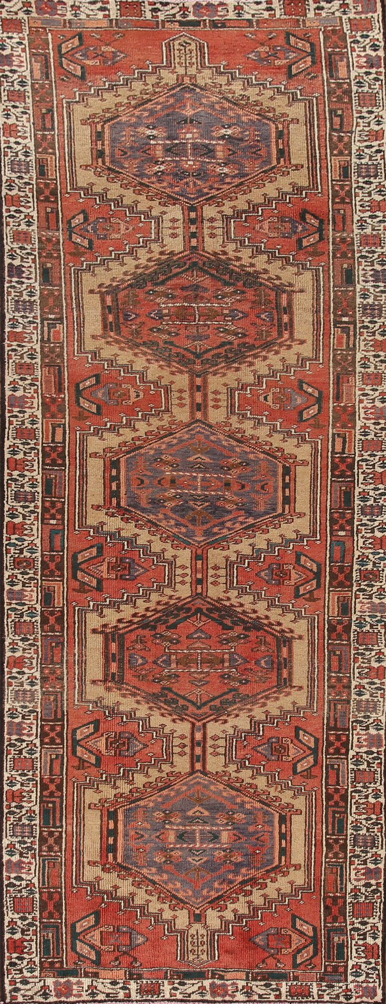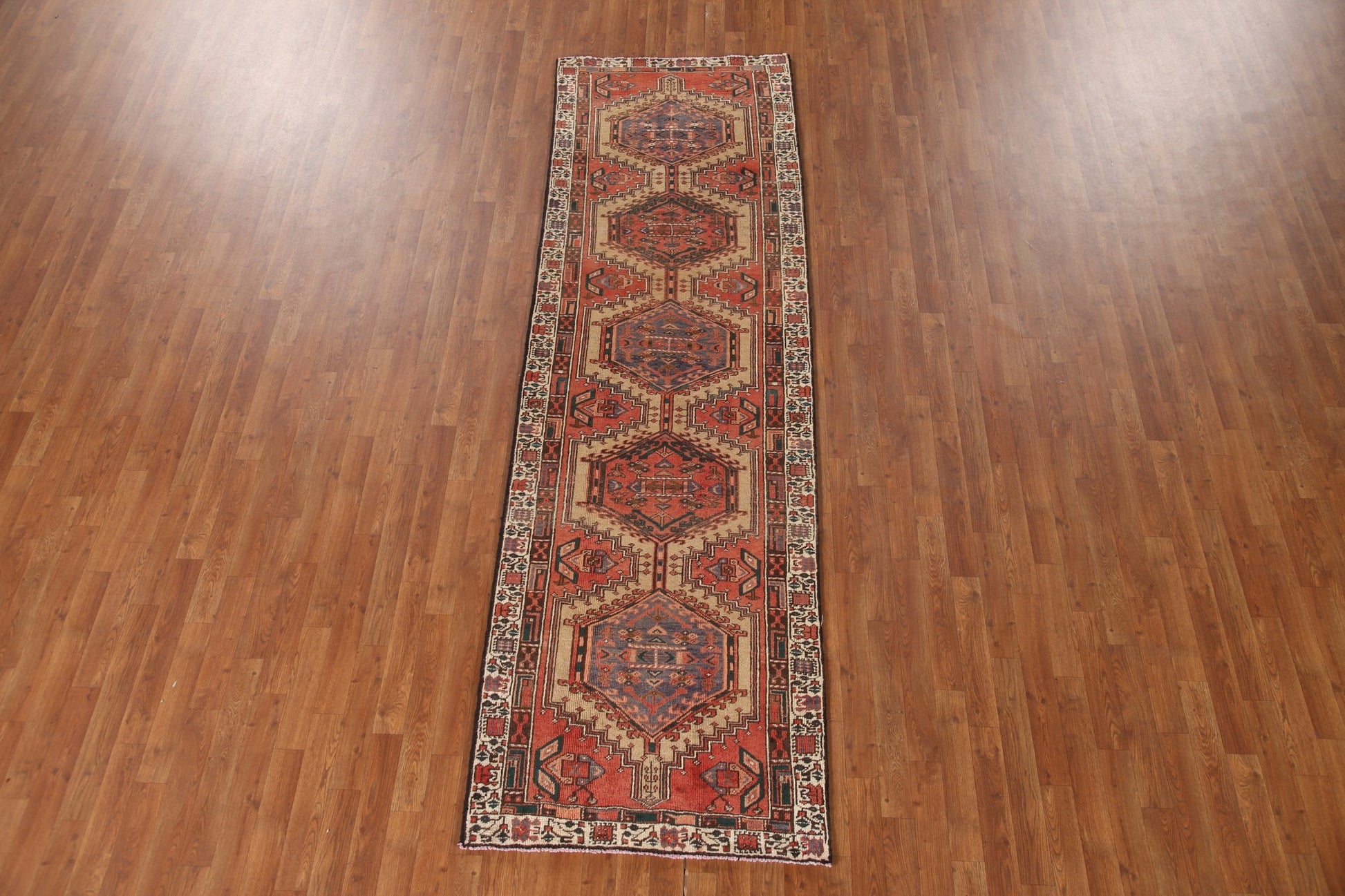 A Beautiful Genuine Persia ( Persia ) Ardebil rug is Hand Knotted by skillful weavers in Persia ( Persia ) with 100% Wool Material. This rug is in Very Good (Evenly Low Pile) condition. dimensions are 10' 3'' X 3' 2'' in foot and 312 X 97 in centimeter. the primary color is Oranges & Rust.
