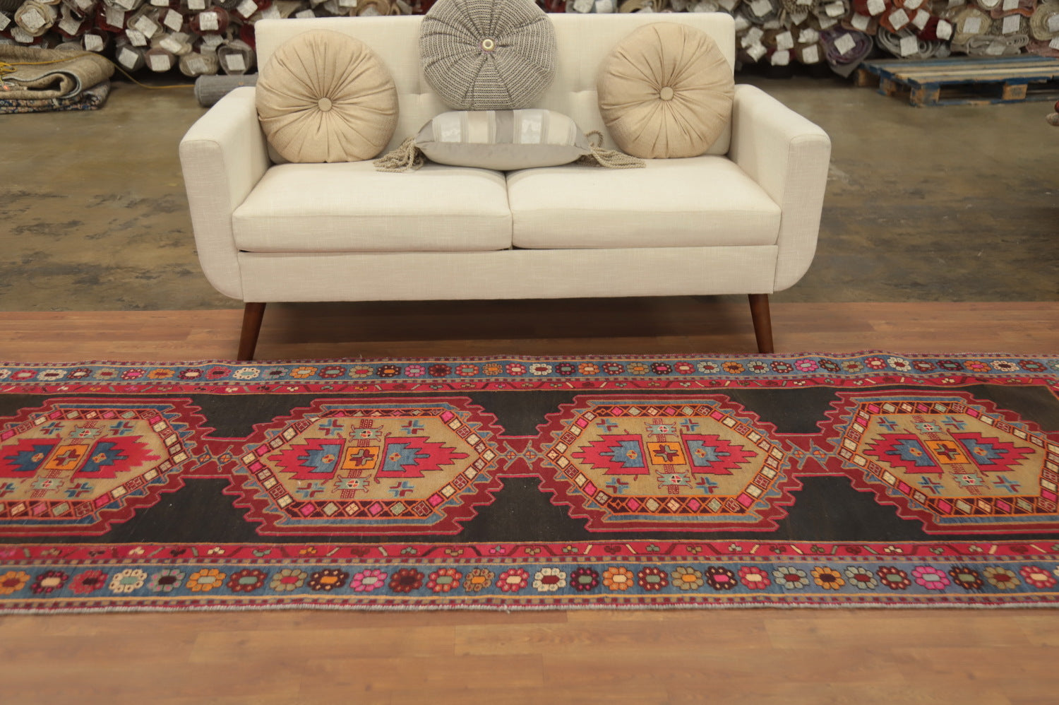 Handmade Wool Ardebil Persian Runner Rug 4x10